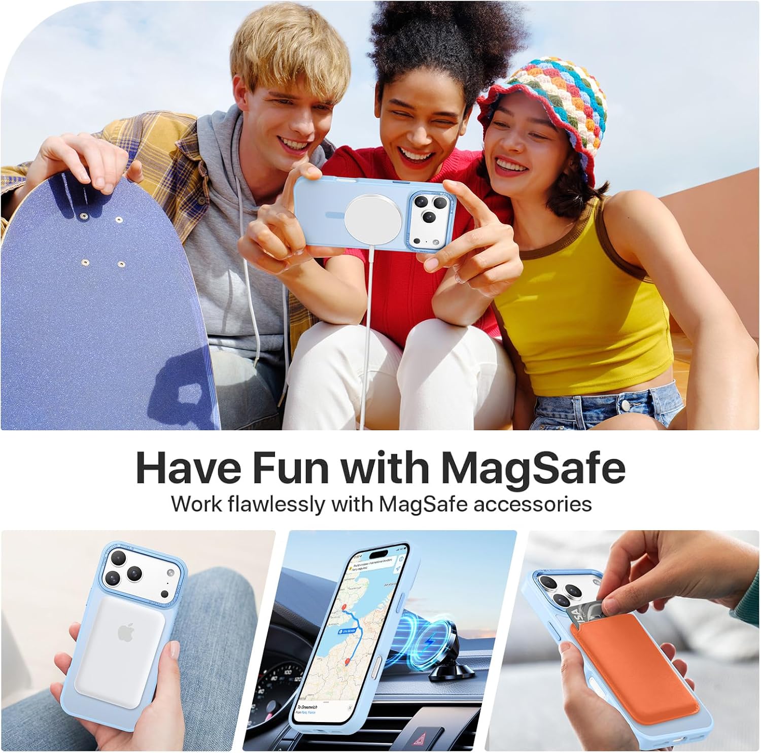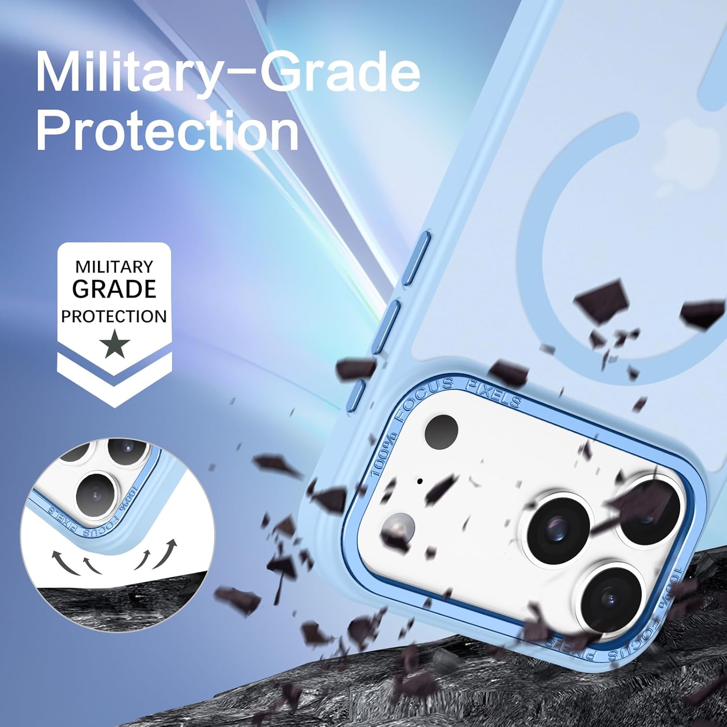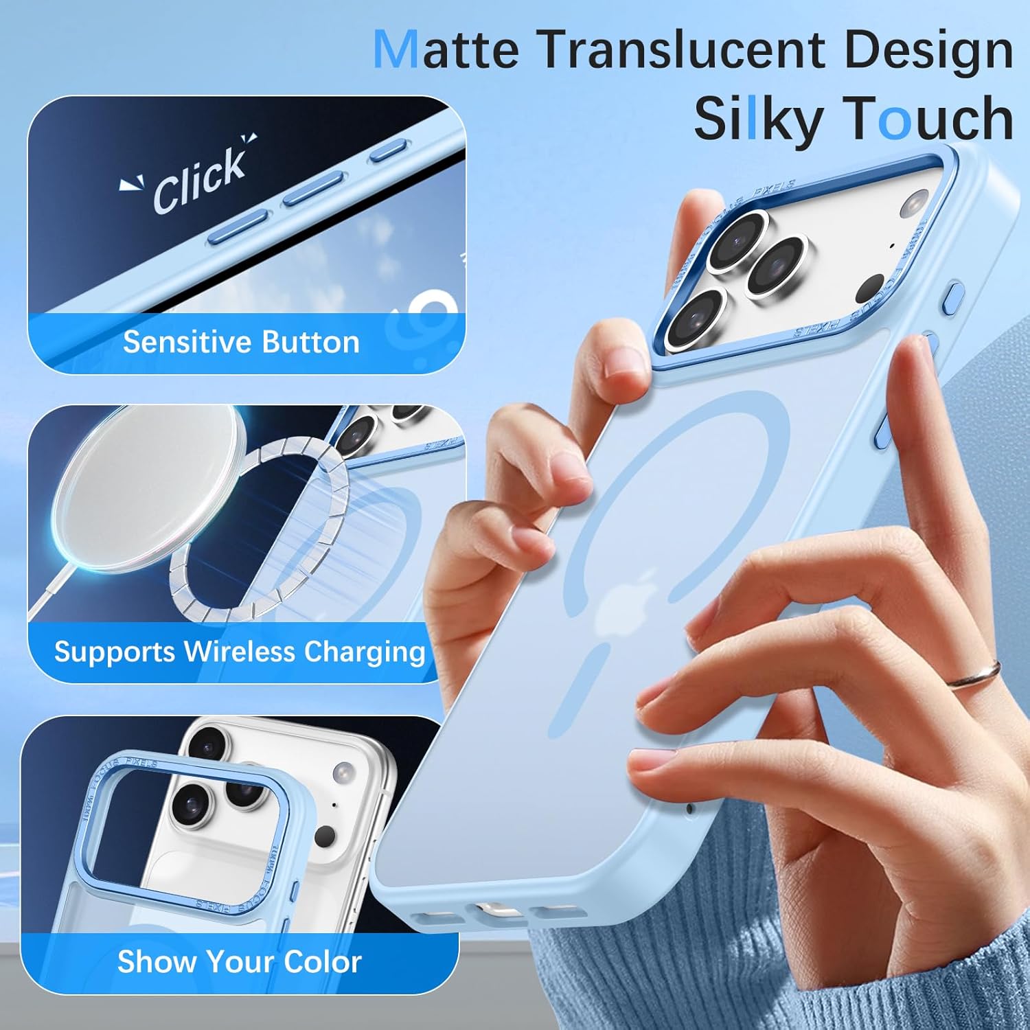 GaoBao калъф за iPhone 17 Pro Max, калъф за мобилен телефон iPhone 17 Pro Max [съвместим с MagSafe] полупрозрачен матов магнитен удароустойчив калъф против пръстови отпечатъци 6.9 инча, светло син