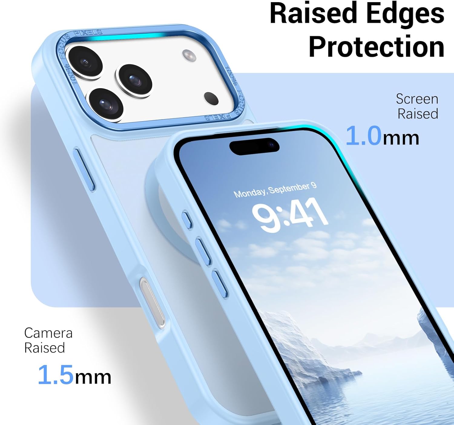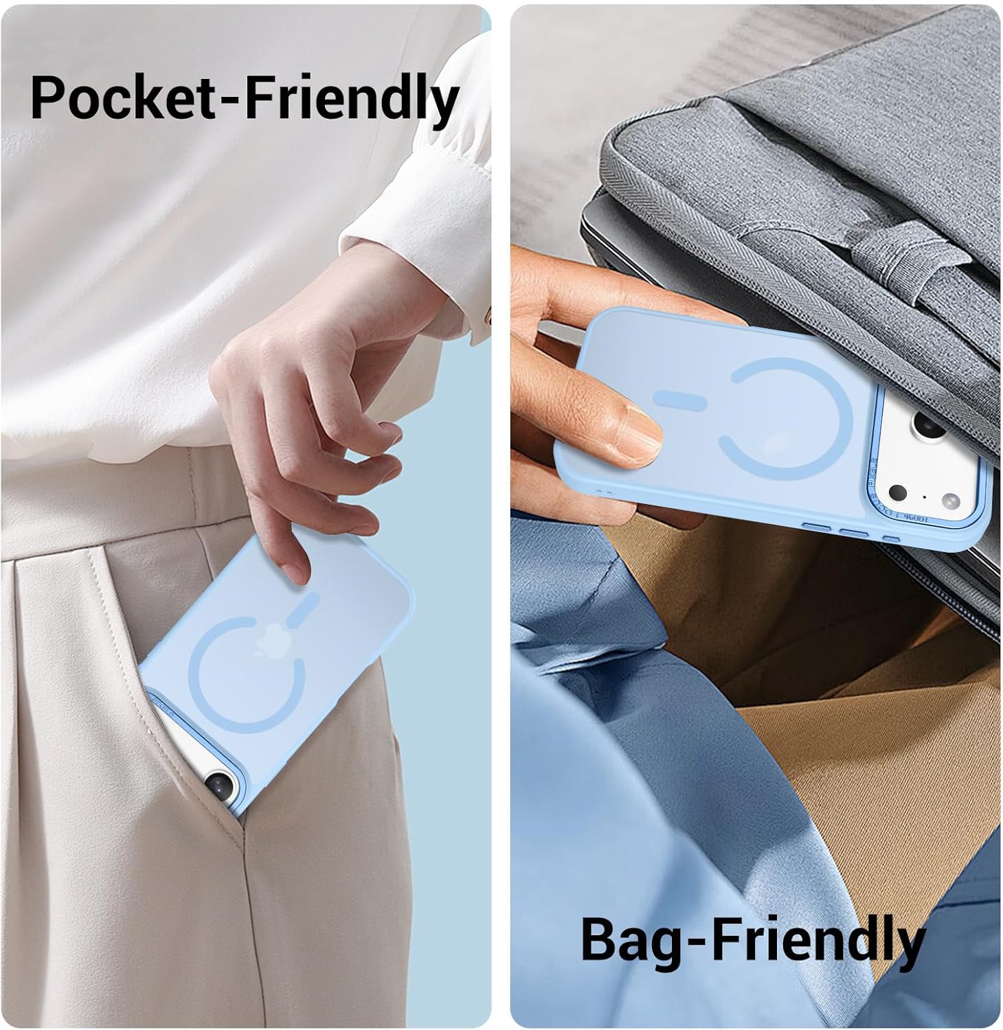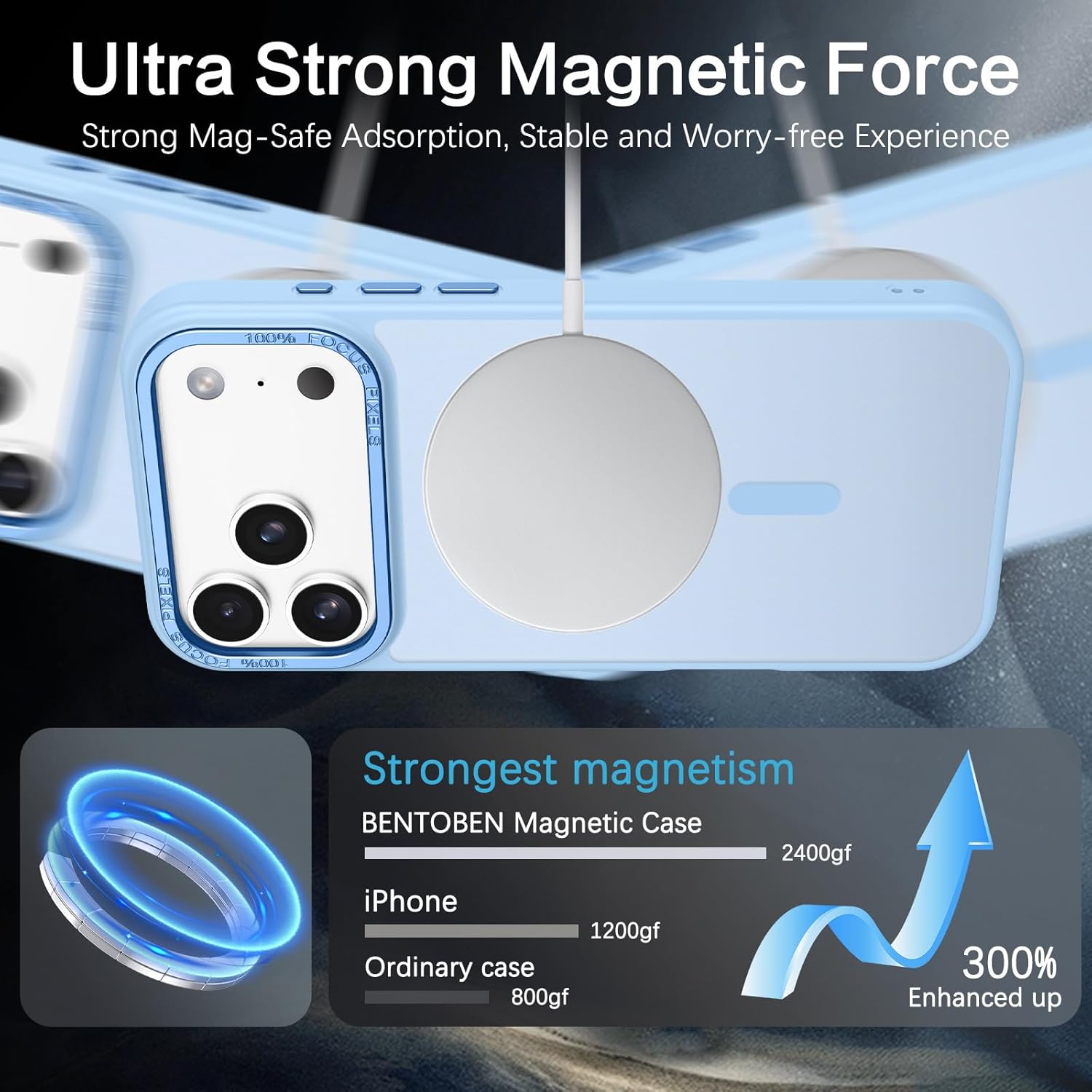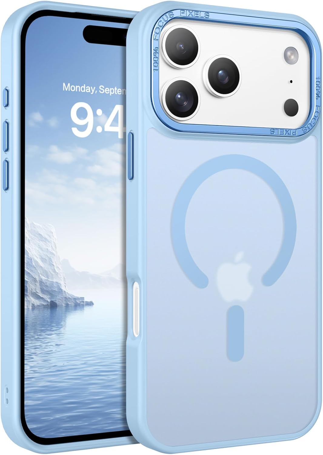 GaoBao калъф за iPhone 17 Pro Max, калъф за мобилен телефон iPhone 17 Pro Max [съвместим с MagSafe] полупрозрачен матов магнитен удароустойчив калъф против пръстови отпечатъци 6.9 инча, светло син