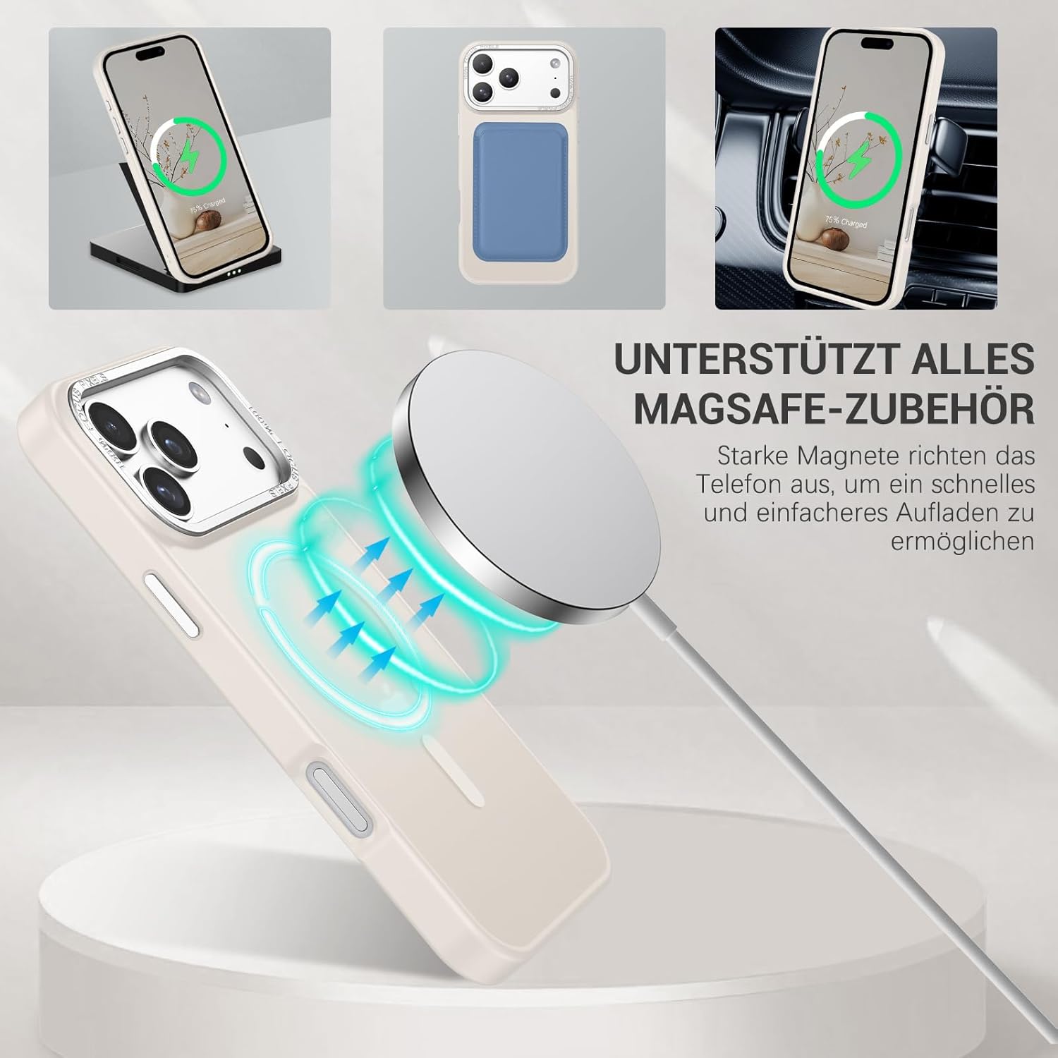 GaoBao калъф за iPhone 17 Pro Max, калъф за мобилен телефон iPhone 17 Pro Max [съвместим с MagSafe] полупрозрачен матов магнитен удароустойчив калъф против пръстови отпечатъци 6.9 инча, светло сив