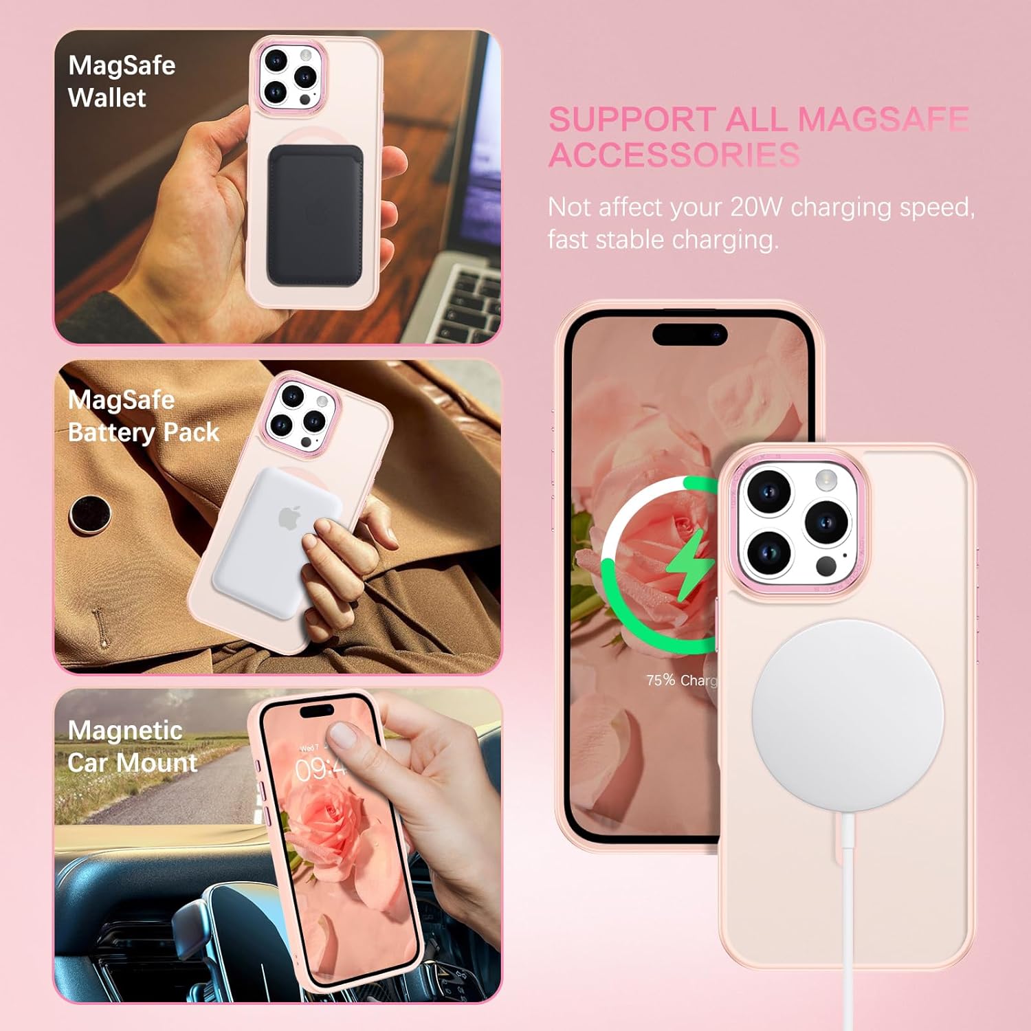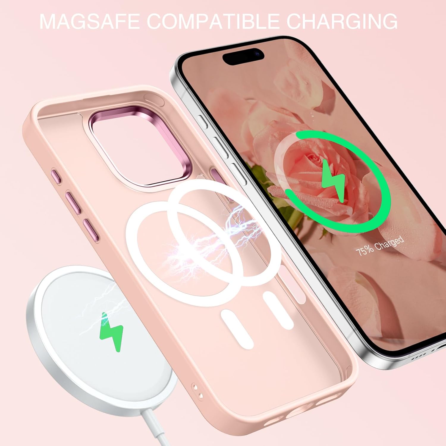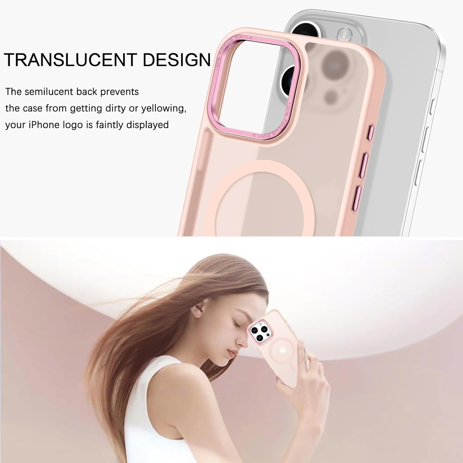 GaoBao Кейс за iPhone 16 Pro, Калъф за мобилен телефон iPhone 16 Pro [Съвместим с Magsafe] Прозрачен матов магнитен удароустойчив защитен калъф против пръстови отпечатъци 6.3 инча, розов