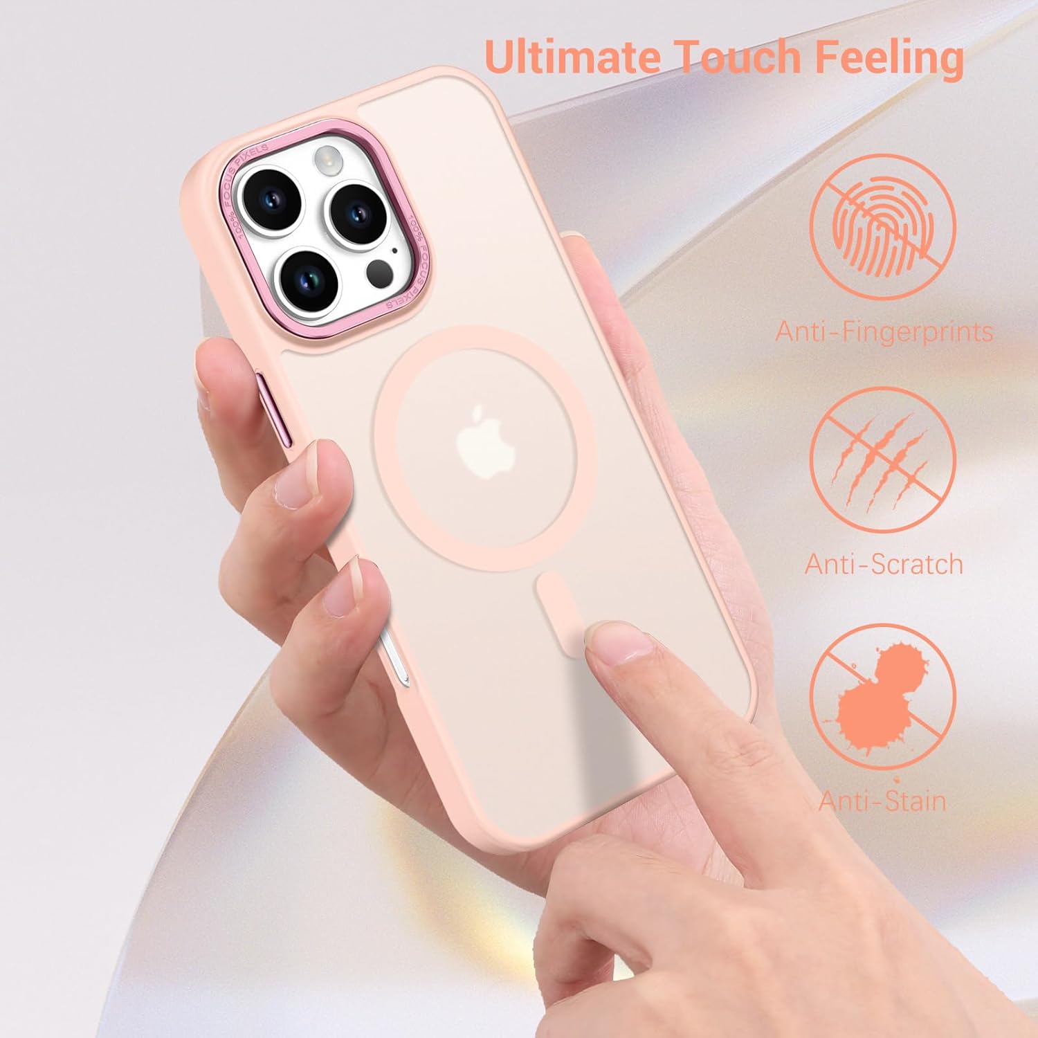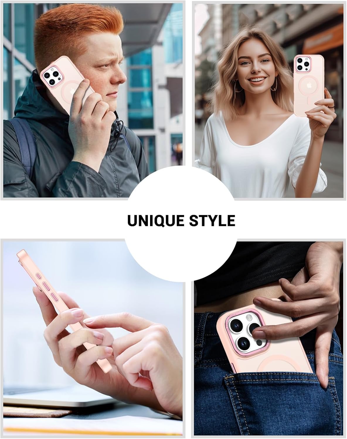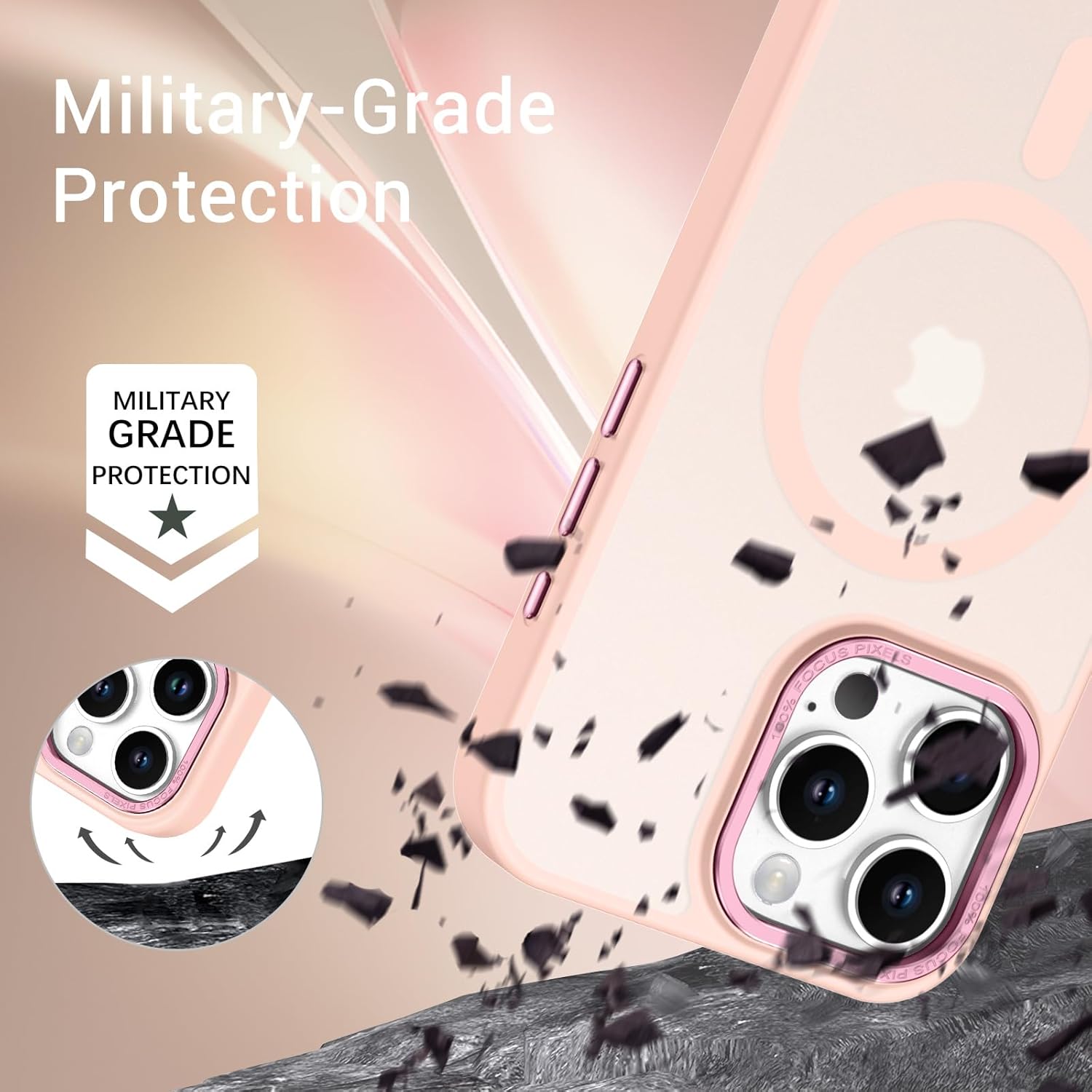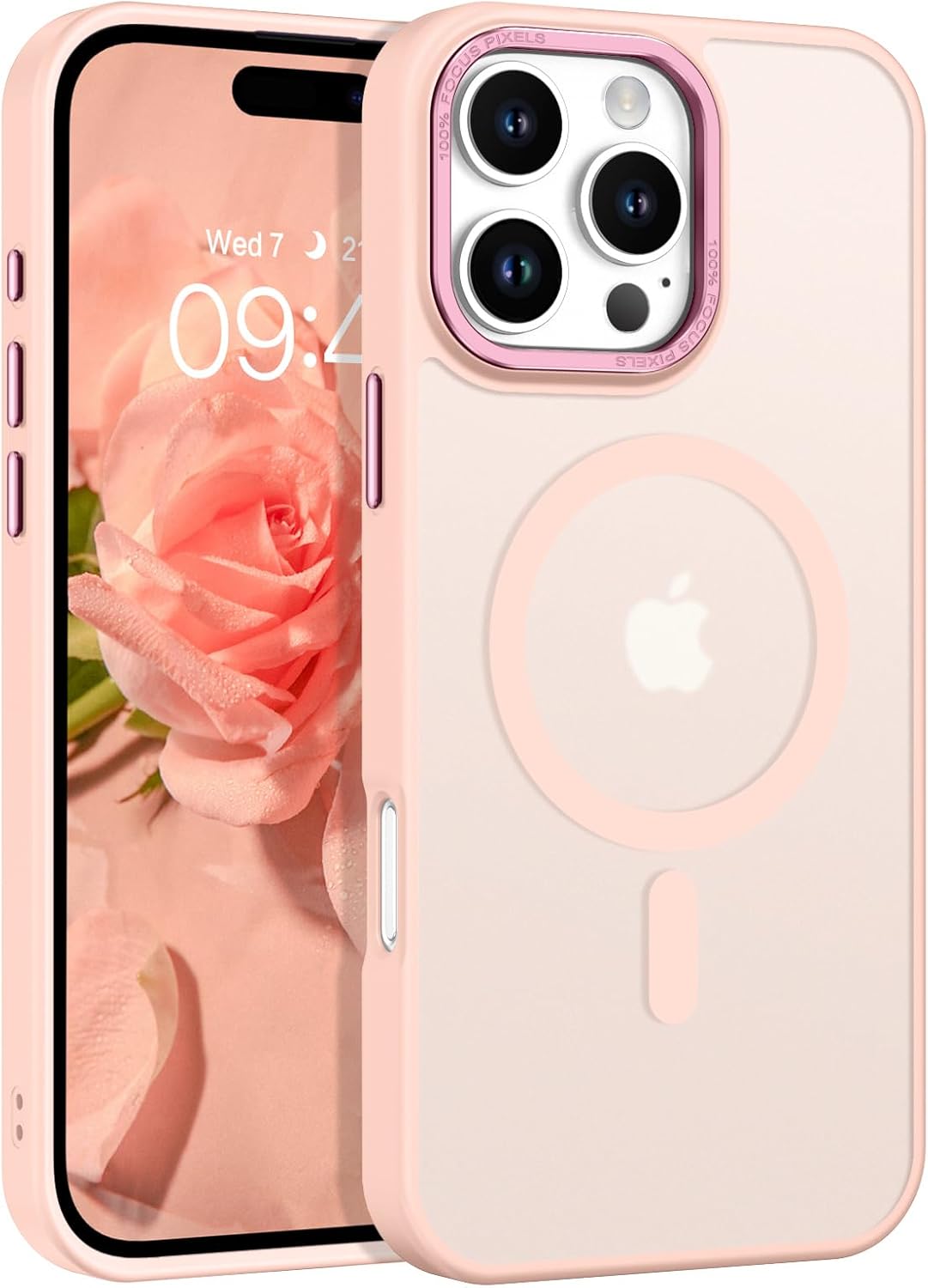 GaoBao Кейс за iPhone 16 Pro, Калъф за мобилен телефон iPhone 16 Pro [Съвместим с Magsafe] Прозрачен матов магнитен удароустойчив защитен калъф против пръстови отпечатъци 6.3 инча, розов