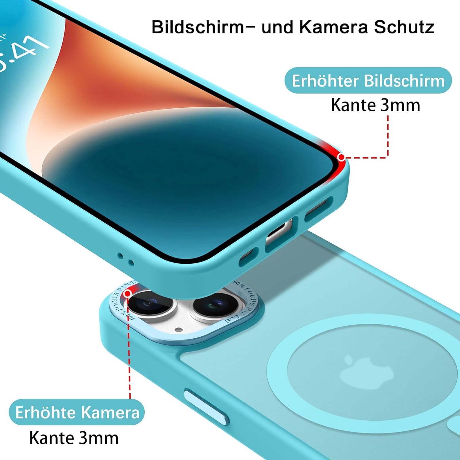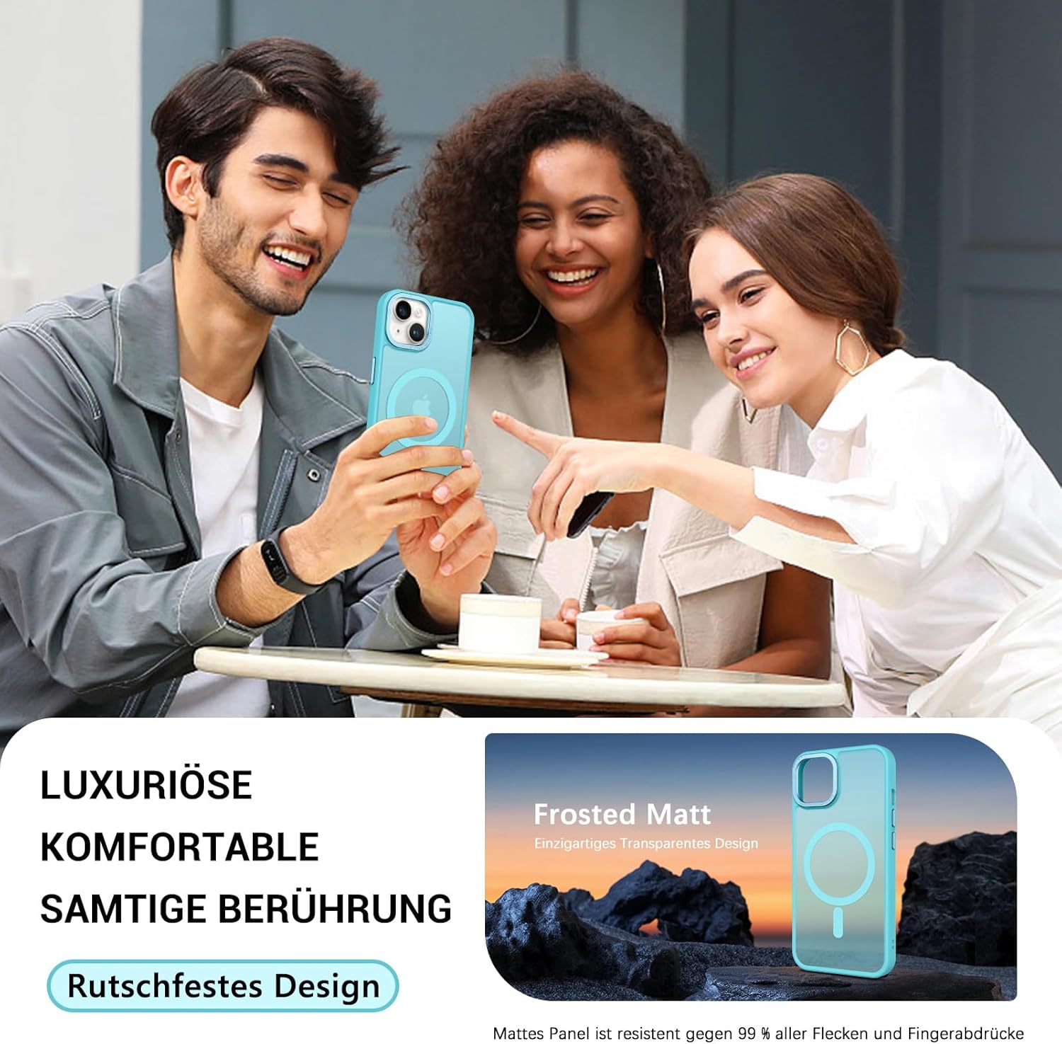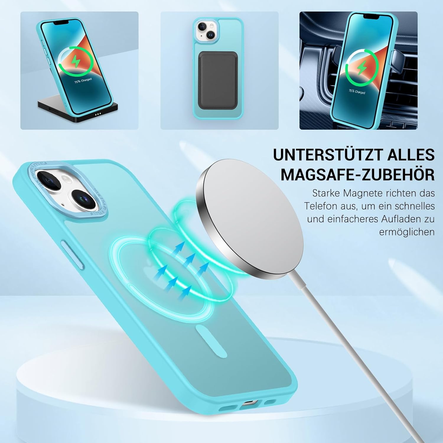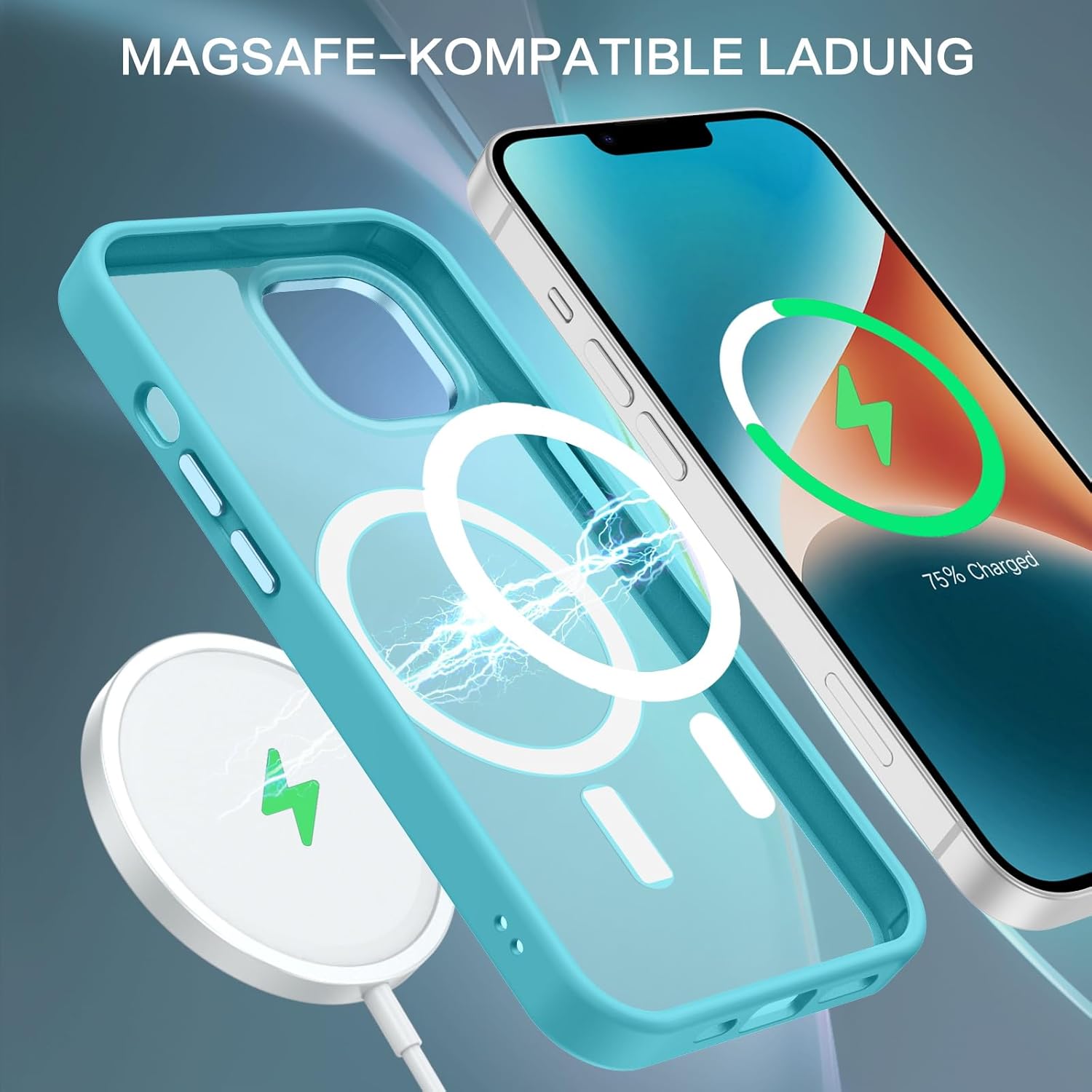 GaoBao Магнитен Калъф за iPhone 14 Plus, Калъф за мобилен телефон iPhone 14 Plus за Magsafe Прозрачен Матов Магнитен Удароустойчив Калъф против Пръстови Отпечатъци за iPhone 14 Plus 6.7 инча, Синьо-зелен