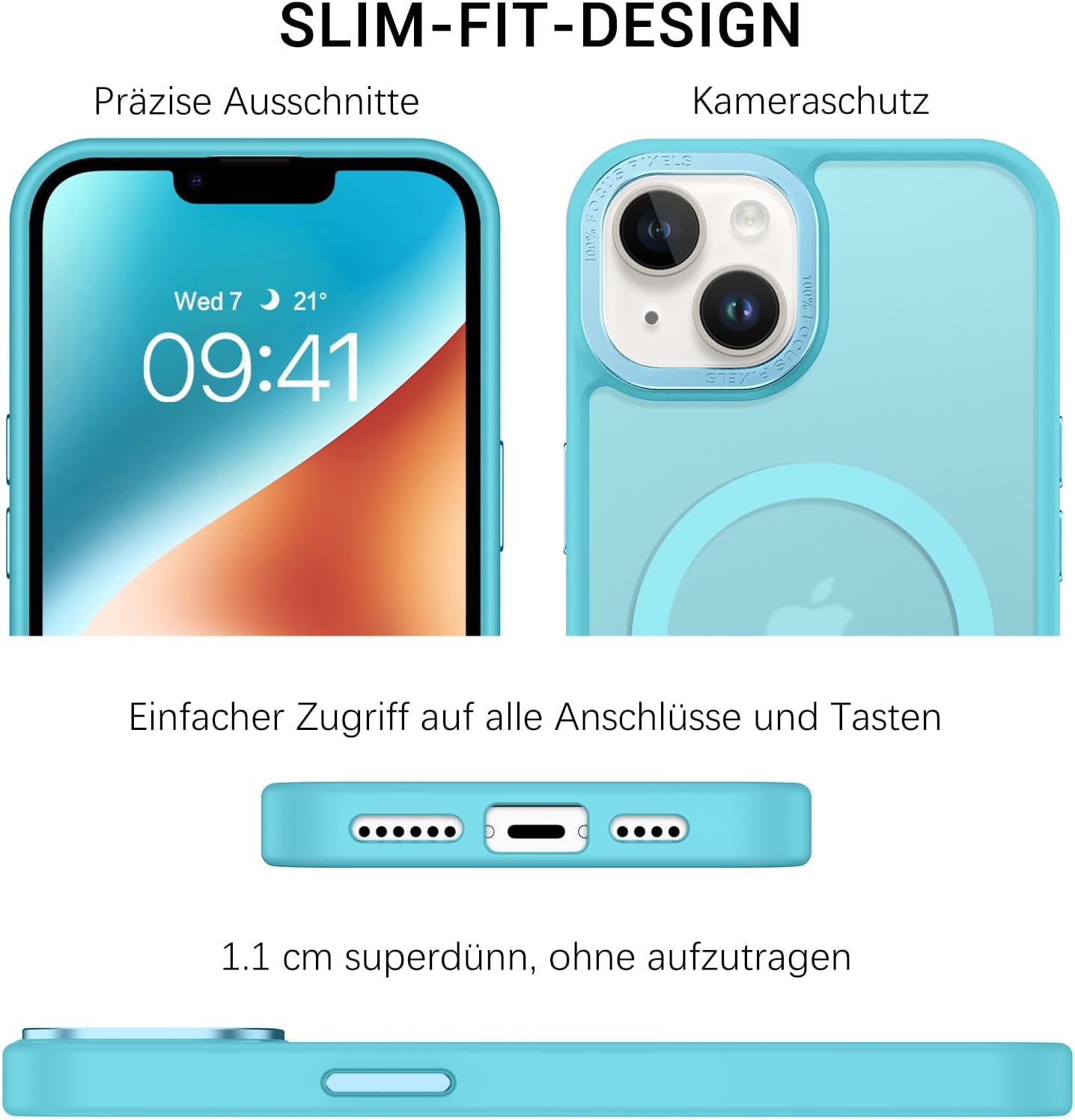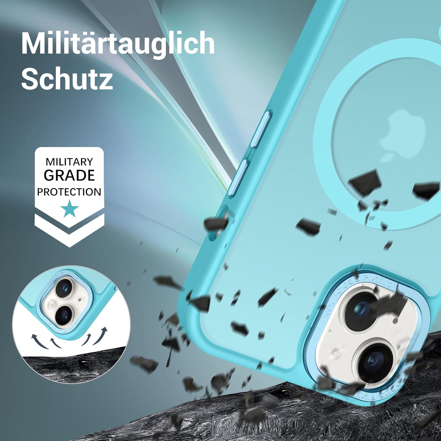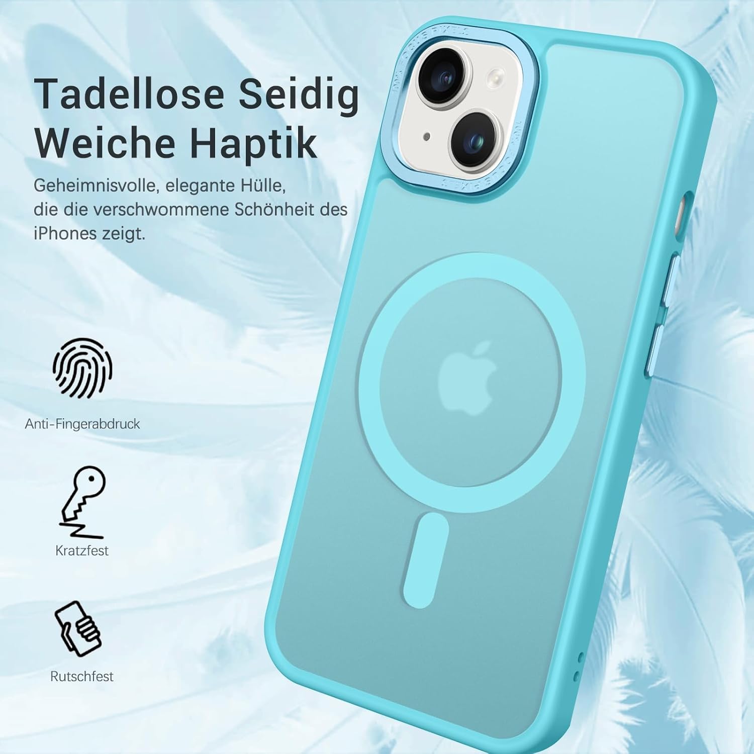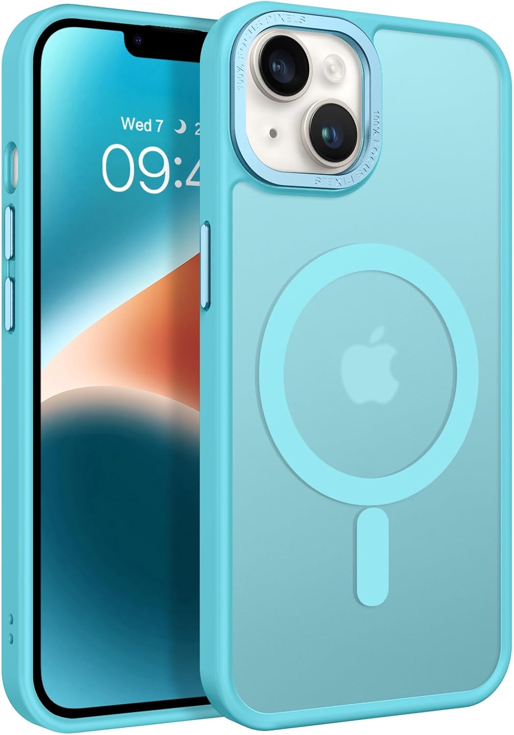 GaoBao Магнитен Калъф за iPhone 14 Plus, Калъф за мобилен телефон iPhone 14 Plus за Magsafe Прозрачен Матов Магнитен Удароустойчив Калъф против Пръстови Отпечатъци за iPhone 14 Plus 6.7 инча, Синьо-зелен