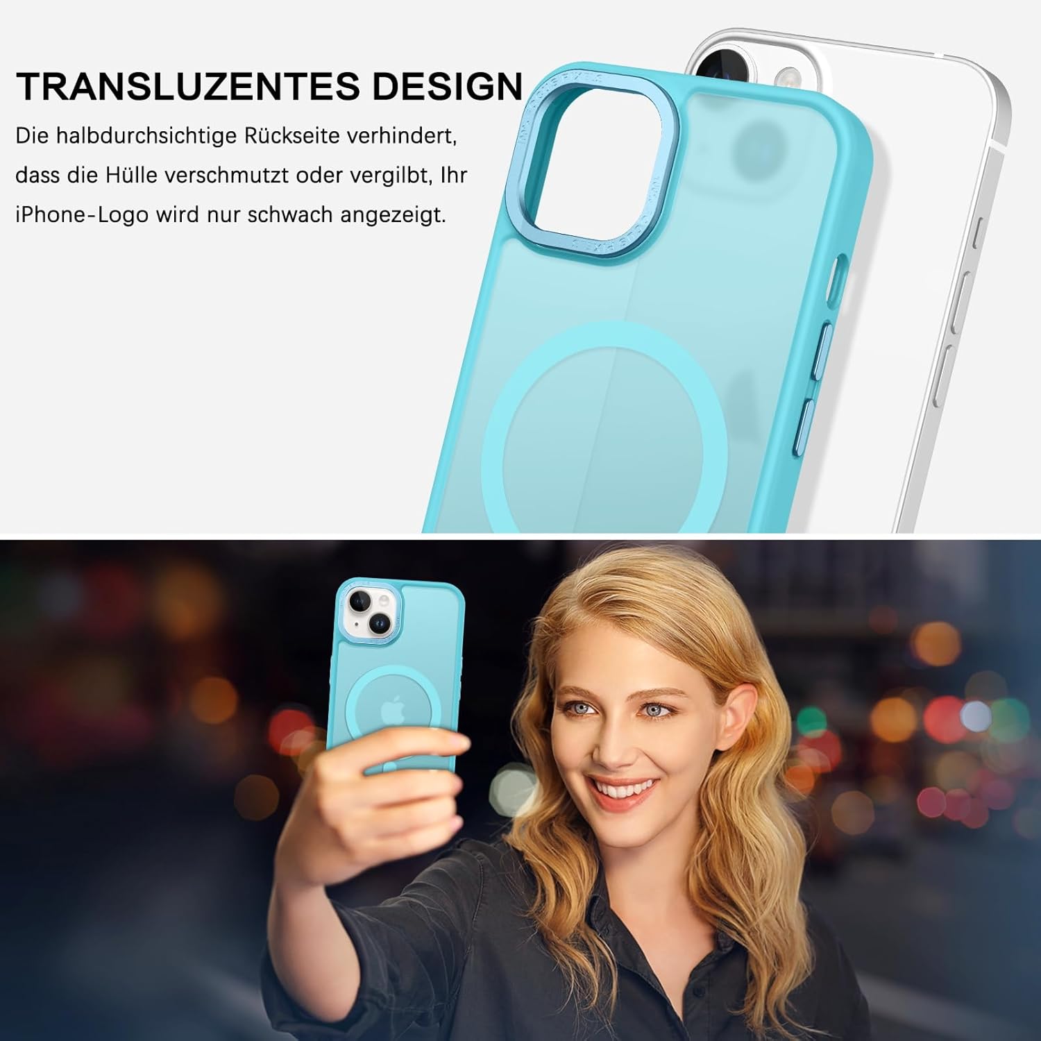 • Прозрачен, матов дизайн: Полупрозрачният гръб предотвратява замърсяването или пожълтяването на калъфа, а логото на вашия iPhone е лесно видимо. Матовата текстура осигурява по-добро сцепление и прави телефона да изглежда по-модерн.