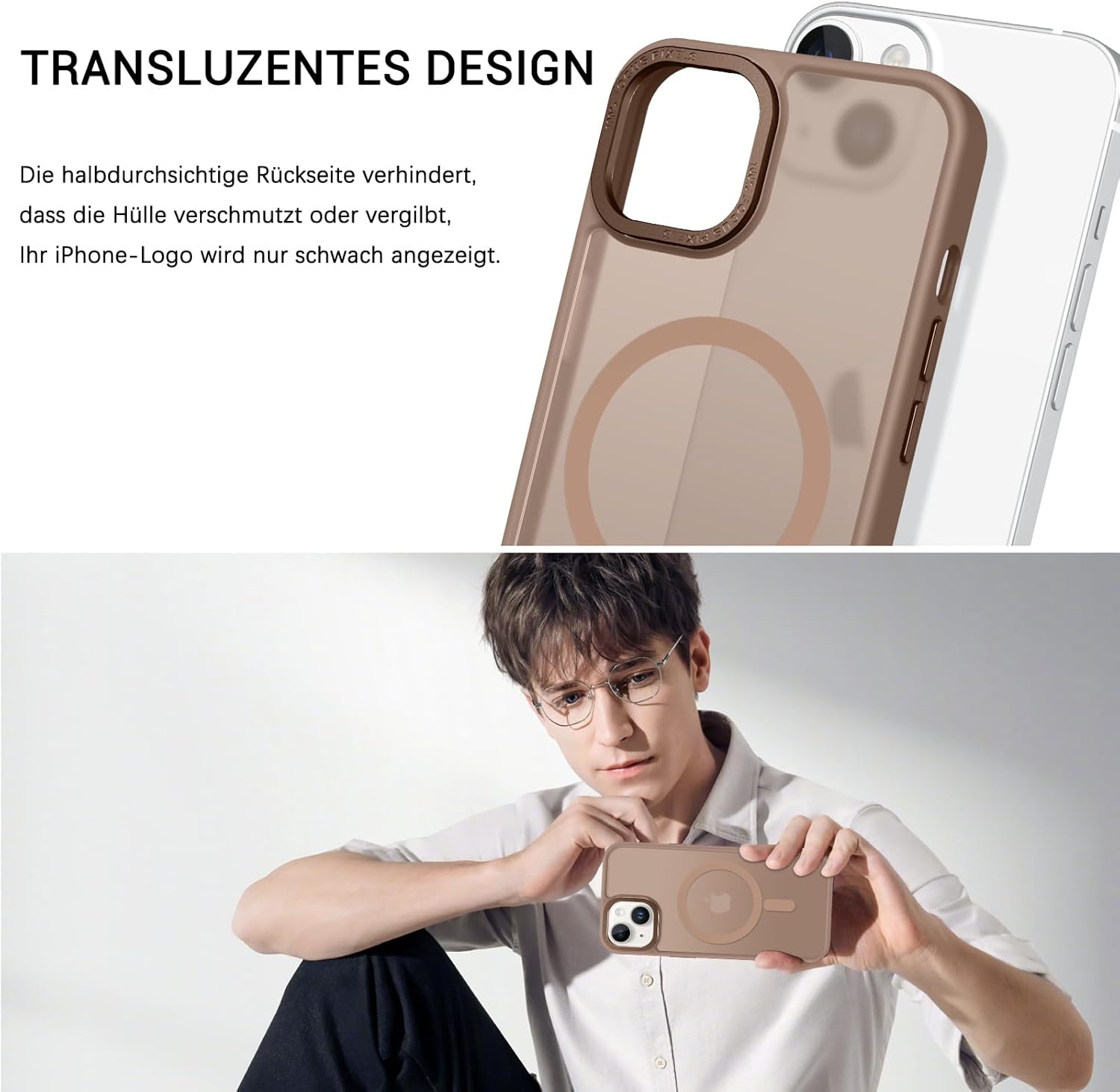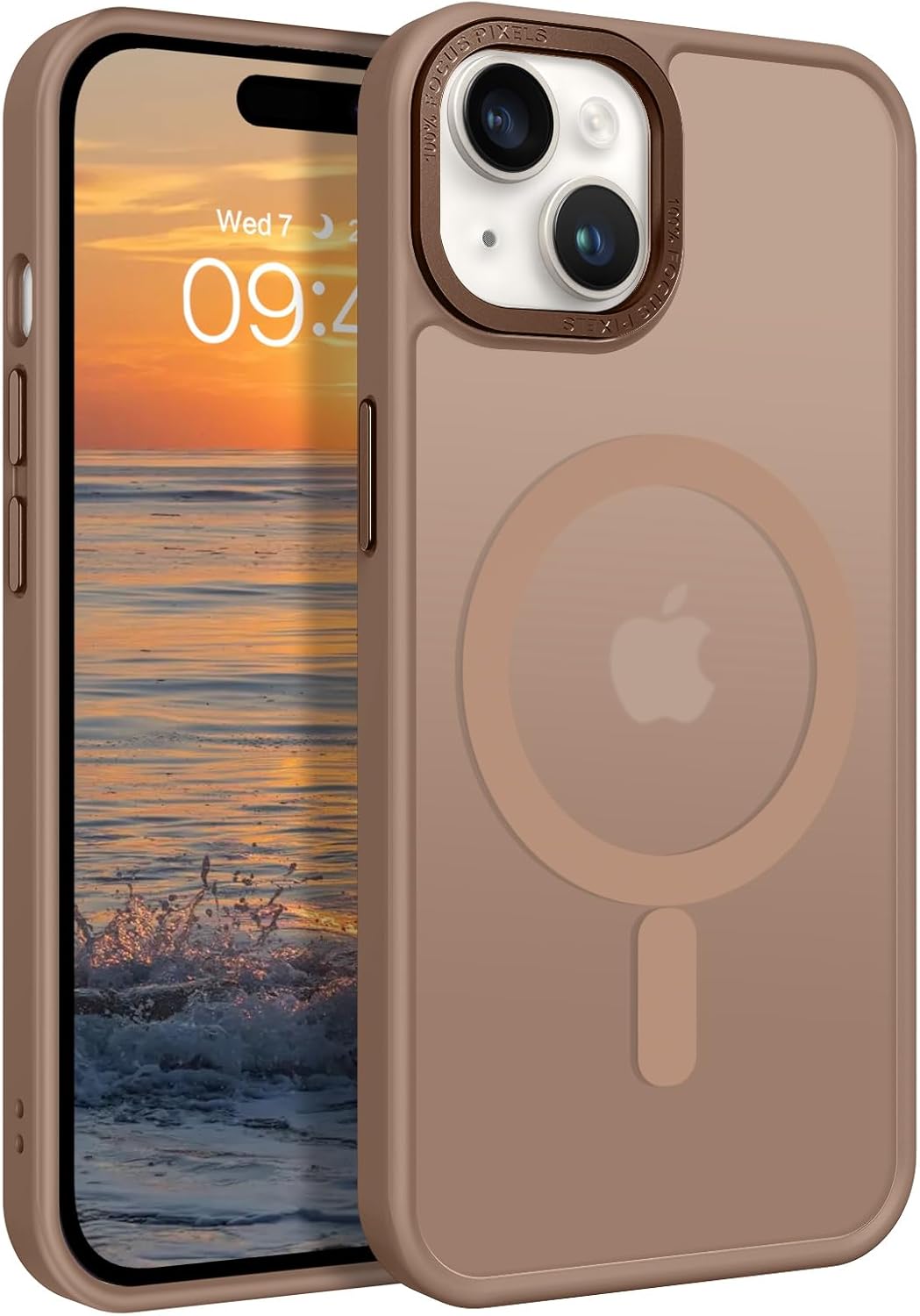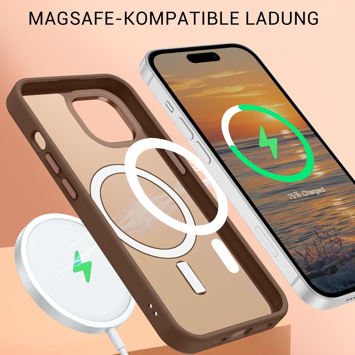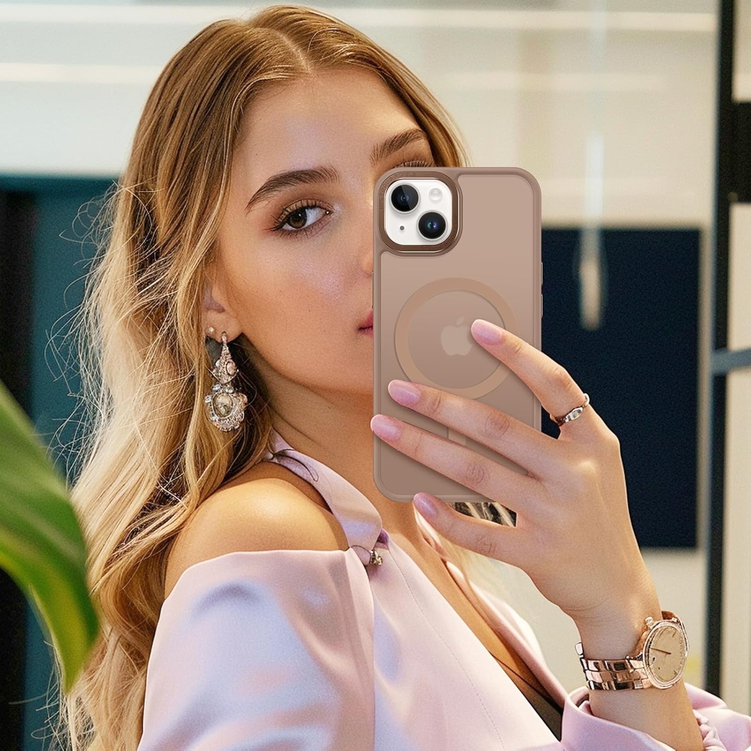 GaoBao Магнитен Калъф за iPhone 15 Plus, Калъф за мобилен телефон iPhone 15 Plus за Magsafe Прозрачен Матов Магнитен Удароустойчив Калъф против Пръстови Отпечатъци за iPhone 15 Plus 6.7 инча, Кафяв