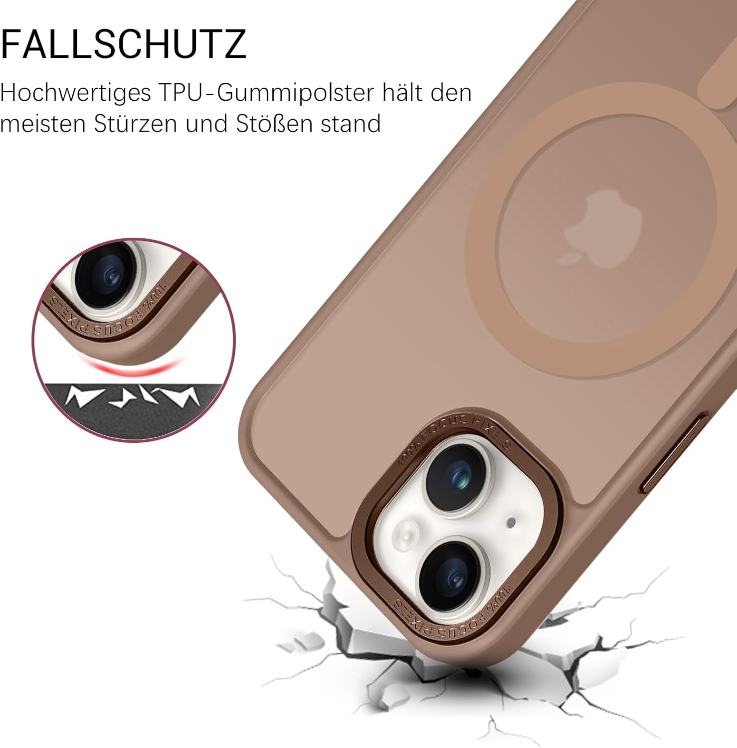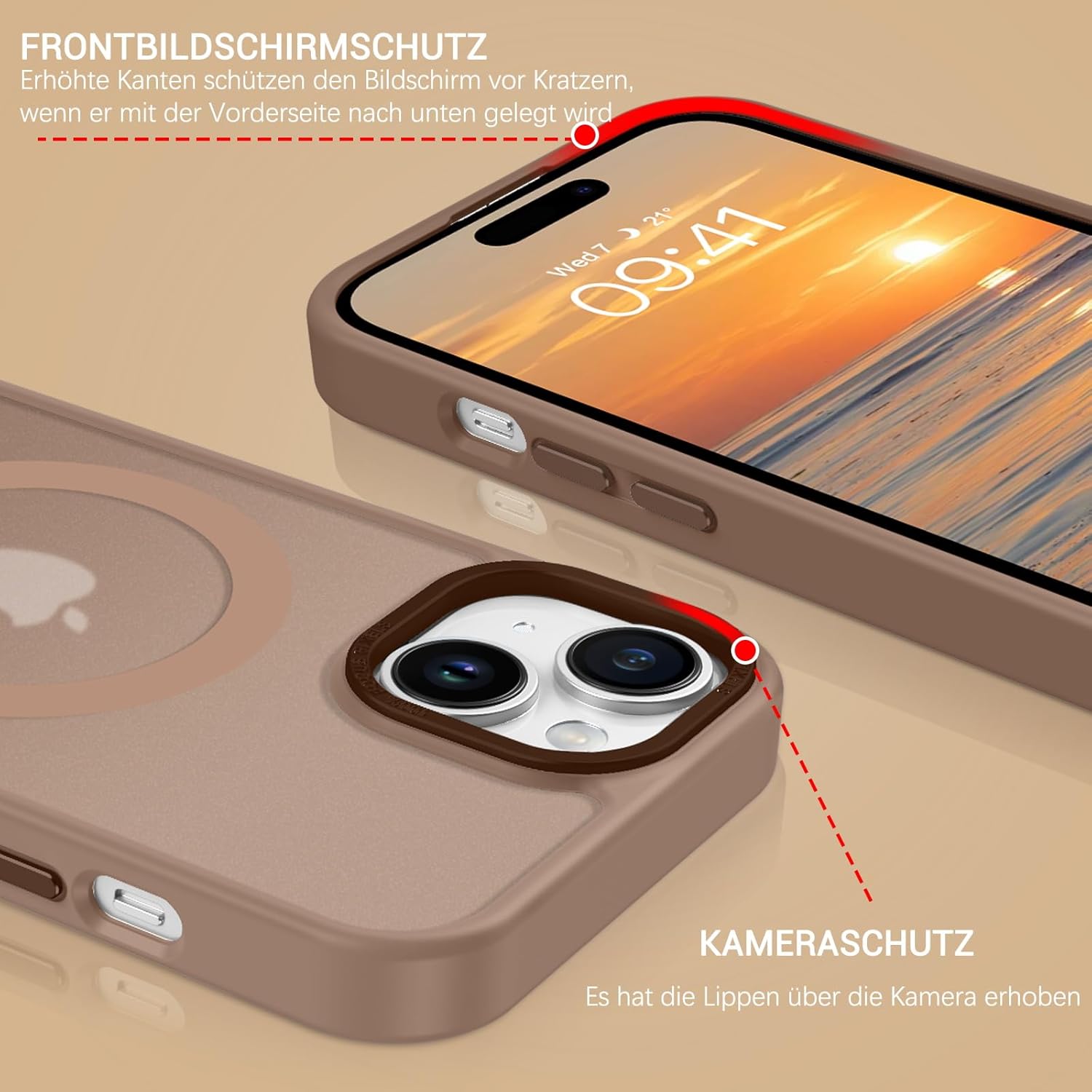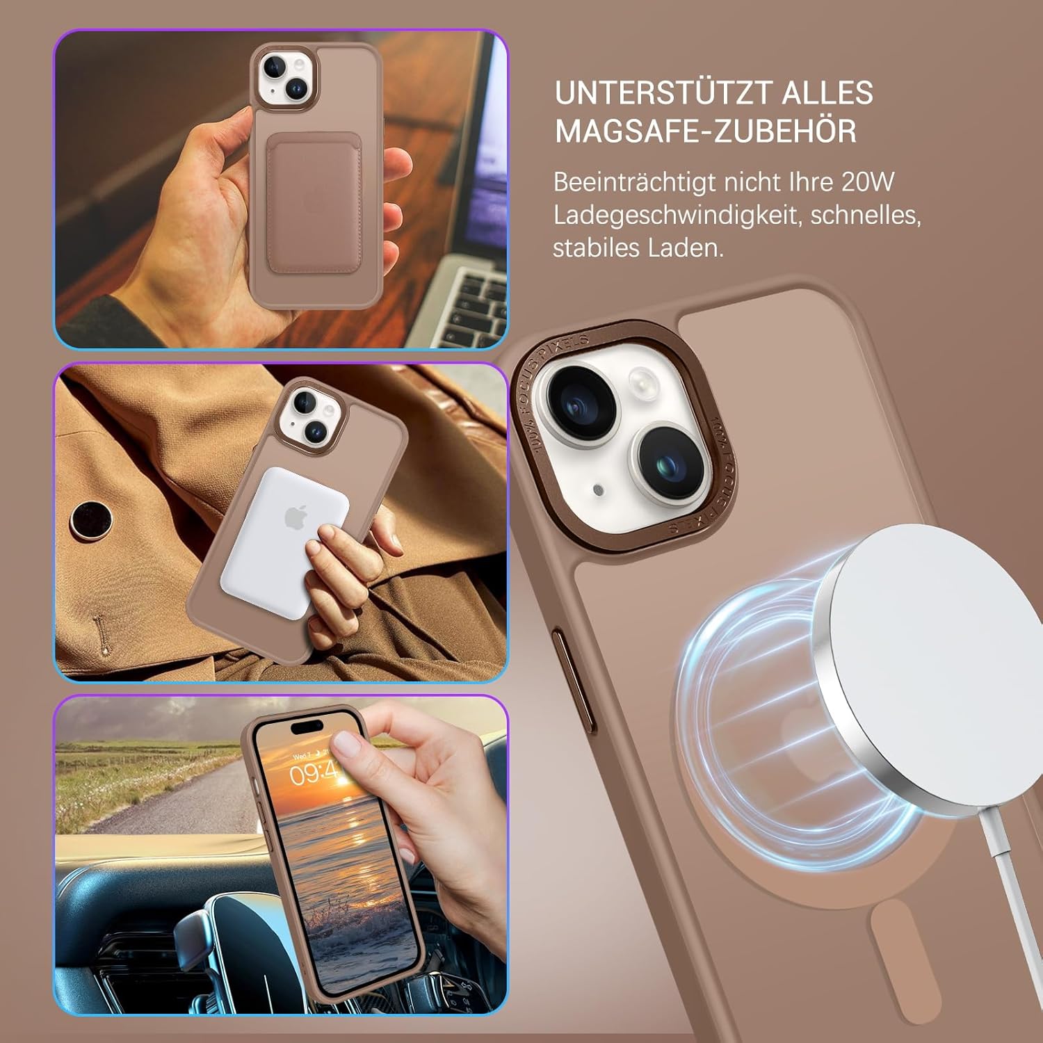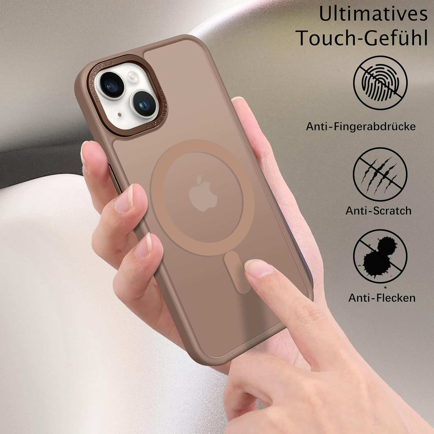 GaoBao Магнитен Калъф за iPhone 15 Plus, Калъф за мобилен телефон iPhone 15 Plus за Magsafe Прозрачен Матов Магнитен Удароустойчив Калъф против Пръстови Отпечатъци за iPhone 15 Plus 6.7 инча, Кафяв