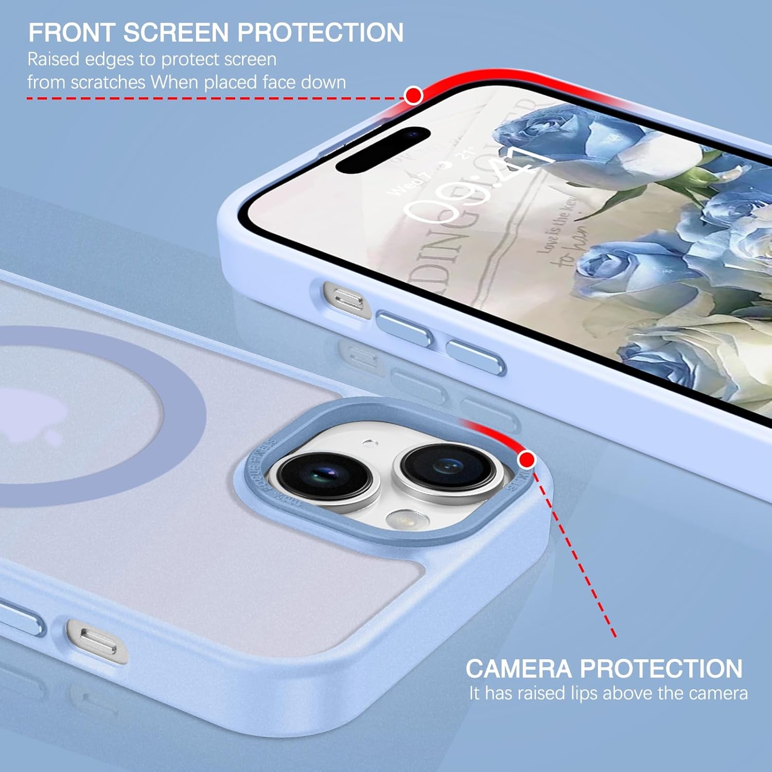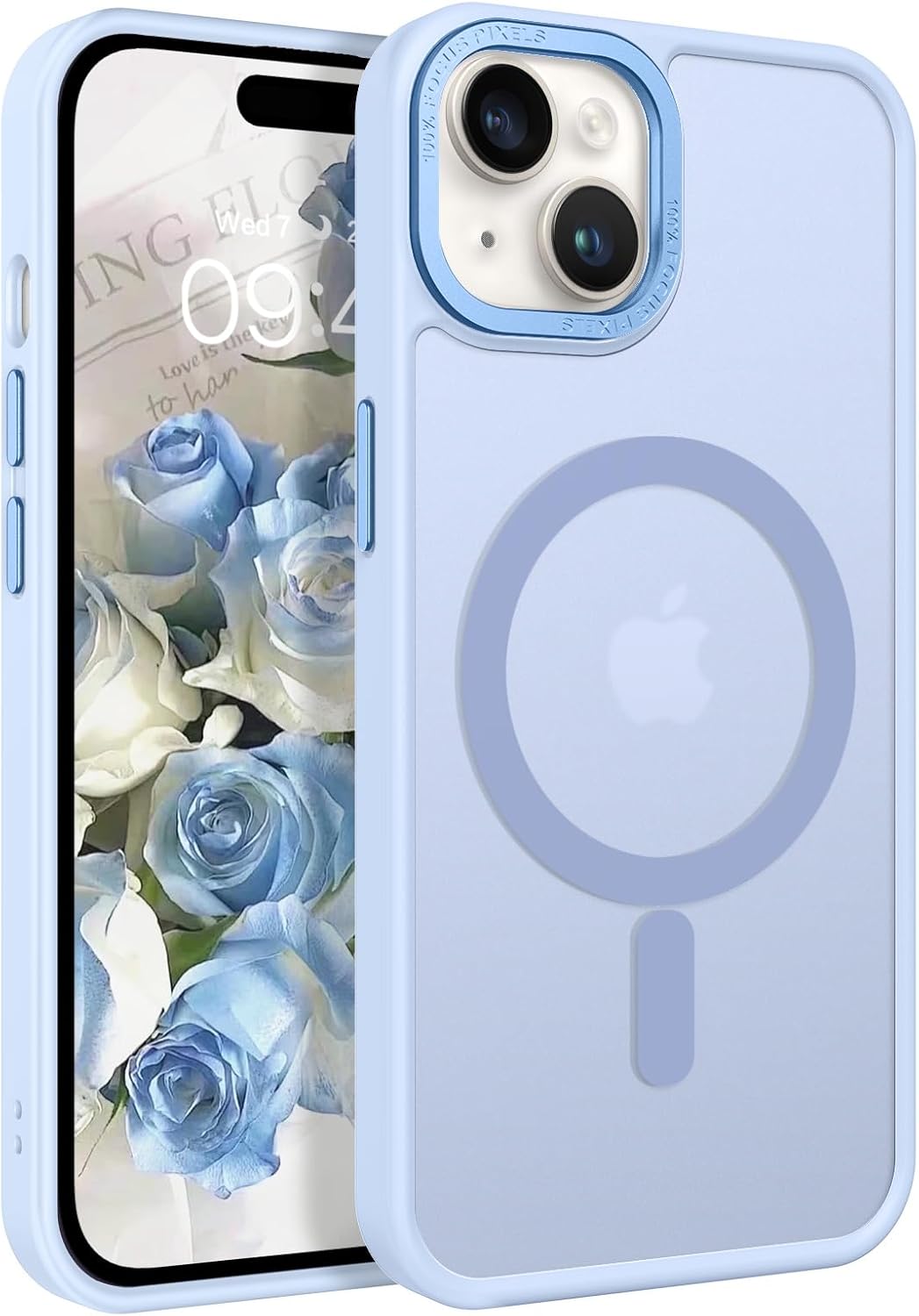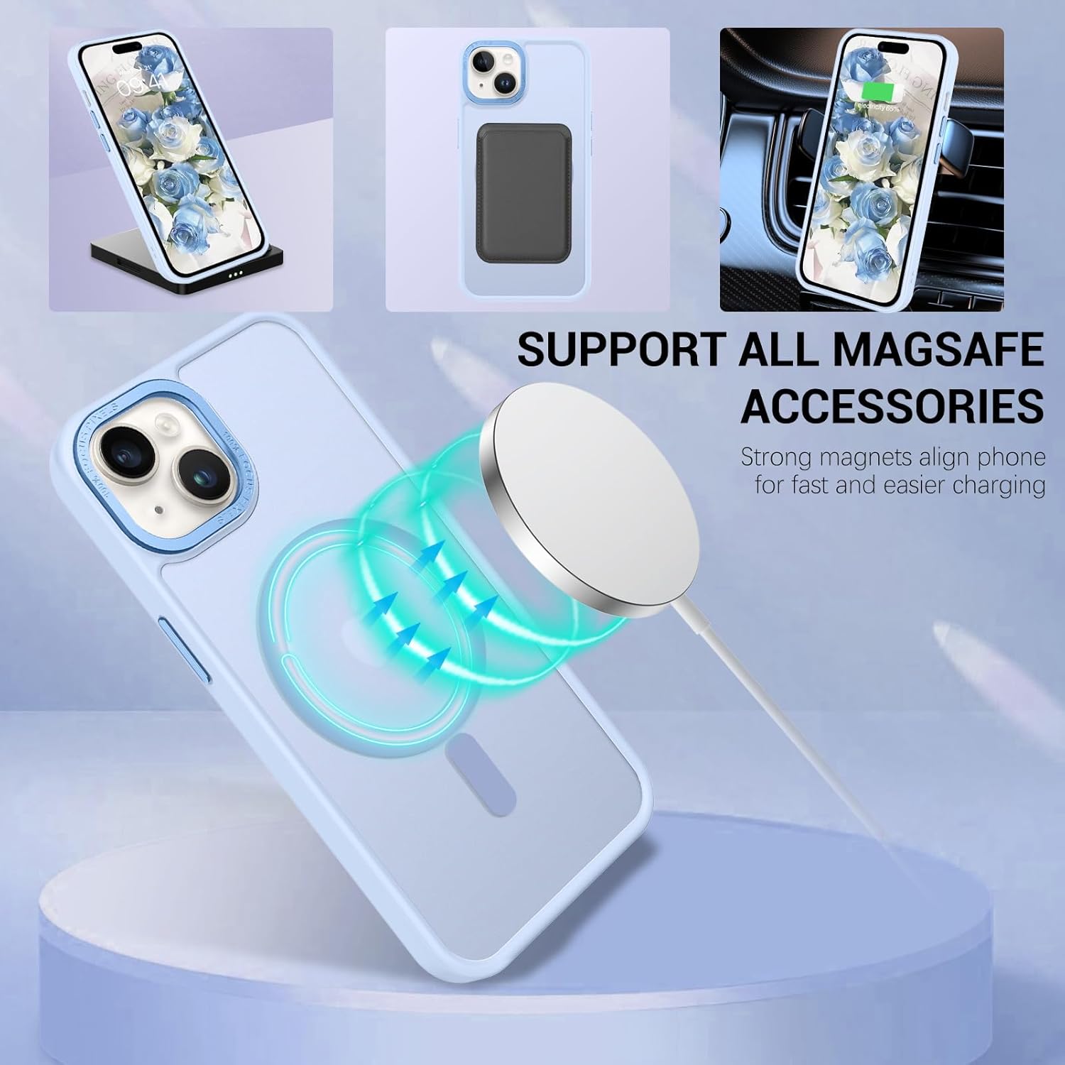 GaoBao Магнитен Калъф за iPhone 15 Plus, Калъф за мобилен телефон iPhone 15 Plus за Magsafe Прозрачен Матов Магнитен Удароустойчив Калъф против Пръстови Отпечатъци за iPhone 15Plus 6.7 инча, Светло Син