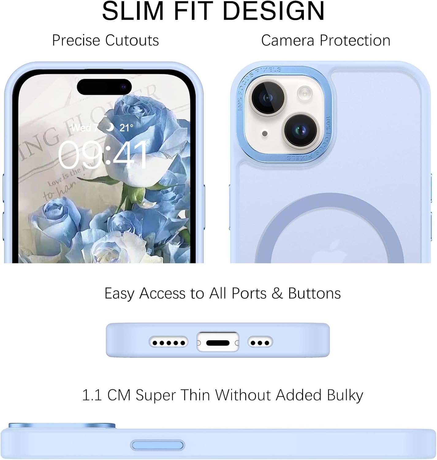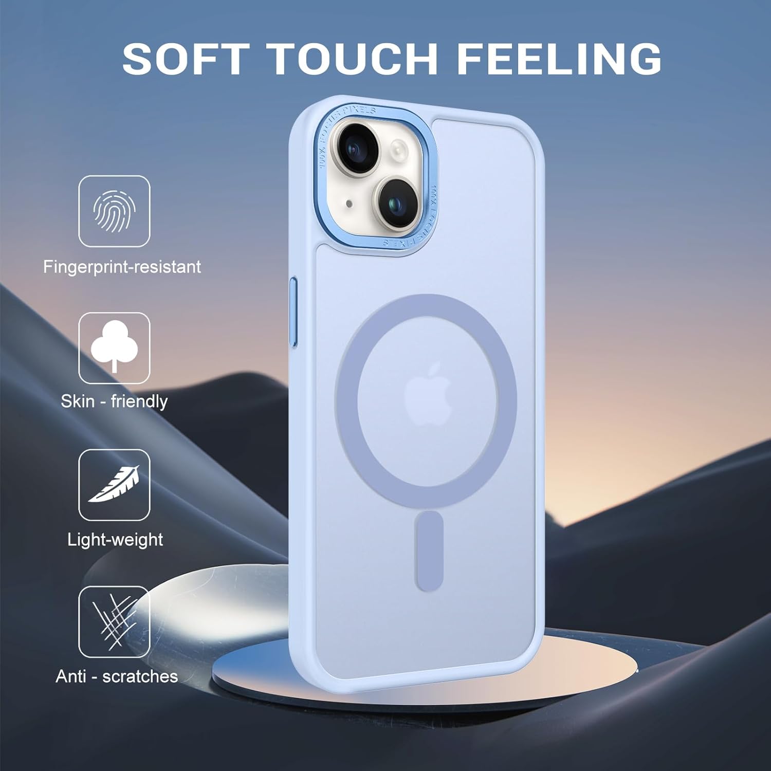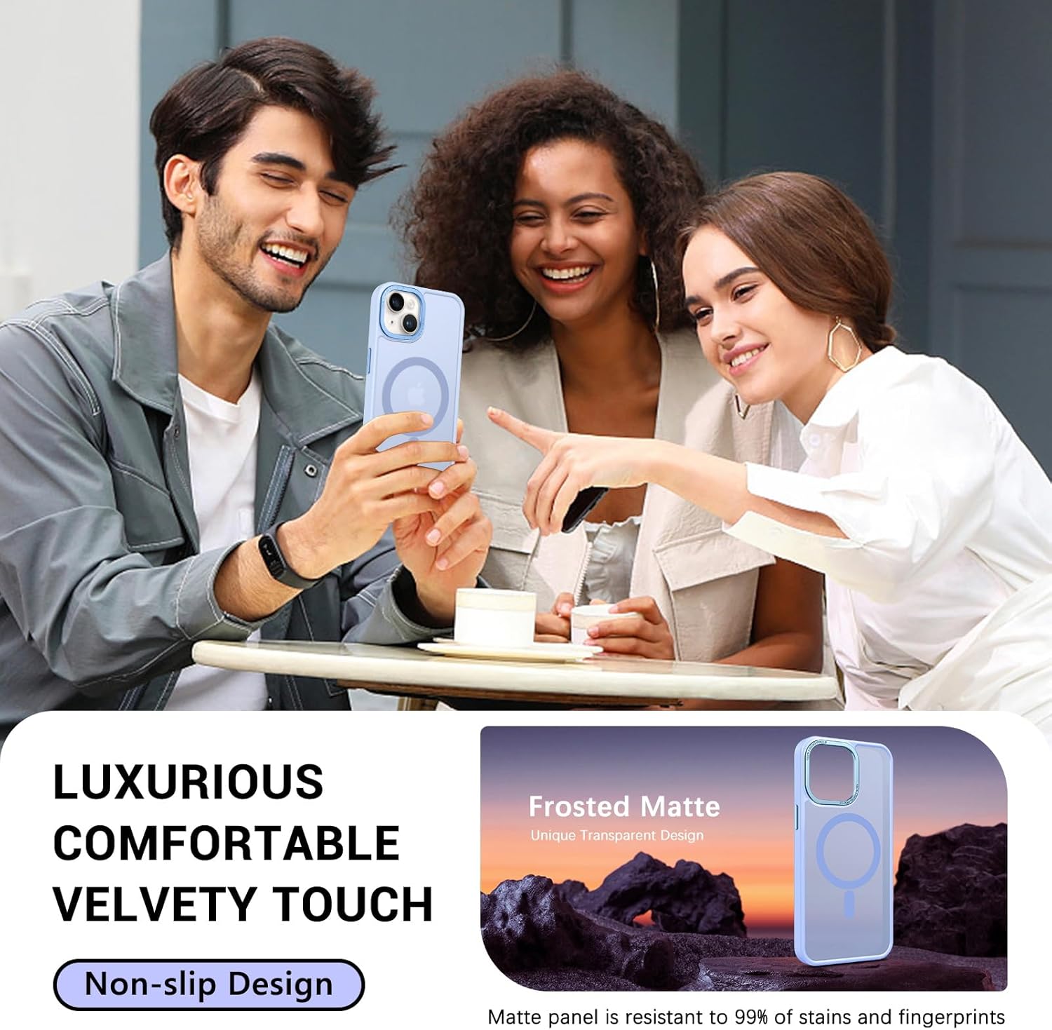 GaoBao Магнитен Калъф за iPhone 15 Plus, Калъф за мобилен телефон iPhone 15 Plus за Magsafe Прозрачен Матов Магнитен Удароустойчив Калъф против Пръстови Отпечатъци за iPhone 15Plus 6.7 инча, Светло Син