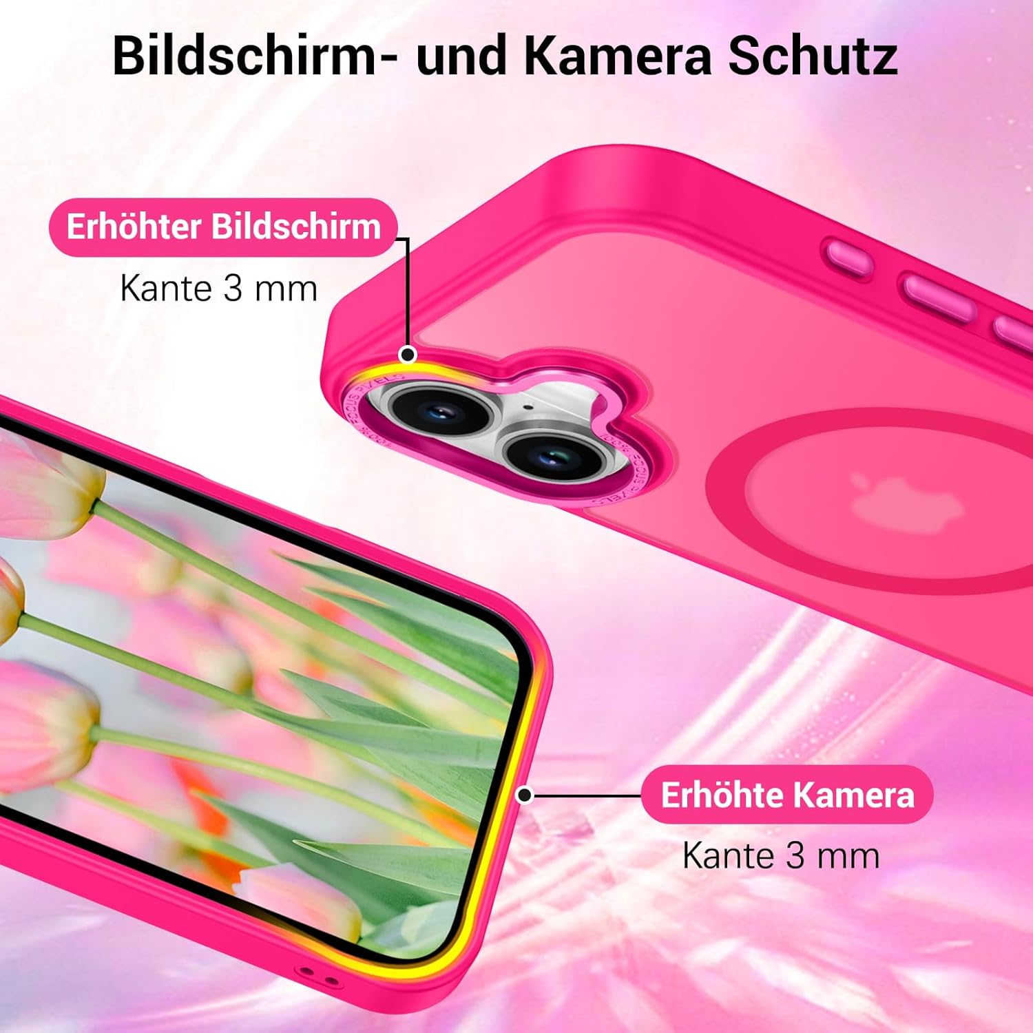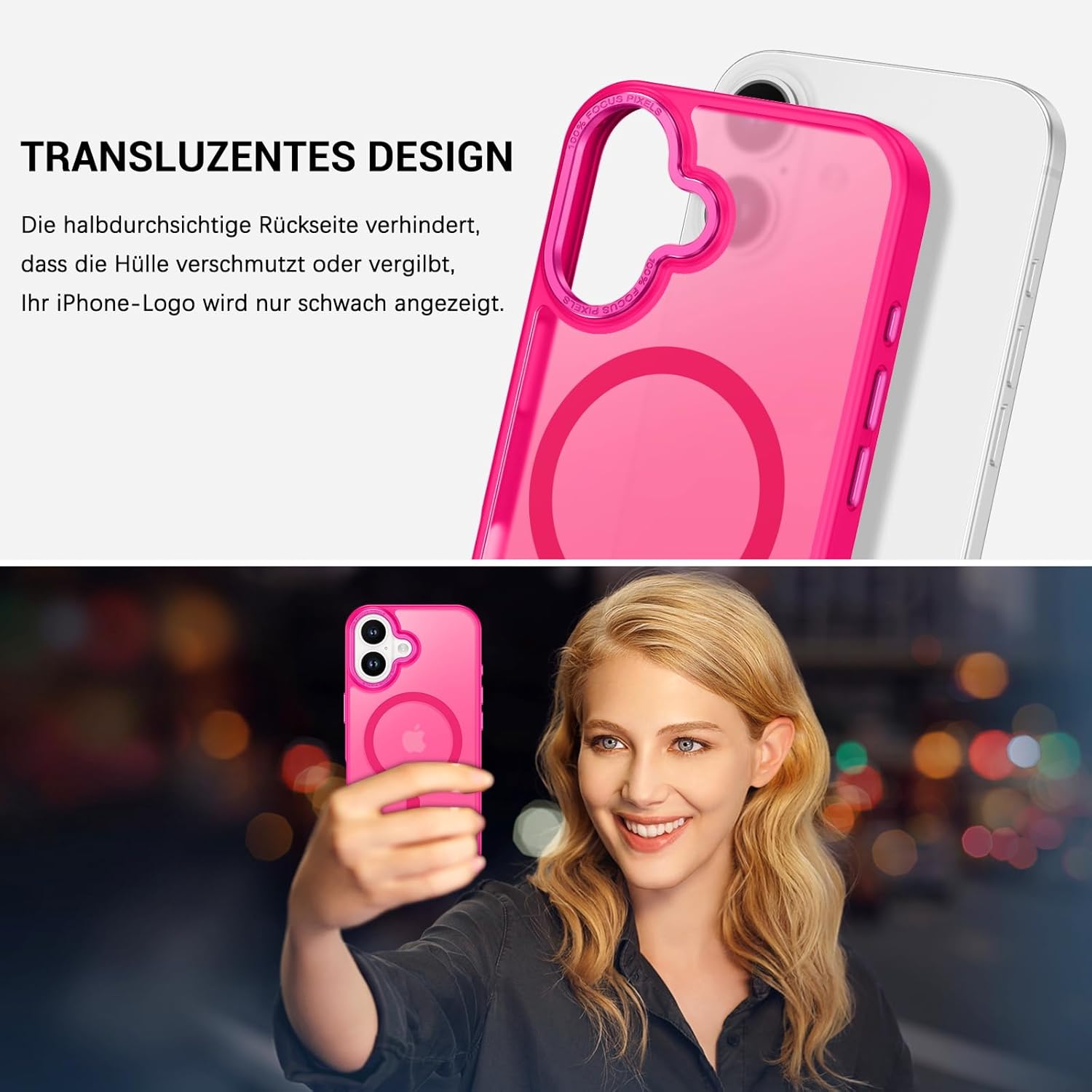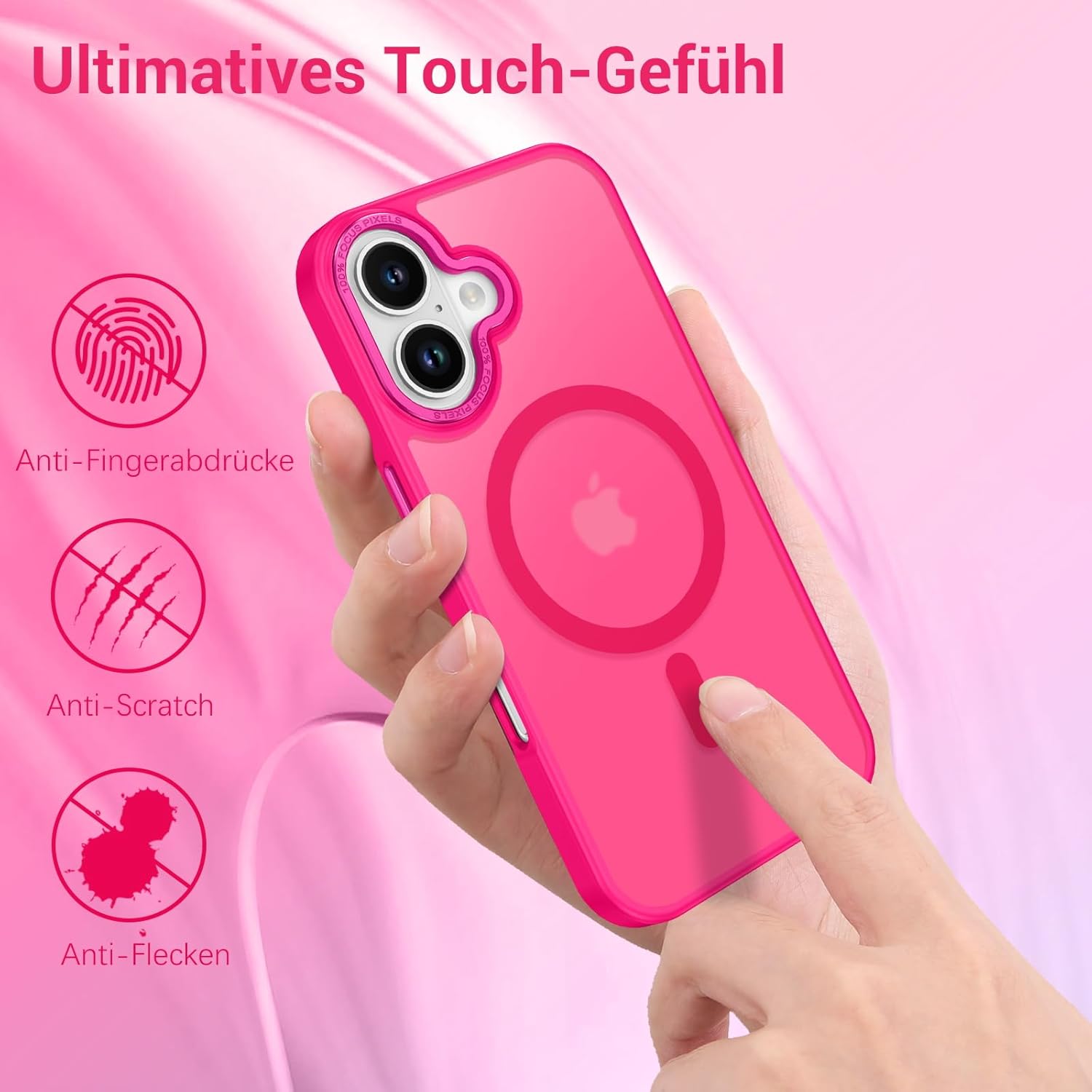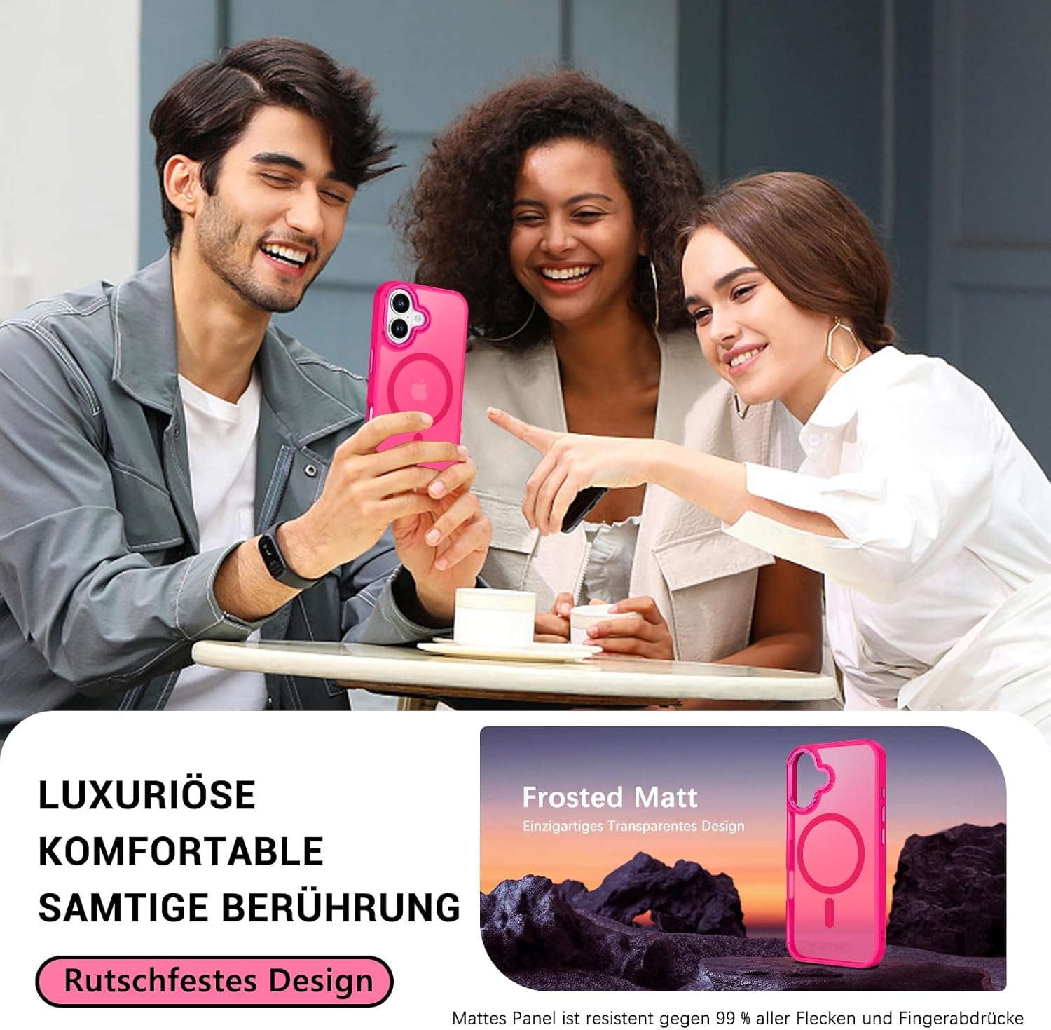 GaoBao Магнитен Калъф за iPhone 16 Plus, Калъф за мобилен телефон iPhone 16 Plus за Mag Safe Прозрачен Матов Магнитен Удароустойчив Калъф против Пръстови Отпечатъци за iPhone 16 Plus 6.7 инча, Розово Червен