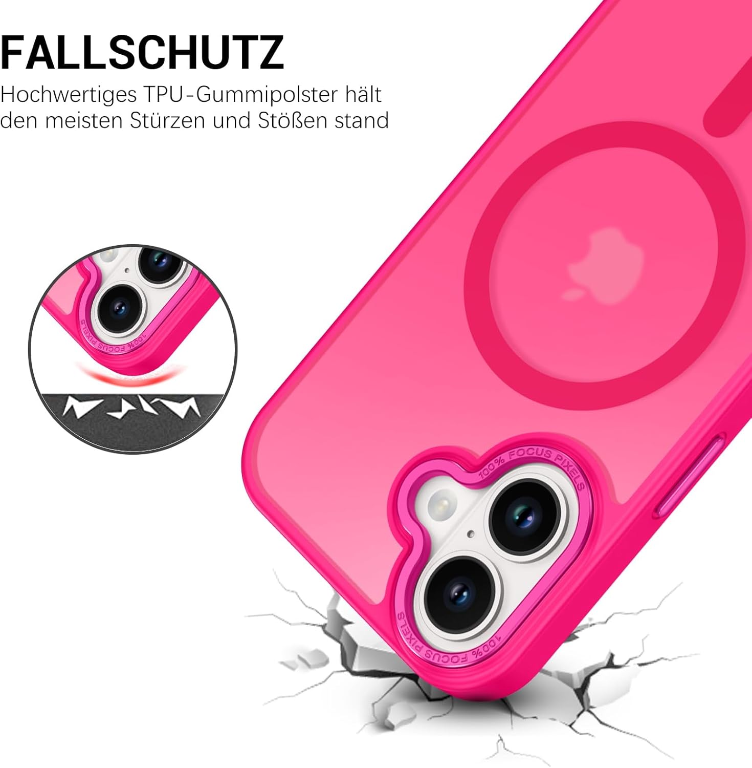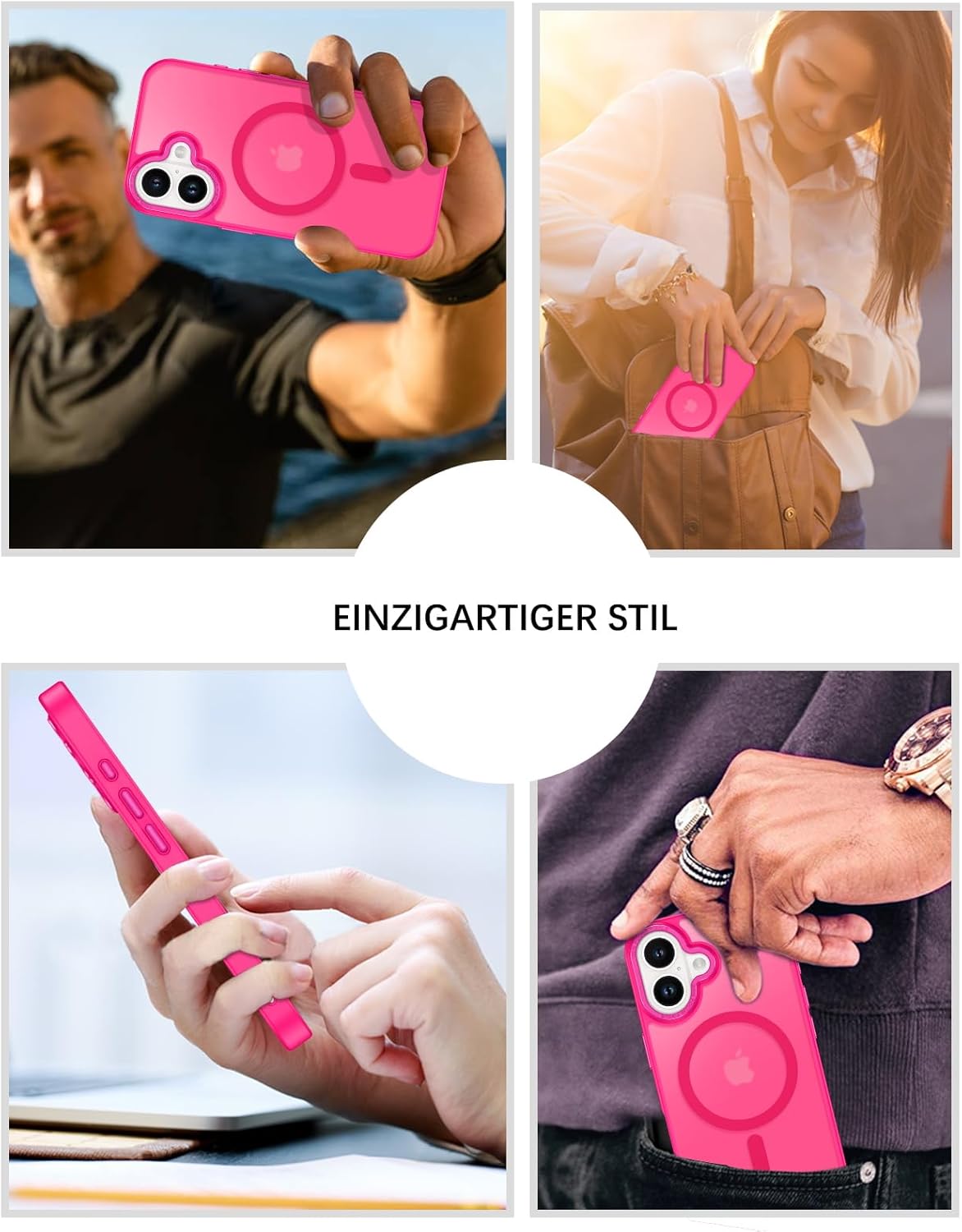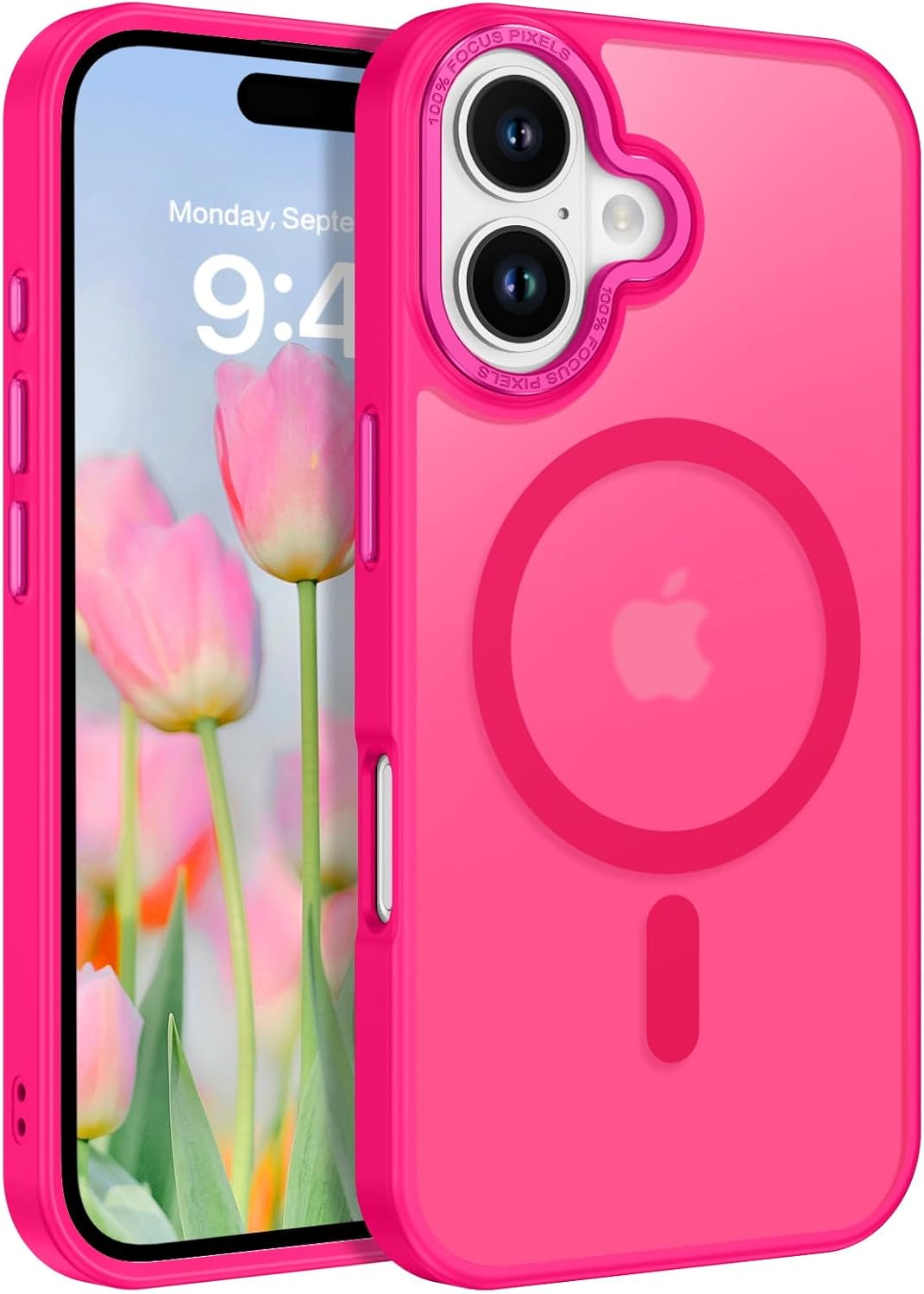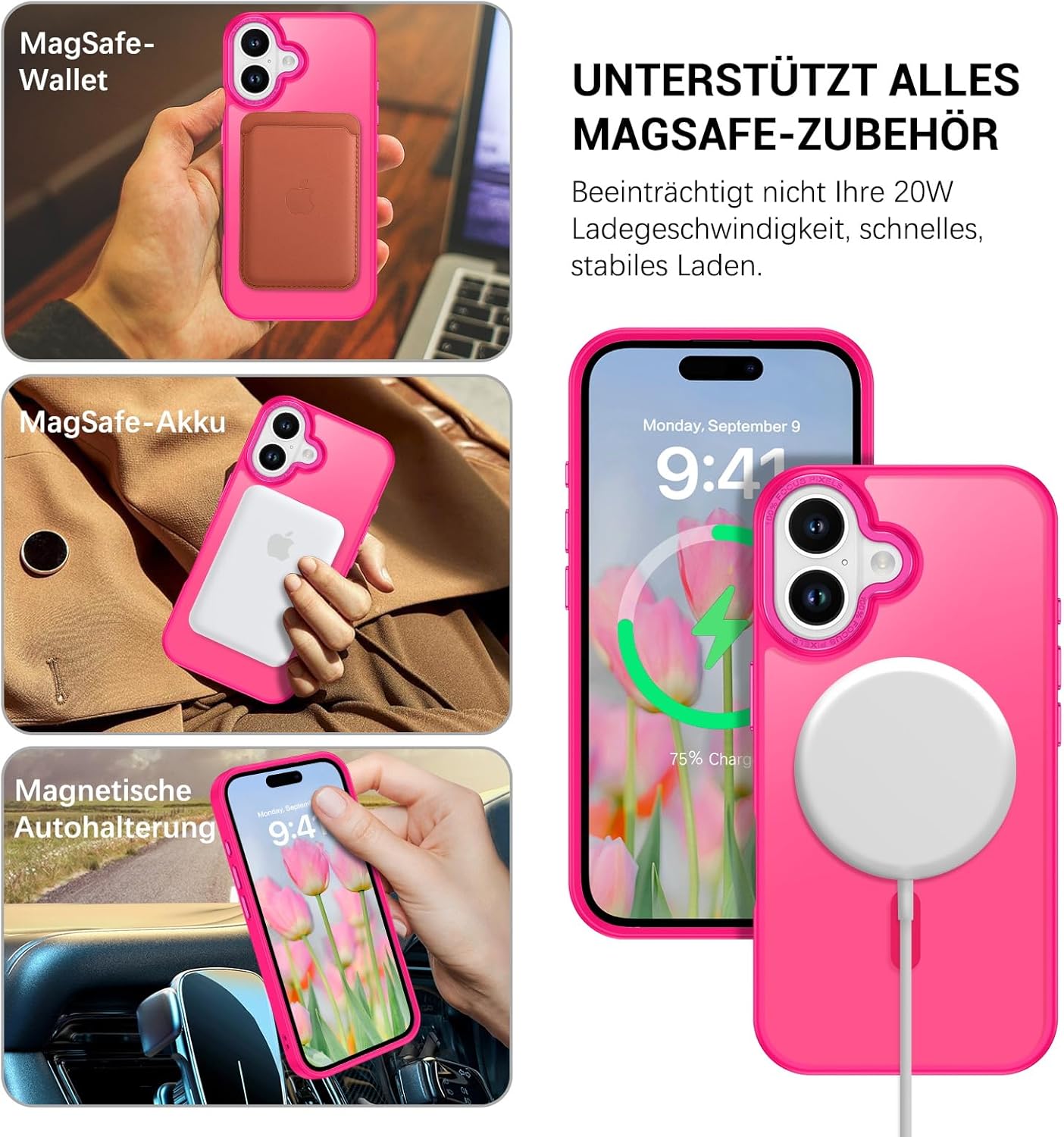GaoBao Магнитен Калъф за iPhone 16 Plus, Калъф за мобилен телефон iPhone 16 Plus за Mag Safe Прозрачен Матов Магнитен Удароустойчив Калъф против Пръстови Отпечатъци за iPhone 16 Plus 6.7 инча, Розово Червен