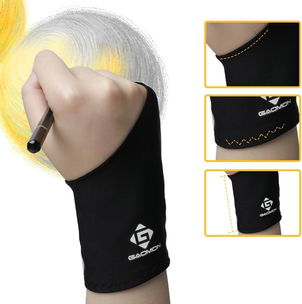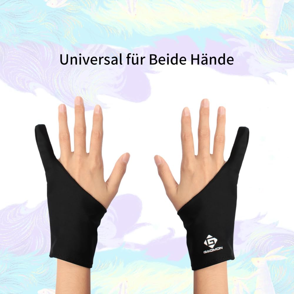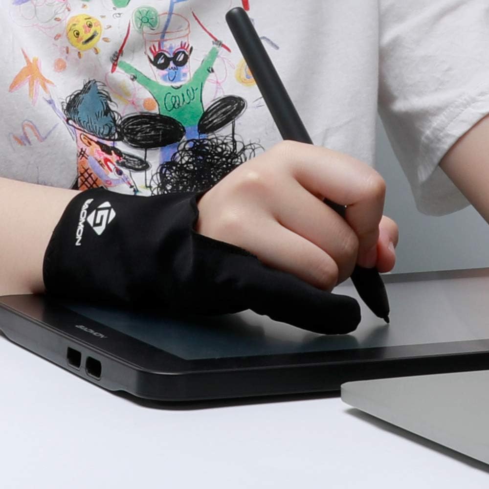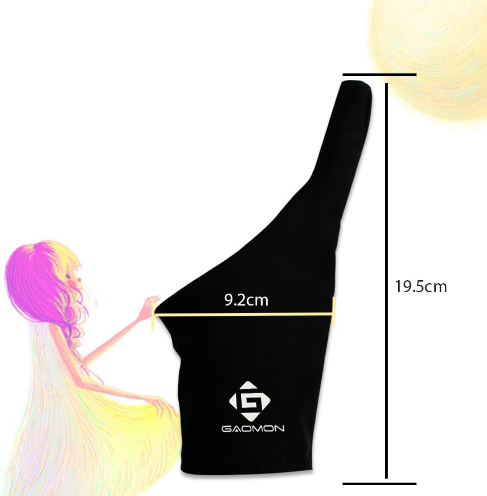 GAOMON Двупръстова противоплъзгаща черна ръкавица от ликра за художници за графичен таблет/LED светлинна кутия/дисплей за писалка - размер без размер