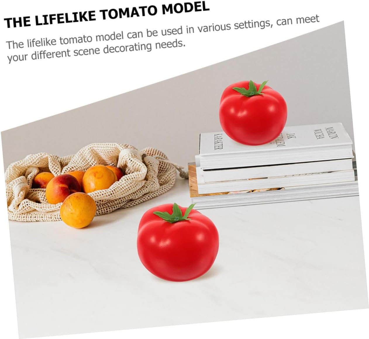 Изкуствен зеленчук: изкуственият домат е подходящ за декорация и може да се използва и като декорация за маса за хранене. Реалистични модели на зеленчуци: леки и компактни, лесни за съхранение и употреба. Реквизит за кутия за показване Реалистичният модел на изкуствен домат може да се използва в различни среди.