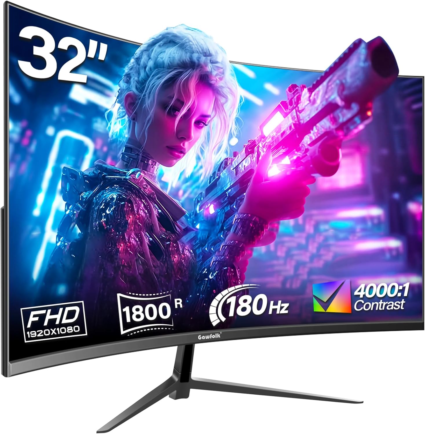 • 180Hz / 165Hz геймърски монитор: 32-инчовият геймърски монитор е с модерен 1800R VA дизайн на екрана, ултрабърза честота на опресняване от 180 Hz, дисплей с пълна HD резолюция (1920 x 1080) и време за реакция от 2 ms (GTG). Той осигурява ясни изображения, плавни видеоклипове и най-бързо движещи се сцени, за да осигури потребителско изживяване във всеки взискателен момент.