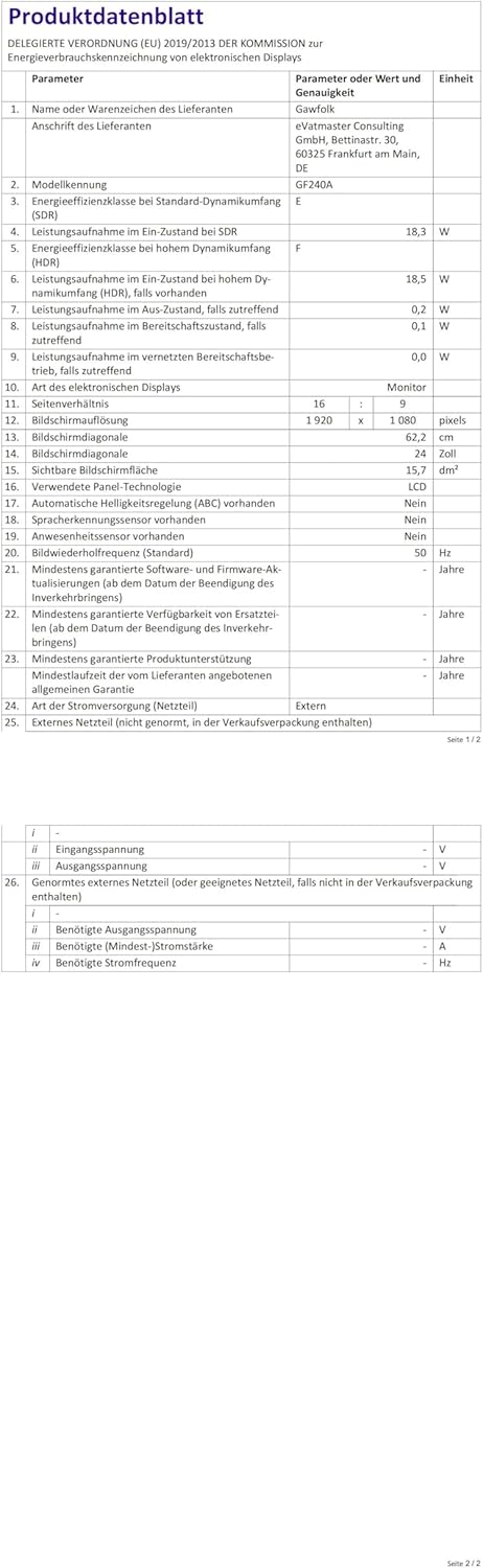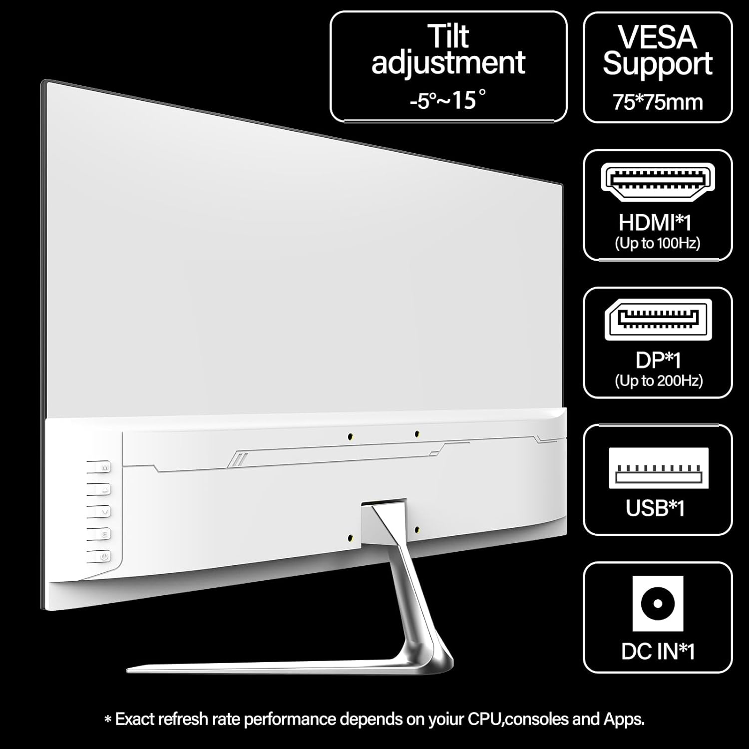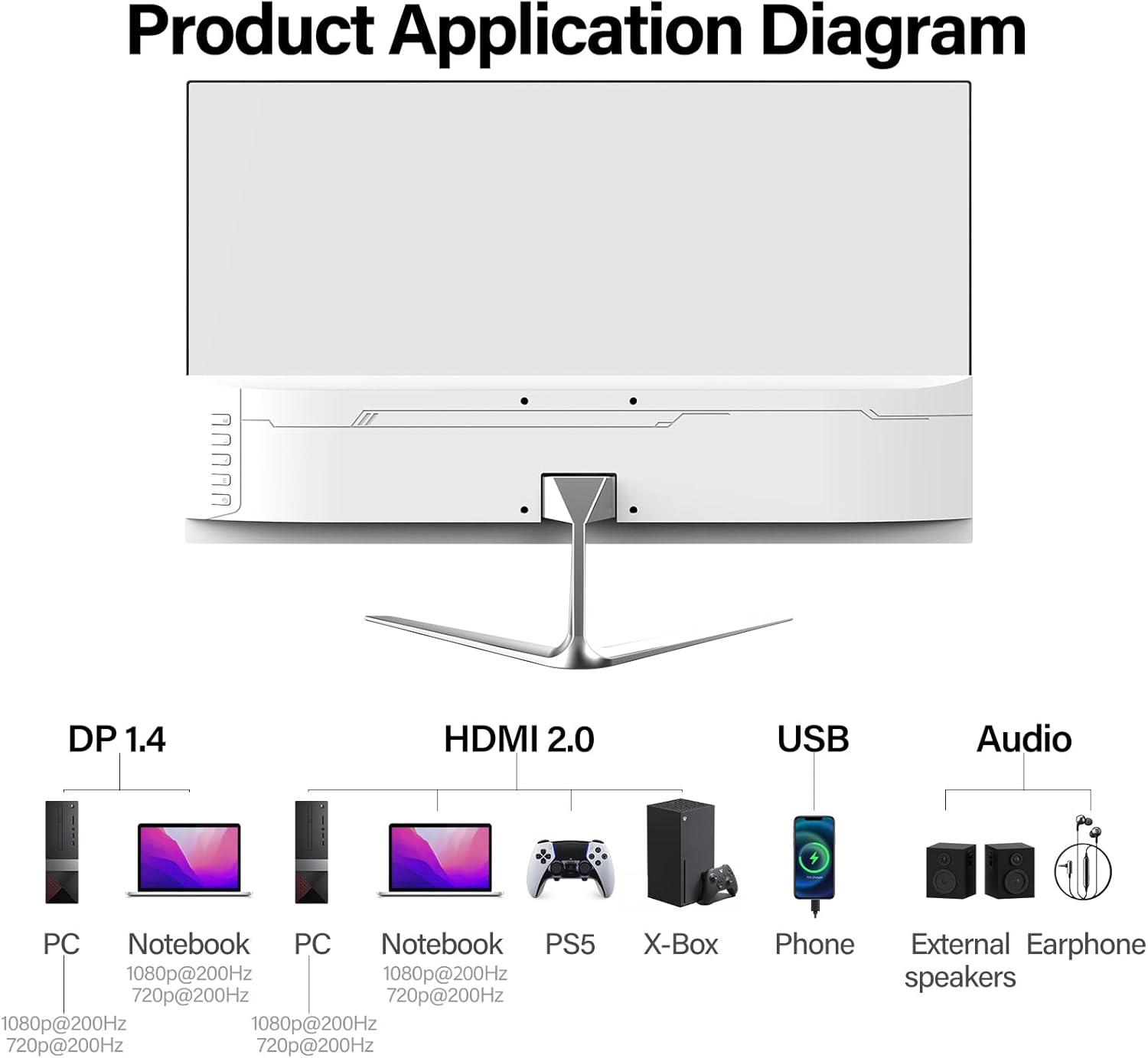 Gawfolk 24.5-инчов геймърски монитор с високоговорители, 200 Hz екран за компютър FHD 1080P безрамкови компютърни монитори, DisplayPort, HDMI, защита на очите