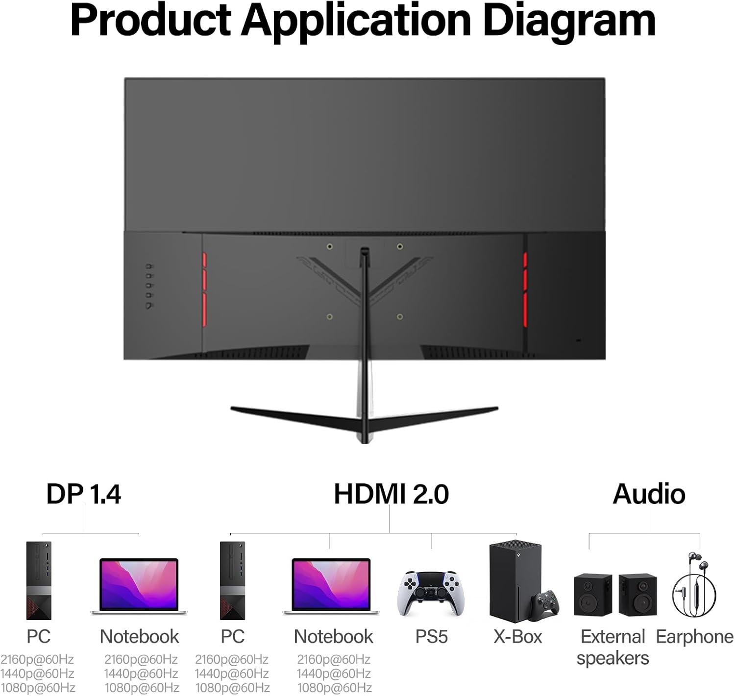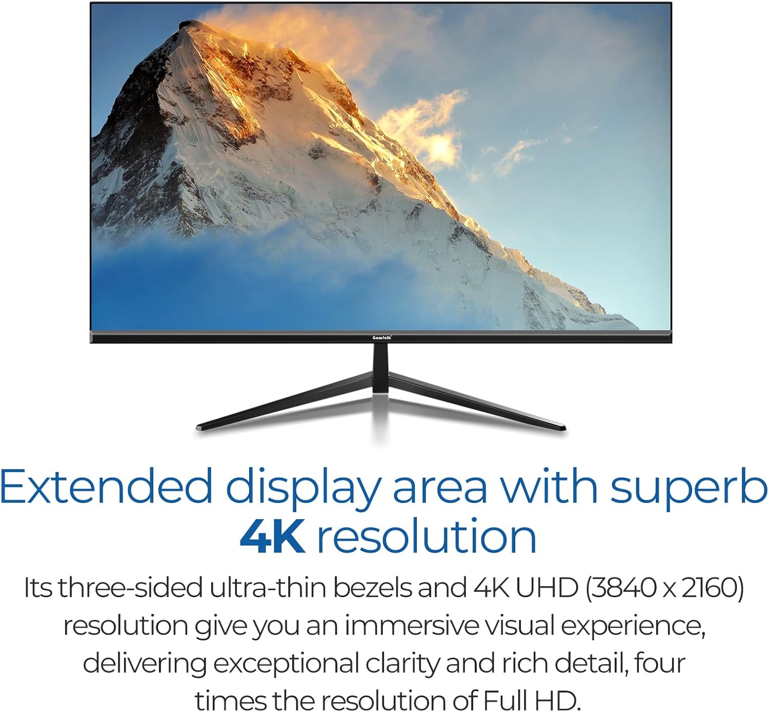Gawfolk 32-инчов монитор 4K (3840 x 2160) UHD геймърски компютърен монитор, VA панел, HDR, HDMI/DP, 60Hz, тесен ръб, 100 x 100 мм VESA, 16:9, черен