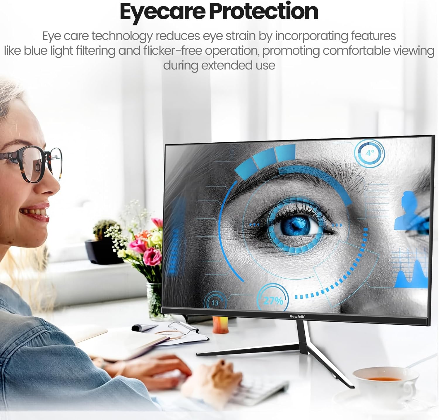 • Защита на очите - 27-инчовите компютърни монитори използват технология без трептене и филтриране на синята светлина, която минимизира синята светлина, за да предпази очите ви от увреждане.