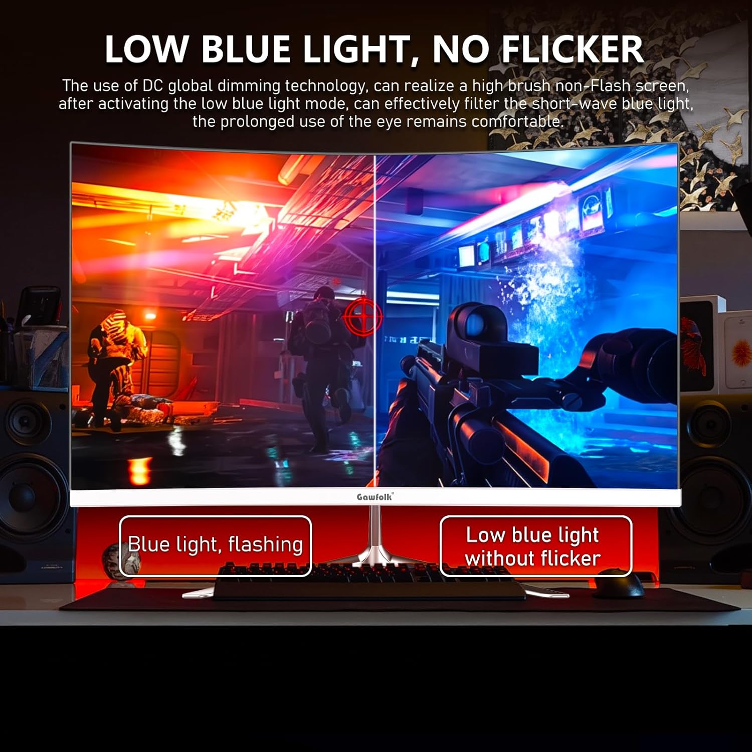 • Защита на очите - 27-инчовите компютърни монитори използват технология без трептене и филтриране на синята светлина, която минимизира синята светлина, за да предпази очите ви от увреждане.