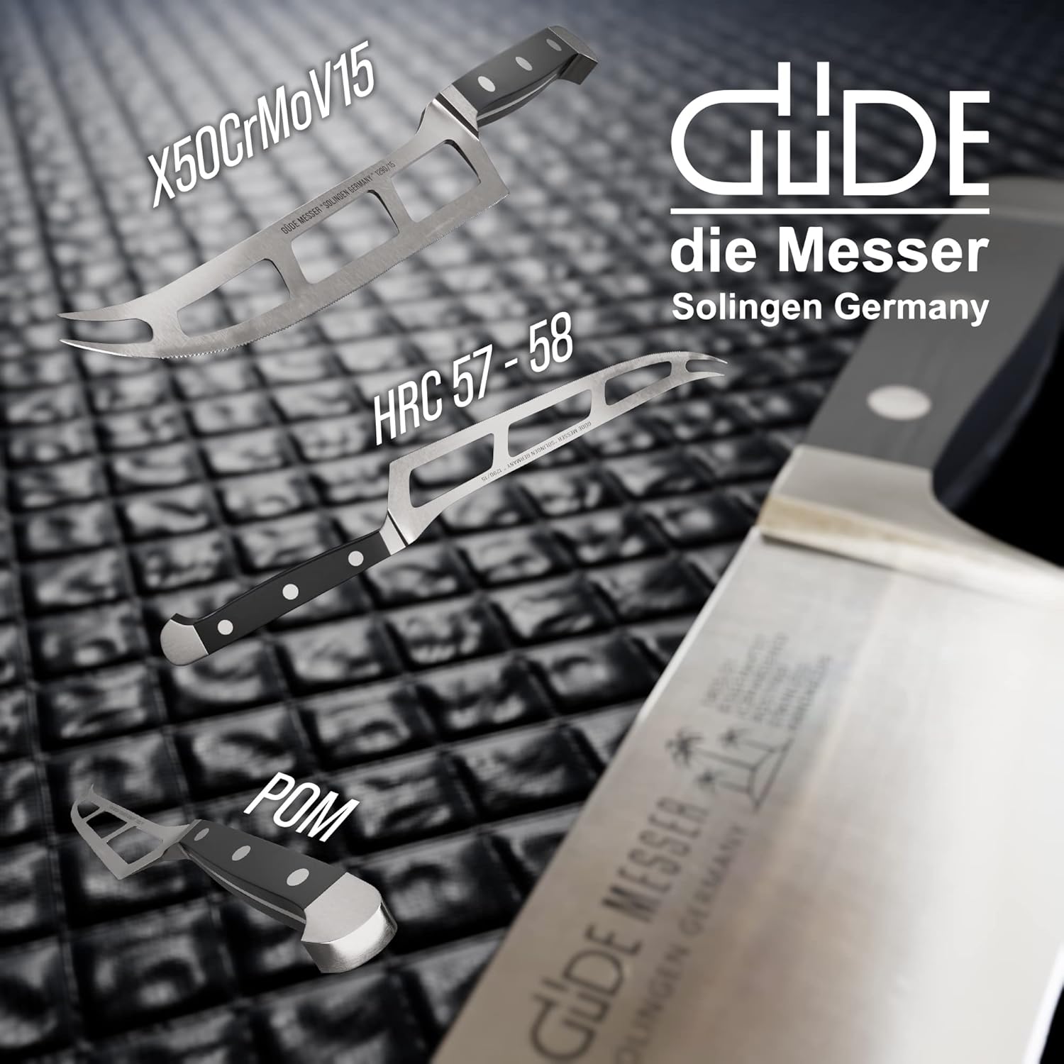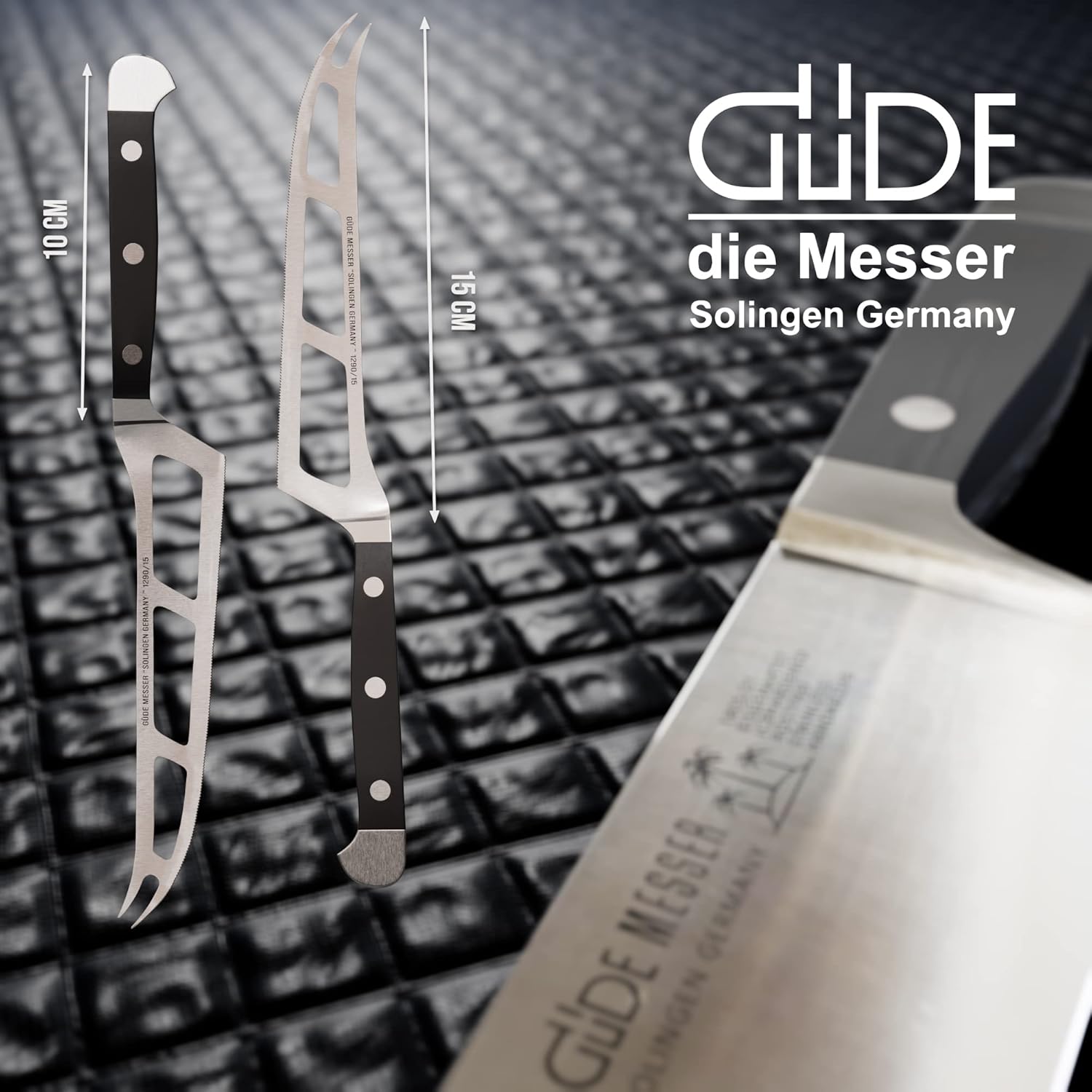 • За да се насладите напълно на Бри, Камамбер, Жерамон и други гурме меки сирена, ви е необходим правилният нож. Ножът за сирене GÜDE с двоен болт е идеалният спътник за разнообразие от сирена. Нарежете и сервирайте с удоволствие!