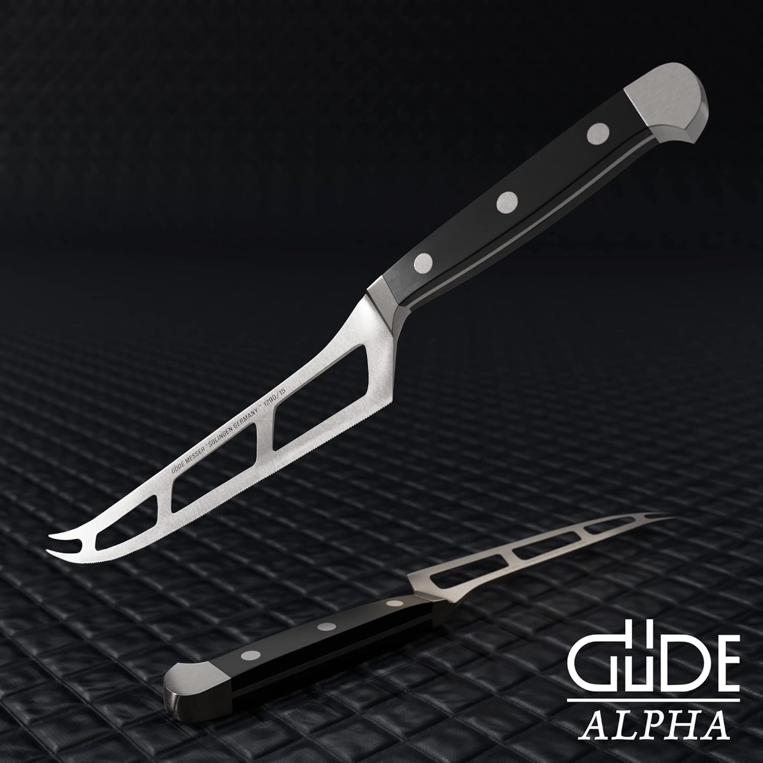 GÜDE Solingen - Нож за меко сирене, кован, 15 см, черен POM, ALPHA, двойна основа, ръчно изработен в Германия