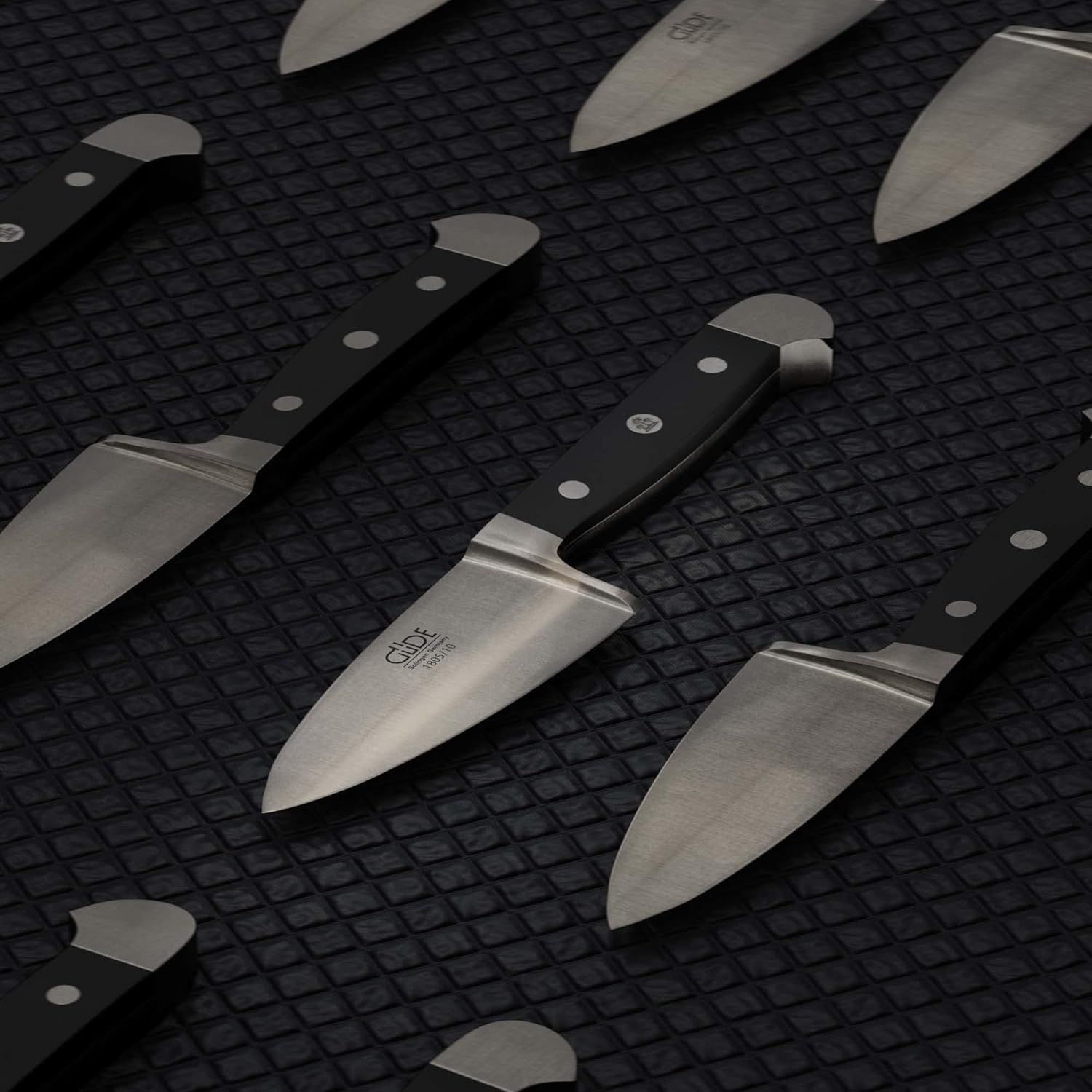 • GÜDE, семейна компания, е синоним на ножове, изработени по традиционен начин, в съответствие с наследството на Солинген. Многобройни награди и уникални серии ножове доказват, че GÜDE е сред водещите световни производители на ножове.