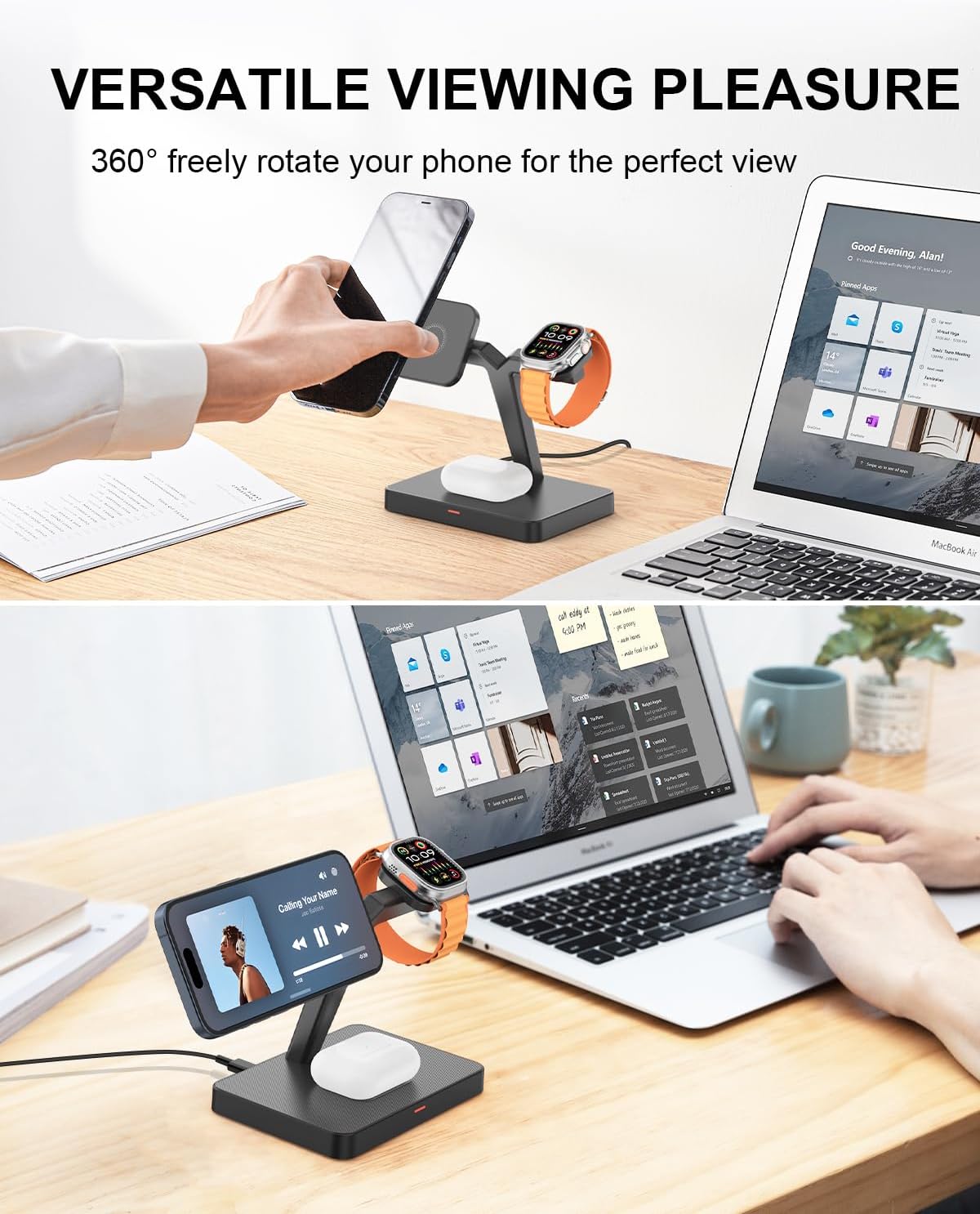 The Apple Watch and iPhone charging station has been specially designed with an ideal viewing angle of 60° and offers you a comfortable viewing experience, whether you are sitting or standing. It is ideal for watching videos and movies, making calls, etc.