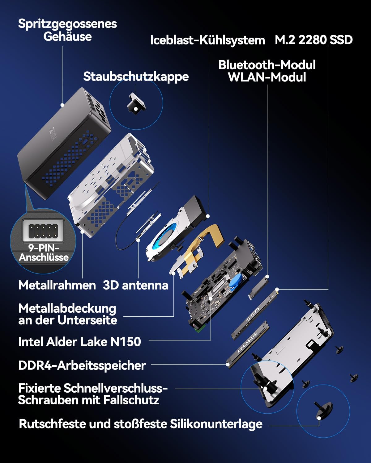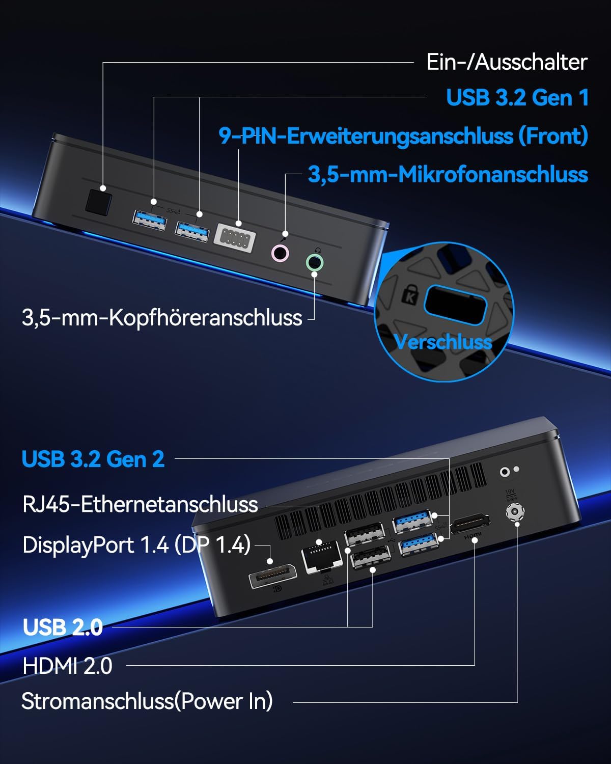 • [Детайли, които надминават очакванията] Geekom Mini PC разполага с фиксирани винтове за бързо освобождаване, които могат да се отстраняват без инструменти и са защитени от загуба. Противоплъзгащи и амортизиращи гумени подложки са разположени на дъното. Това е само върхът на айсберга, когато става въпрос за вниманието на Geekom към детайла – всеки дизайнерски елемент е проектиран да надмине очакванията ви.
