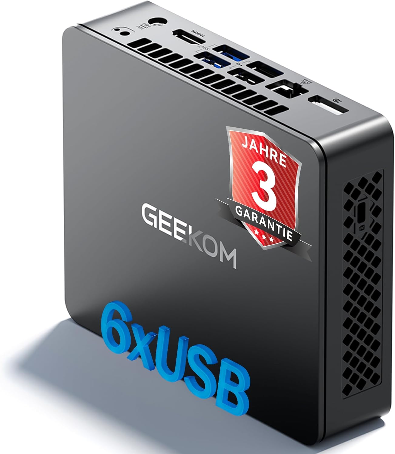 • [6 универсални USB порта] Мини компютърът GEEKOM Air12 Lite предлага 6 интелигентни USB порта (4×USB3.2 Gen1/Gen2 + 2×USB2.0) – могат да бъдат свързани едновременно без докинг станция: клавиатура + мишка + външен твърд диск + USB памет + принтер + уеб камера + донгъл, за ефективна работа и забавление!