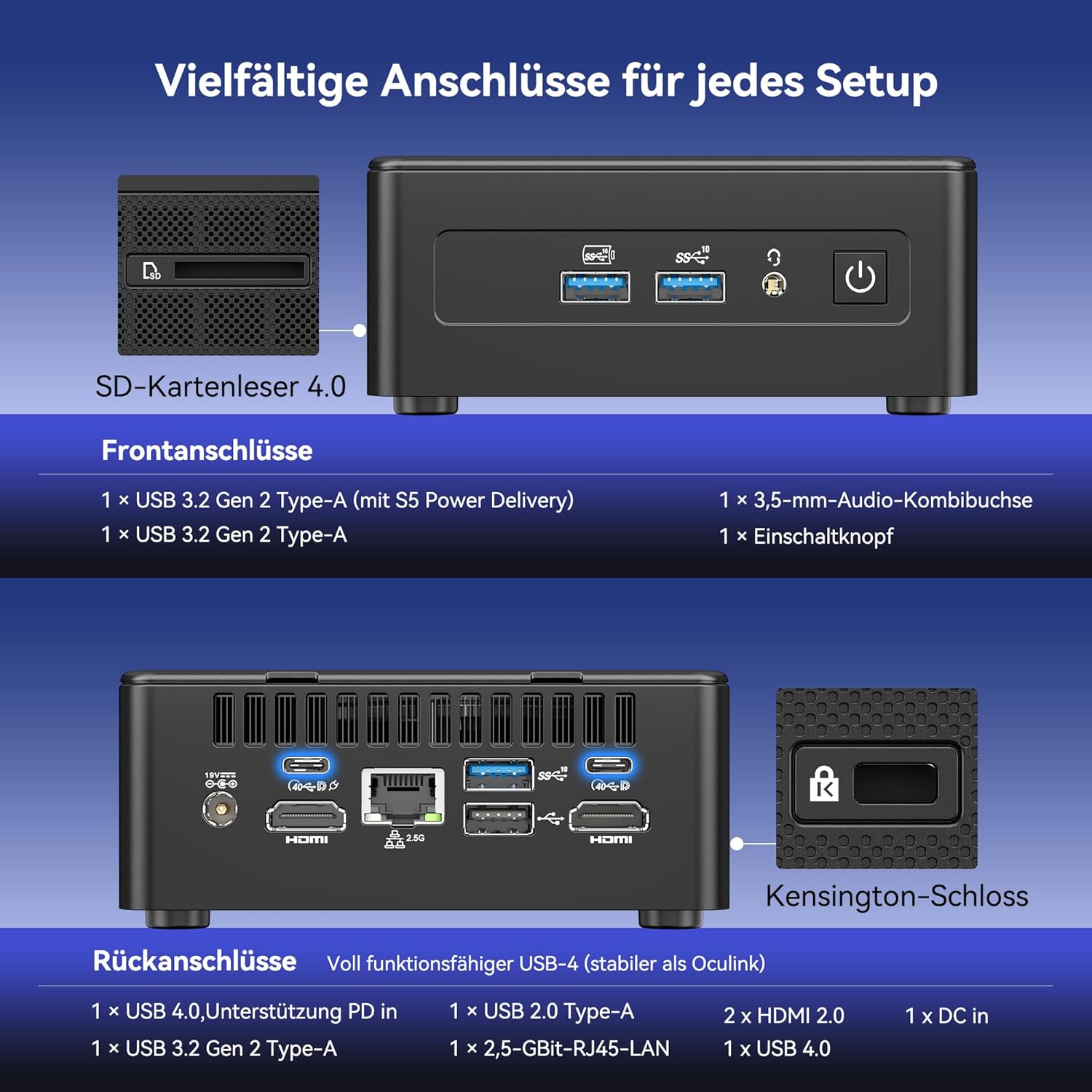 • [Най-мощният Intel Mini PC 2025] IT15 с второ поколение Intel Core Ultra 9 285H (16 ядра/16 нишки, 24MB кеш, до 5.4 GHz Turbo) е перфектната работна станция за професионалисти и бизнеси – достатъчно мощна за всяко натоварване.