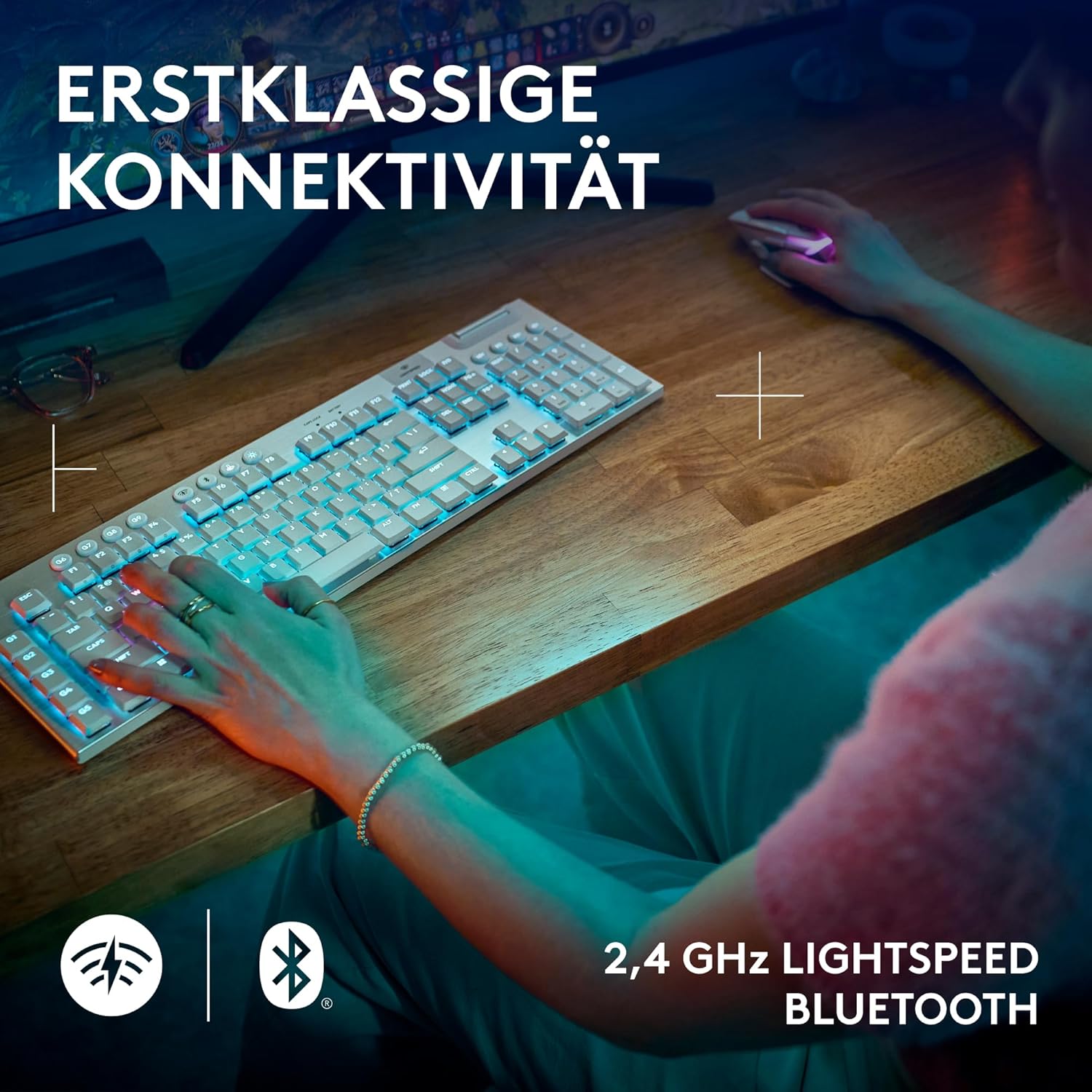 • LIGHTSYNC RGB: Мишката има персонализируемо 8-LED осветление, което се адаптира към играта с ефекти при стартиране и изключване и оптимизация на батерията чрез активно разпознаване на играта.