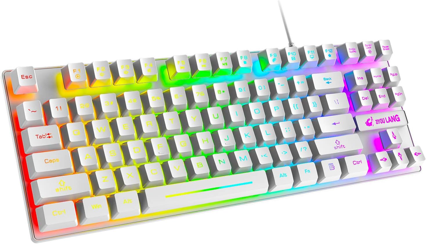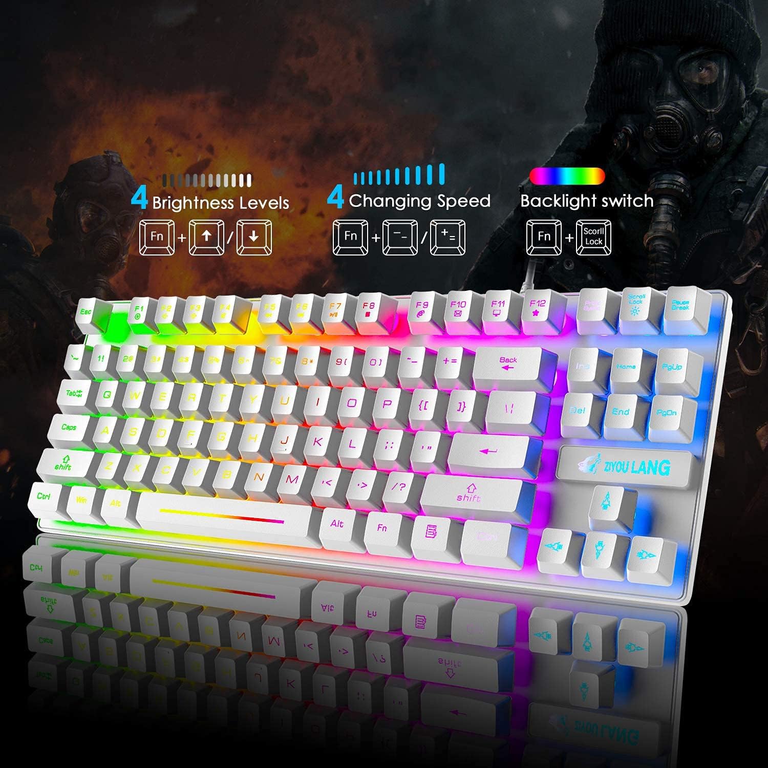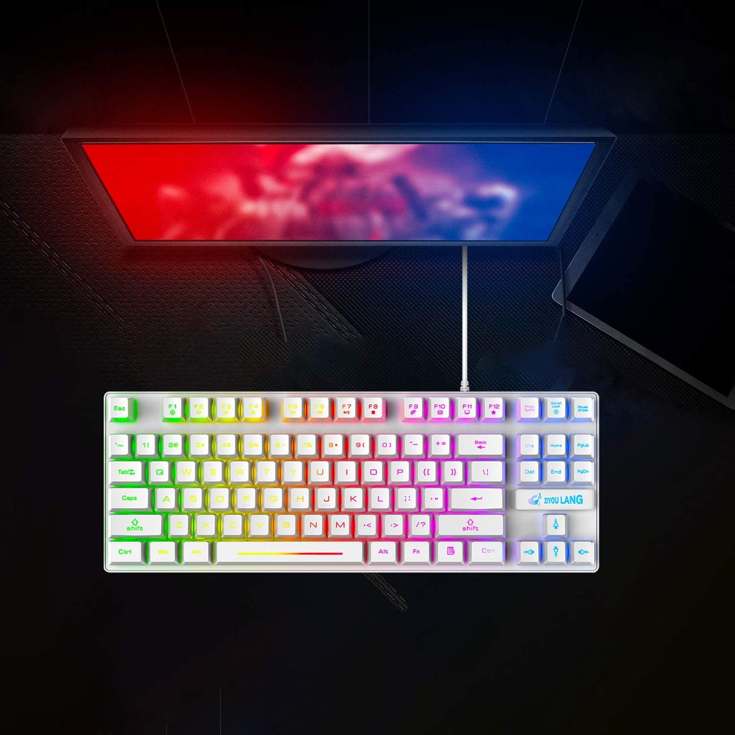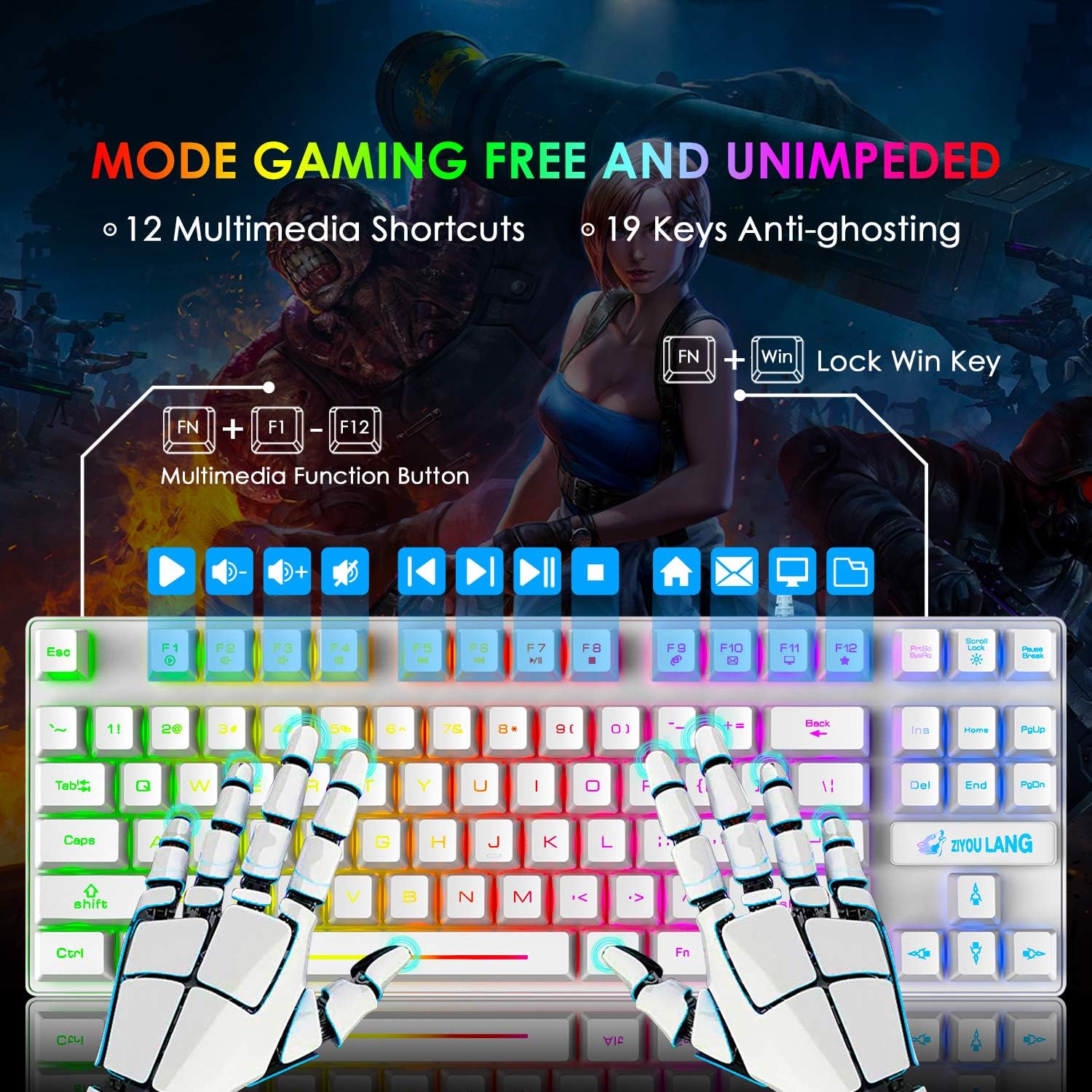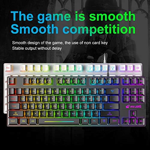 • Клавиатурата има 87 клавиша, 19 клавиша без конфликт, плаващи капачки на клавишите, подсилен интервал. Специално проектирани клавиши за подобрена издръжливост и тактилна обратна връзка, 60 милиона натискания, насладете се на висококачествено игрово изживяване с бърза реакция.