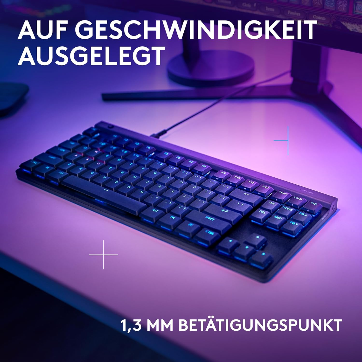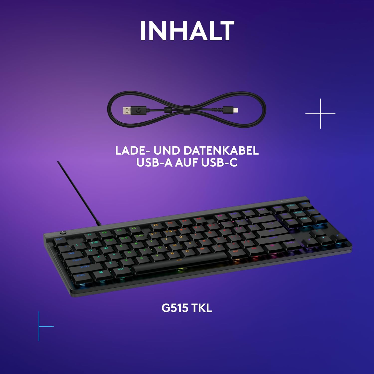 Геймърска клавиатура Logitech G G515 TKL Wired Flat, напълно персонализируема RGB подсветка, двойни PBT клавиши, немска QWERTZ подредба - черна