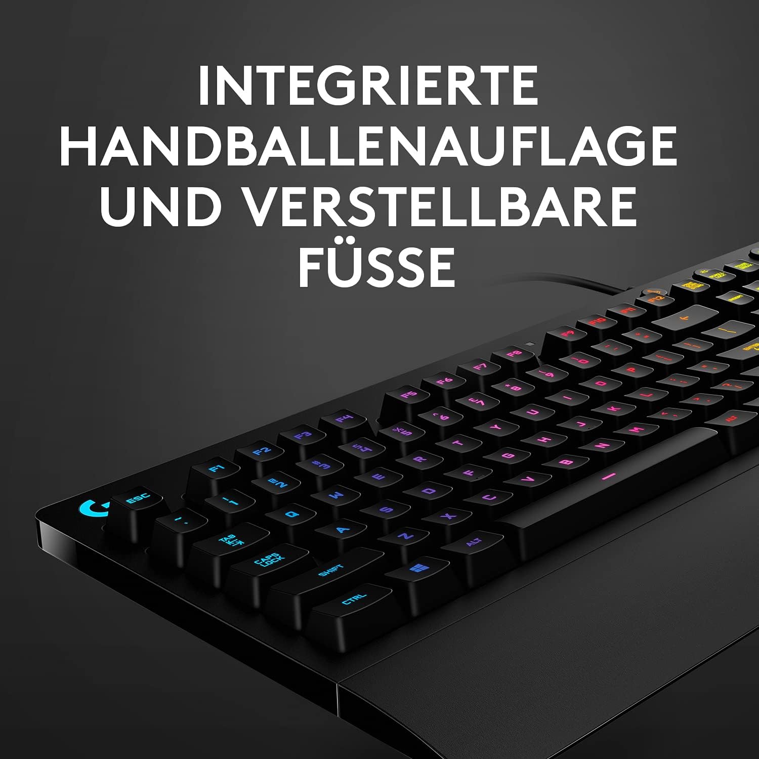 • Геймърска клавиатура с RGB зони на осветление: Тази клавиатура Logitech предлага пет отделни зони на осветление с избор на цвят от спектър от над 16,8 милиона цвята.