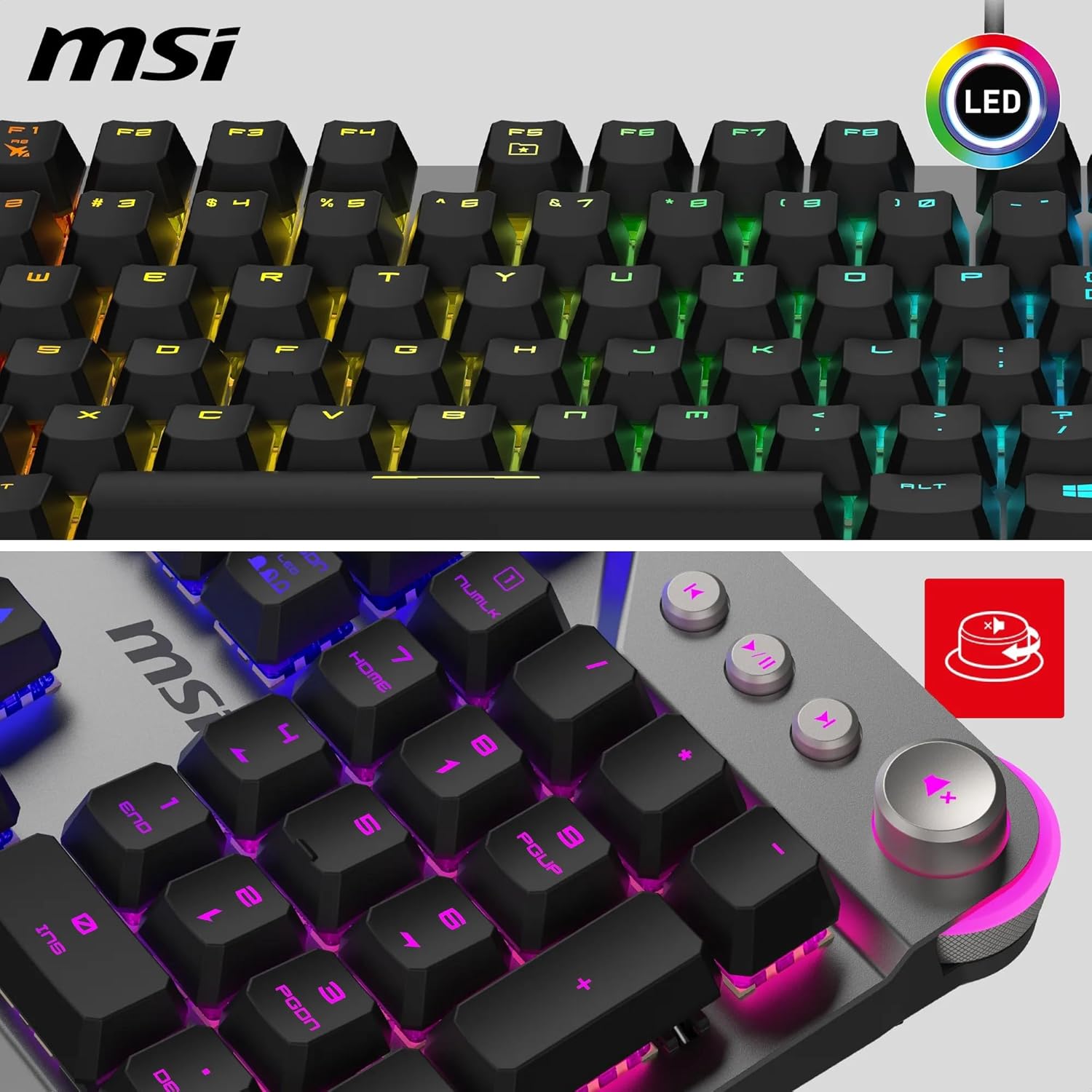 Die Rollover Hybrid 6+N Funktion sorgt für konfliktfreies Tippen - ideal für Spiele. Drei integrierte Profile ermöglichen einen schnellen Wechsel der Konfiguration, während das MSI Center die vollständige Anpassung der Tastenkombinationen für eine höhere Effizienz ermöglicht.