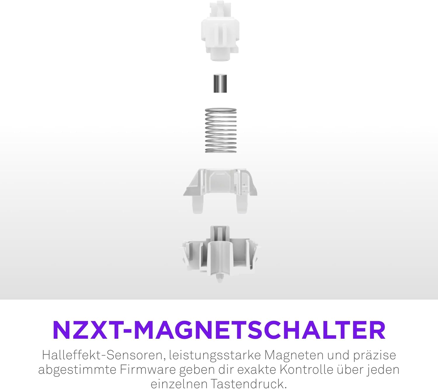 • NZXT -МАГНИТЕН ПРЕВКЛЮЧВАЧ – Сензори с ефект на Хол, мощни магнити и прецизно настроен фърмуер улавят точно всяко натискане на клавиш и отключват разширени възможности за персонализиране на начина, по който свирите и пишете.
