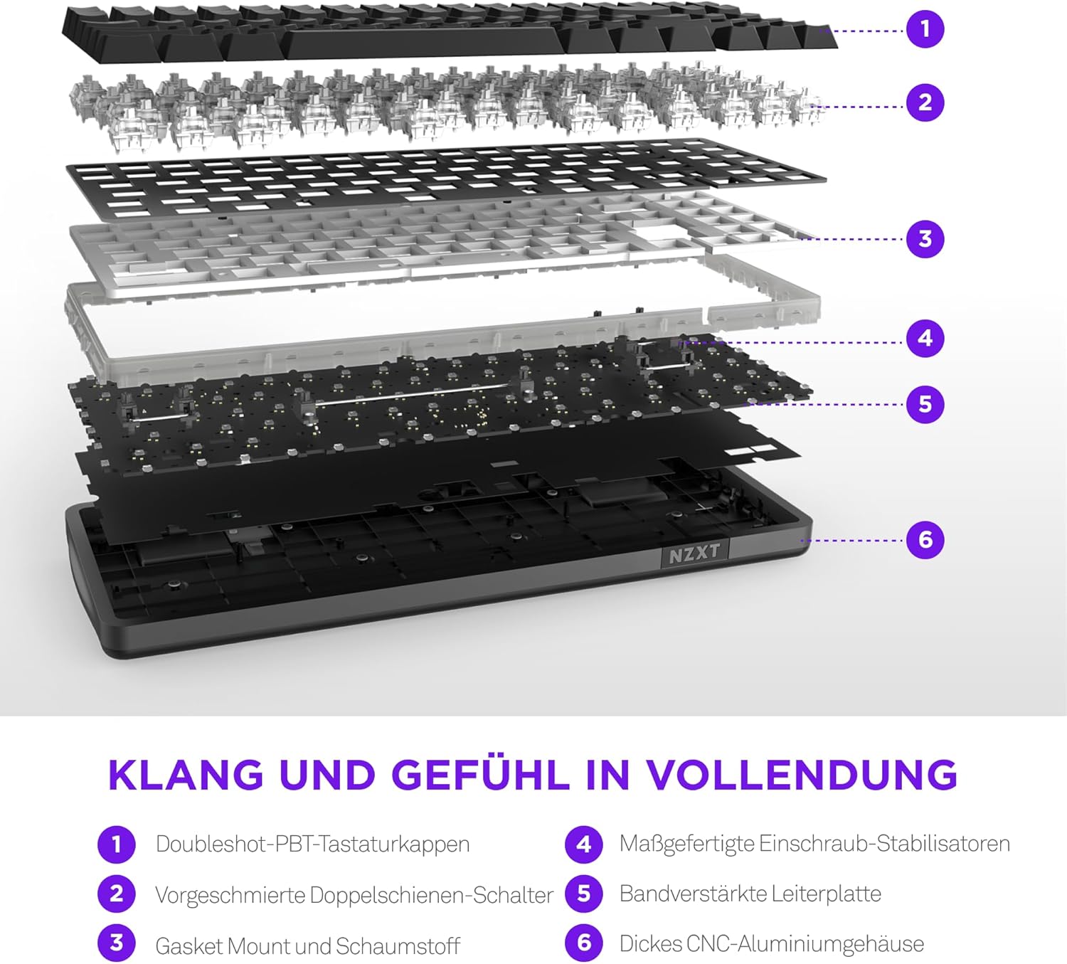 • КОМФОРТ ПО ЗВУК И УСЕЩАНЕ - Звукопоглъщащата пяна и подсилената с лента печатна платка създават дълбока, пълна акустика, докато конструкцията с уплътнение осигурява меко и омекотено изживяване при писане.
