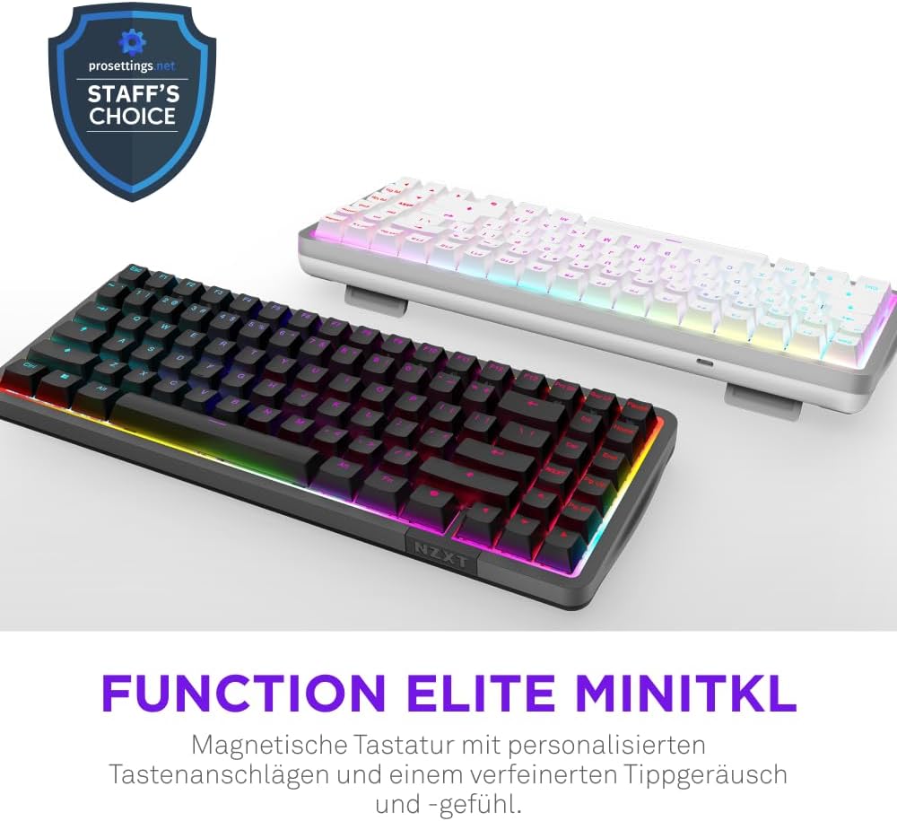 Геймърска клавиатура NZXT Function Elite MiniTKL Magnetic RGB - Персонализируемо задействане, двойни релсови превключватели с ефект на Хол, бързо задействане, 8K заявки - Подобрен звук и усещане при писане - UK - Бяла