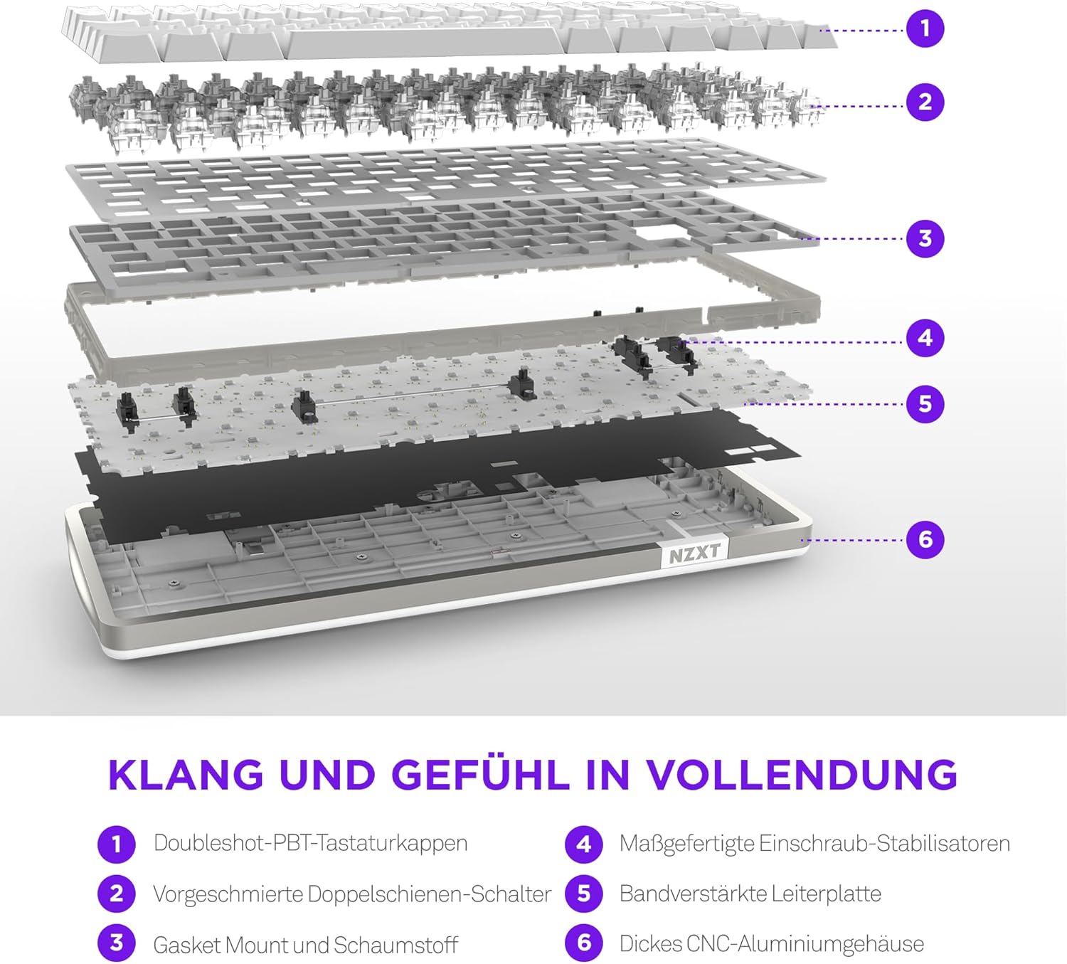 • КОМФОРТ ПО ЗВУК И УСЕЩАНЕ - Звукопоглъщащата пяна и подсилената с лента печатна платка създават дълбока, пълна акустика, докато конструкцията с уплътнение осигурява меко и омекотено изживяване при писане.