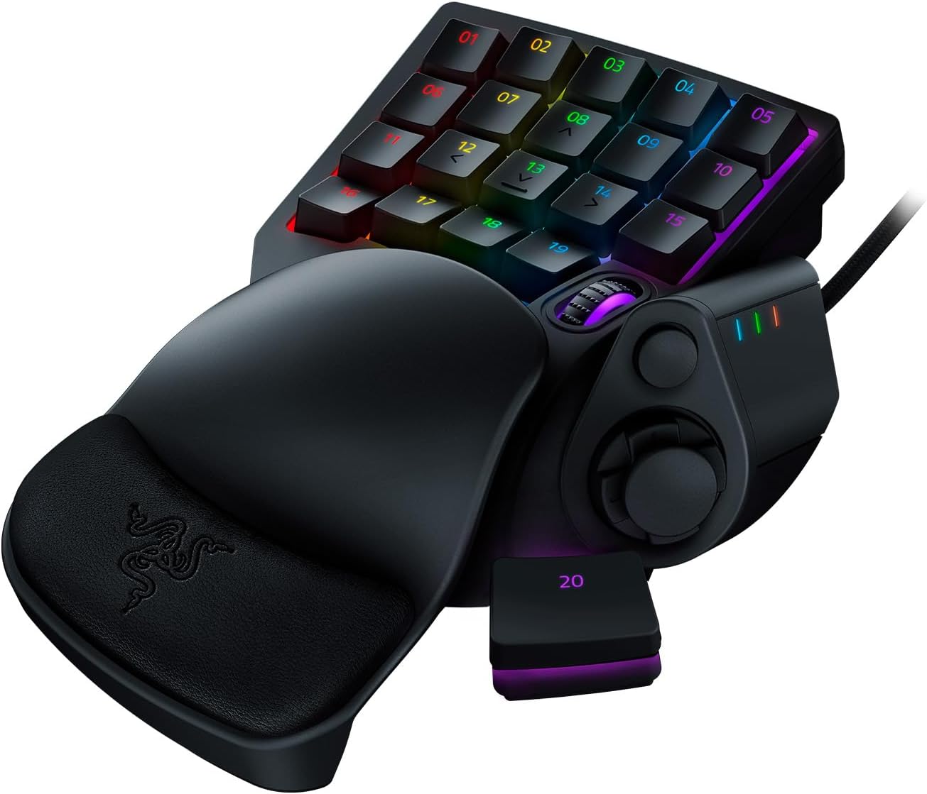 Razer Tartarus V2 разполага с 32 напълно програмируеми Mecha мембранни бутона за практически неограничен брой команди, както и с 8-посочен контролен панел и 3-посочно колело на мишката.