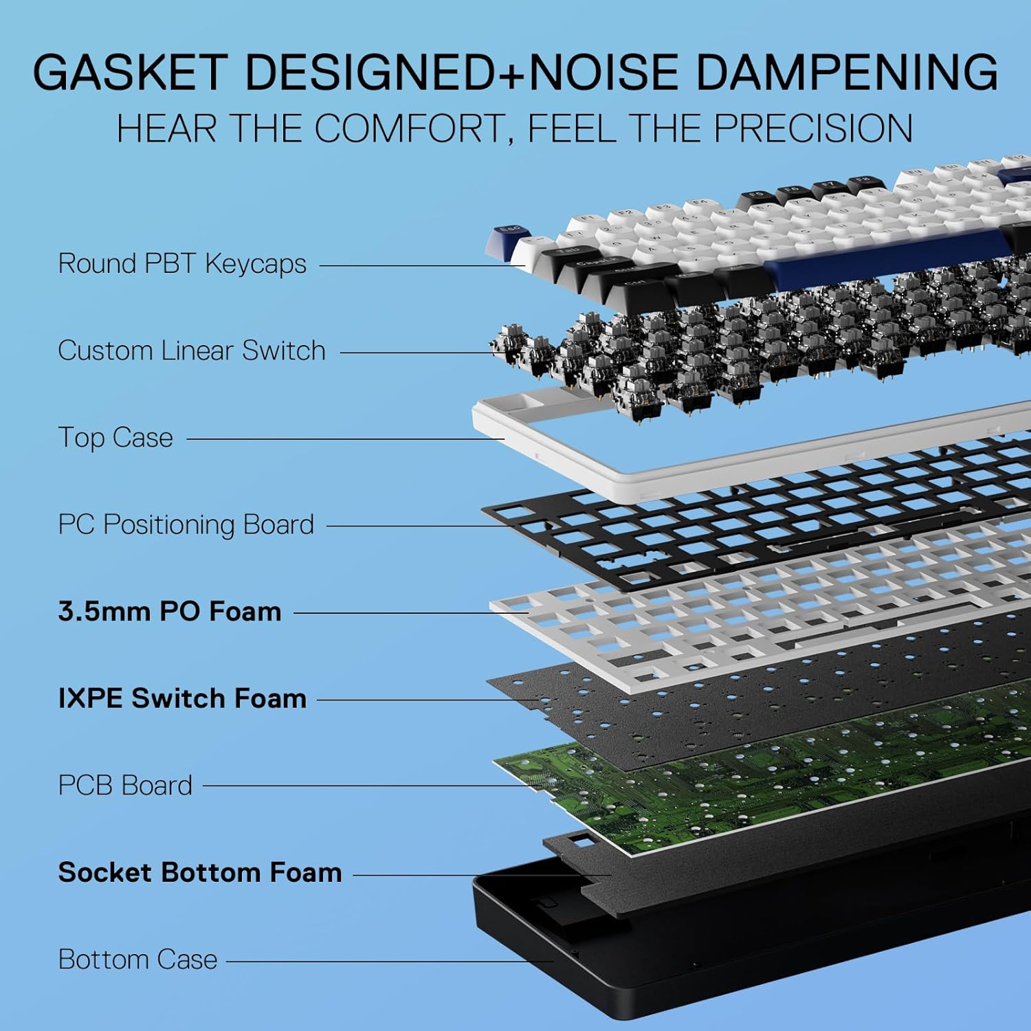 • 【Ергономичен дизайн и намаляване на шума】: Ергономичният дизайн на тази клавиатура осигурява максимален комфорт по време на дълги игрови сесии. Вградените звукопоглъщащи пяни минимизират шума и подобряват концентрацията, за да можете да се съсредоточите върху играта си.