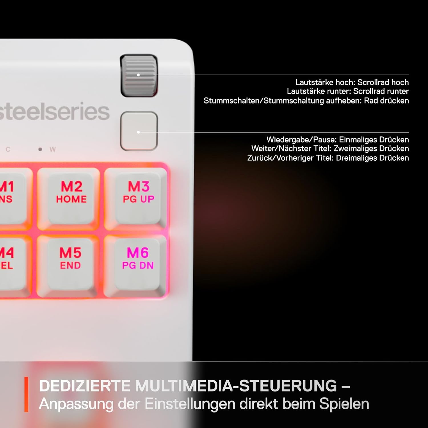 • Подредбата на тази клавиатура е немска QWERTZ, което може да се различава от някои от показаните изображения, които показват американската подредба. Моля, уверете се, че имате най-новия фърмуер със SteelSeries Motor.