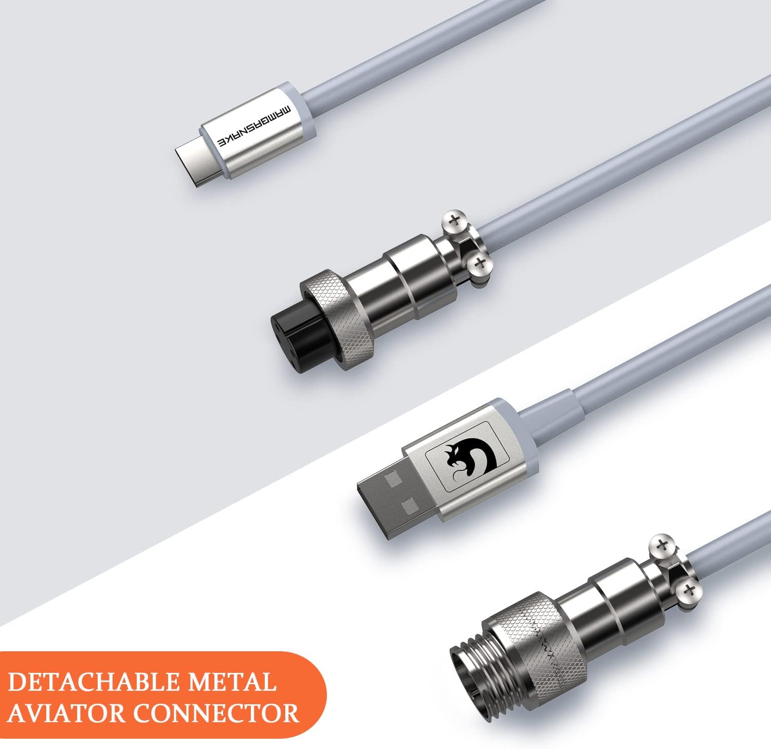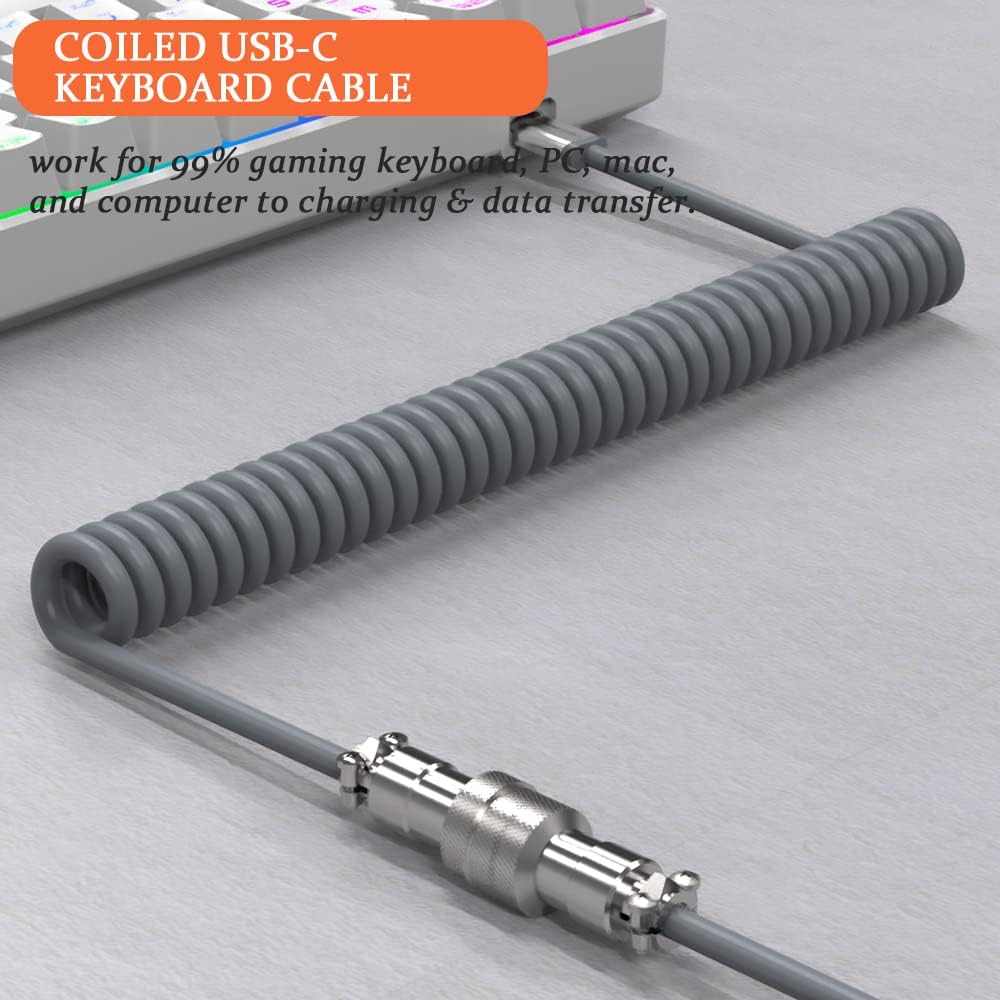 • Спирален USB C кабел за геймърска клавиатура: Този комплект клавиатура и мишка за игри има кабел за клавиатура с тонално навита клавиатура. USB C кабел за механична геймърска клавиатура с двоен ръкав и подвижен метален авиационен конектор, с nano TPU, предназначен за професионални геймъри и ефективна работа. Кабелът Type-C към USB-A поддържа безопасно и бързо зареждане и скорост на синхронизиране на данни.