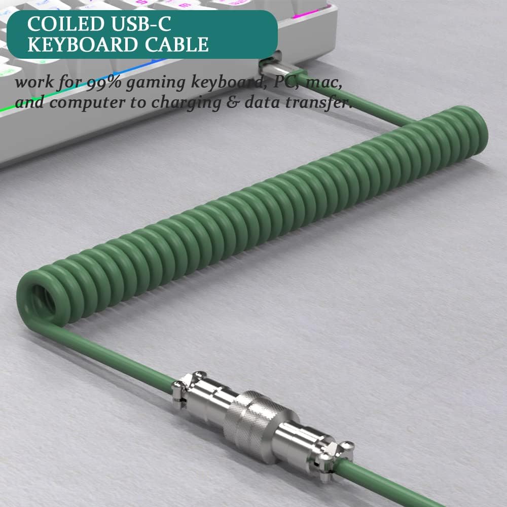 • Спирален USB C кабел за геймърска клавиатура: Този комплект клавиатура и мишка за игри има кабел за клавиатура с тонално навита клавиатура. USB C кабел за механична геймърска клавиатура с двоен ръкав и подвижен метален авиационен конектор, с nano TPU, предназначен за професионални геймъри и ефективна работа. Кабелът Type-C към USB-A поддържа безопасно и бързо зареждане и скорост на синхронизиране на данни.