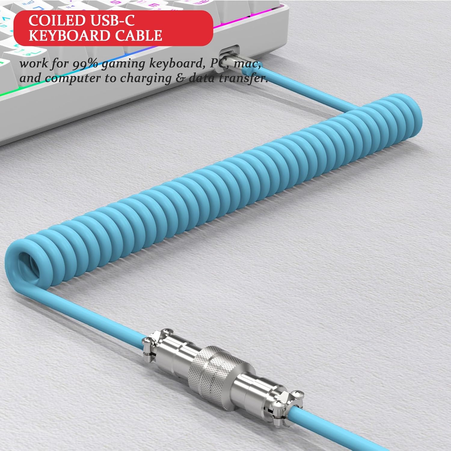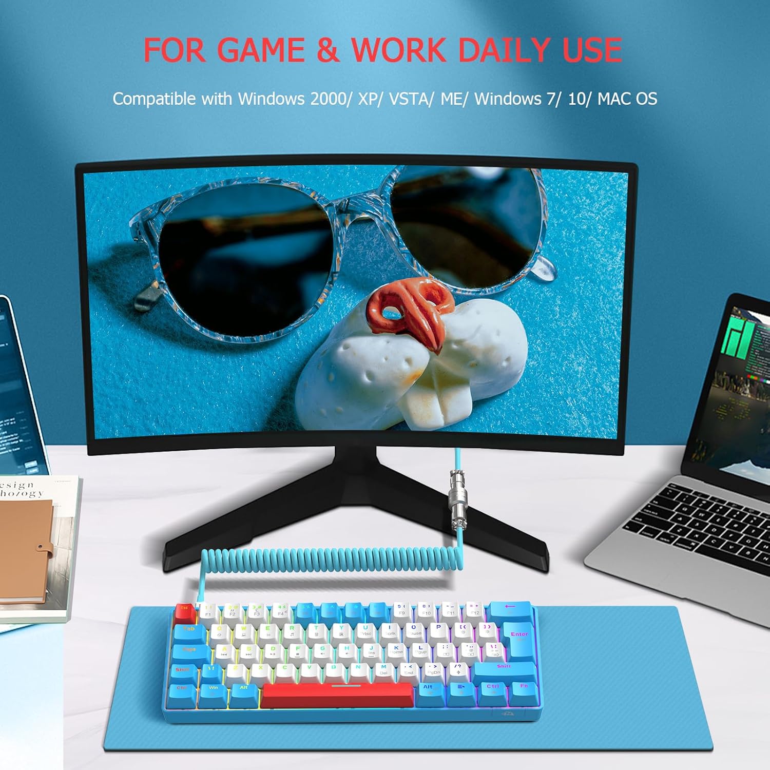 • Спирален USB C кабел за геймърска клавиатура: Този комплект клавиатура и мишка за игри има кабел за клавиатура с тонално навита клавиатура. USB C кабел за механична геймърска клавиатура с двоен ръкав и подвижен метален авиационен конектор, с nano TPU, предназначен за професионални геймъри и ефективна работа. Кабелът Type-C към USB-A поддържа безопасно и бързо зареждане и скорост на синхронизиране на данни.