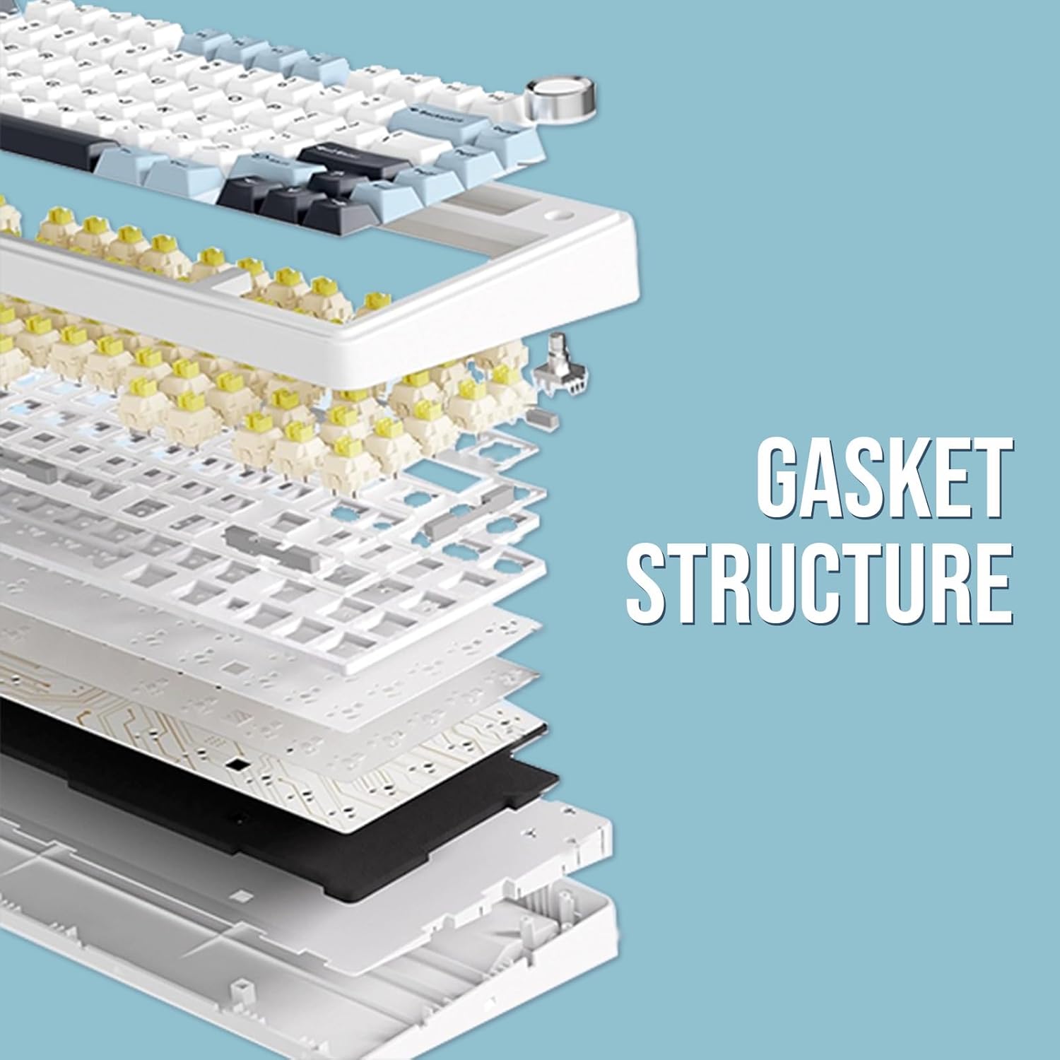 Геймърска механична клавиатура EPOMAKER x Aula F75 Gasket, 75% Hot Swap, петслойна подплата и бутони, Bluetooth/безжична връзка/USB-C, RGB (морско синьо, LEOBOG Reaper Switch)