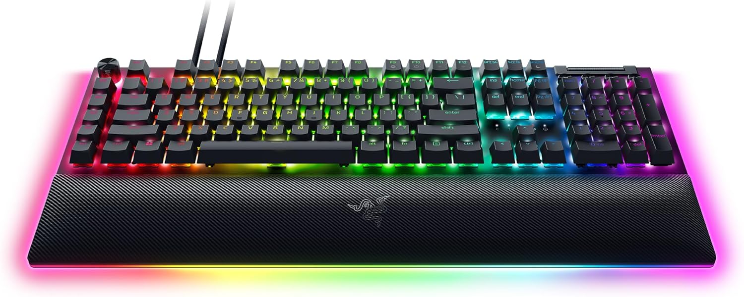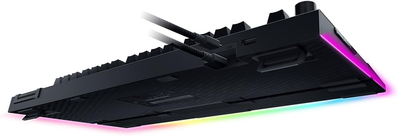 • Двустранно осветление на долната част и осветление на всеки клавиш, задвижвано от Razer Chroma RGB: Осветлението на всеки клавиш и хипнотизиращото осветление на долната част осветяват клавиатурата от още повече ъгли, перфектно синхронизирани с вашата Battle Station за още по-голямо потапяне в стотици поддържани игри.
