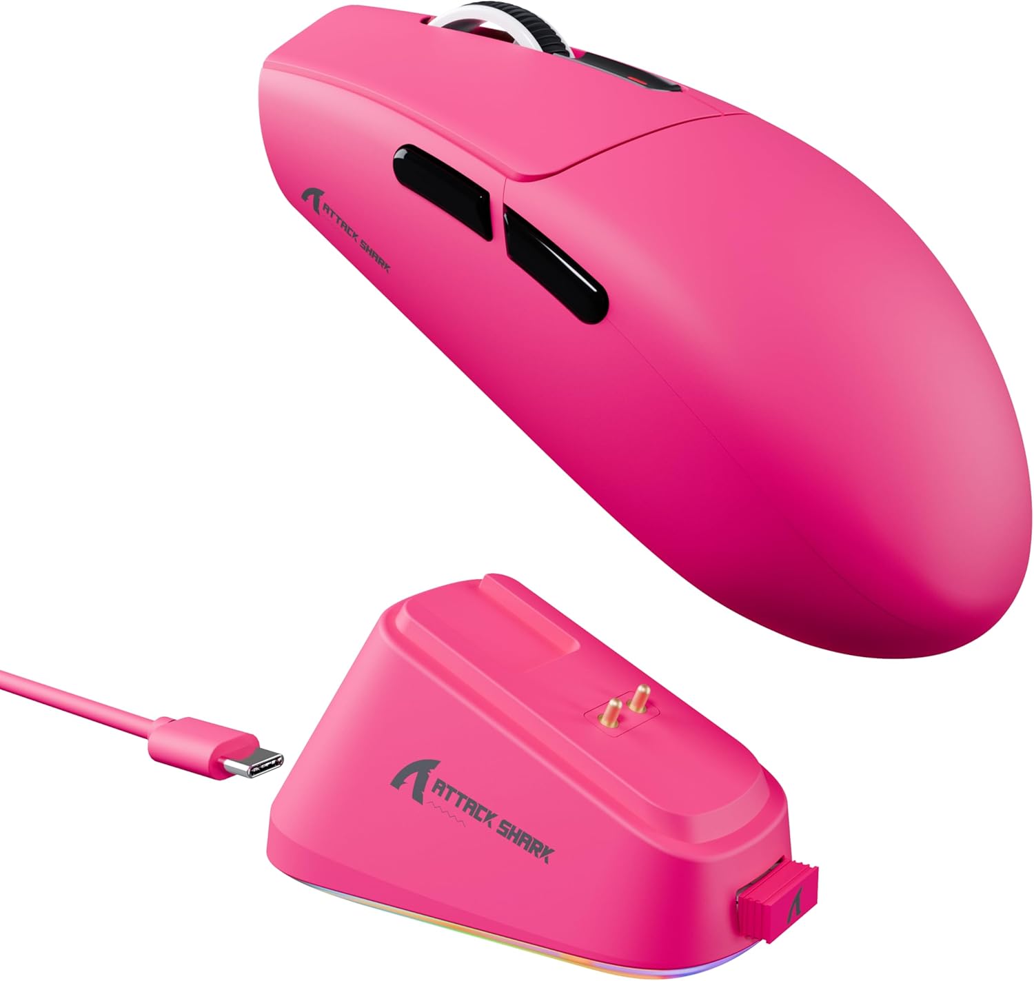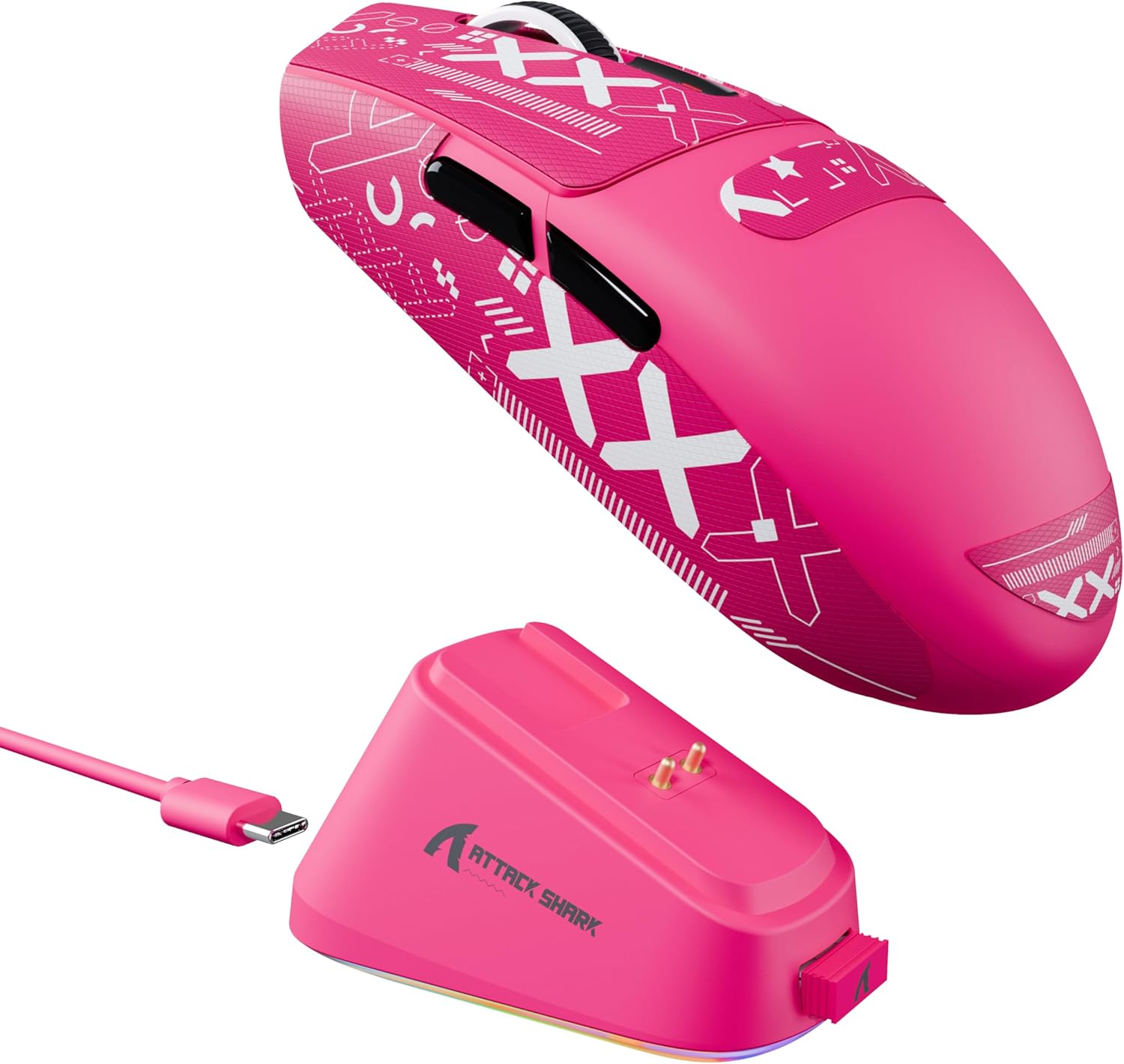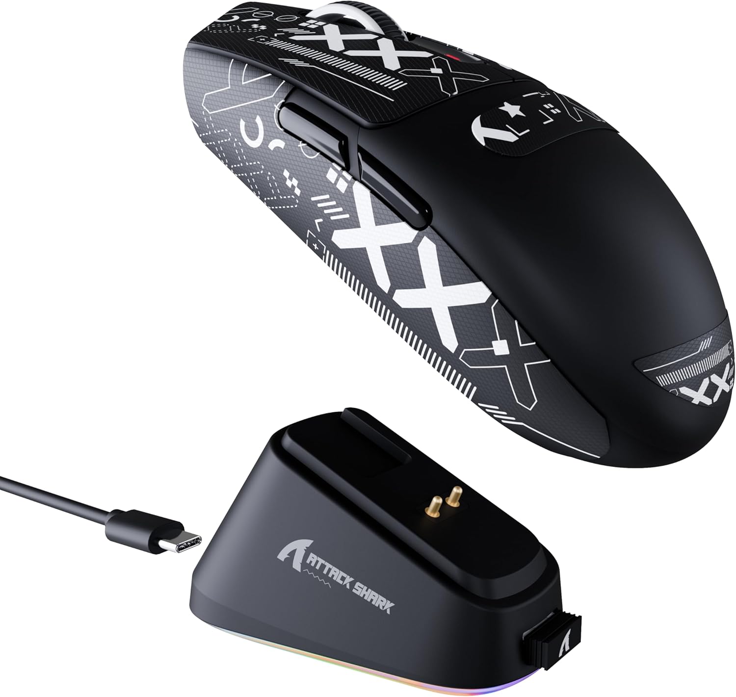Геймърска мишка ATTACK SHARK G3PRO с магнитна станция за зареждане, геймърски сензор PixArt PAW3311, Bluetooth/2.4G безжична/безжична геймърска мишка, 25 000 DPI, офис и геймърска мишка (бяла)