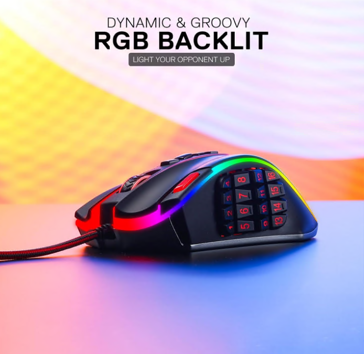 Геймърска мишка Redragon M990, До 16000 DPI, 24 бутона, Оптична, RGB подсветка, Черна