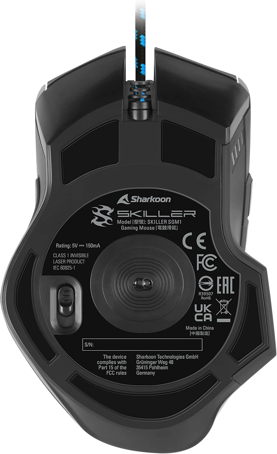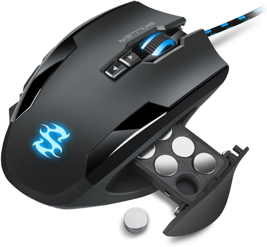 Някои харесват мишката ви лека като перце, други - почти тежка като олово. Skiller SGM1 може да прави и двете. С помощта на шест тежести от по четири грама всяка, теглото на SGM1 може да се регулира на седем нива от 106 до 130 грама. Не са необходими инструменти. Просто натиснете пружинния превключвател на дъното и издърпайте отделението за регулиране на тежестта.