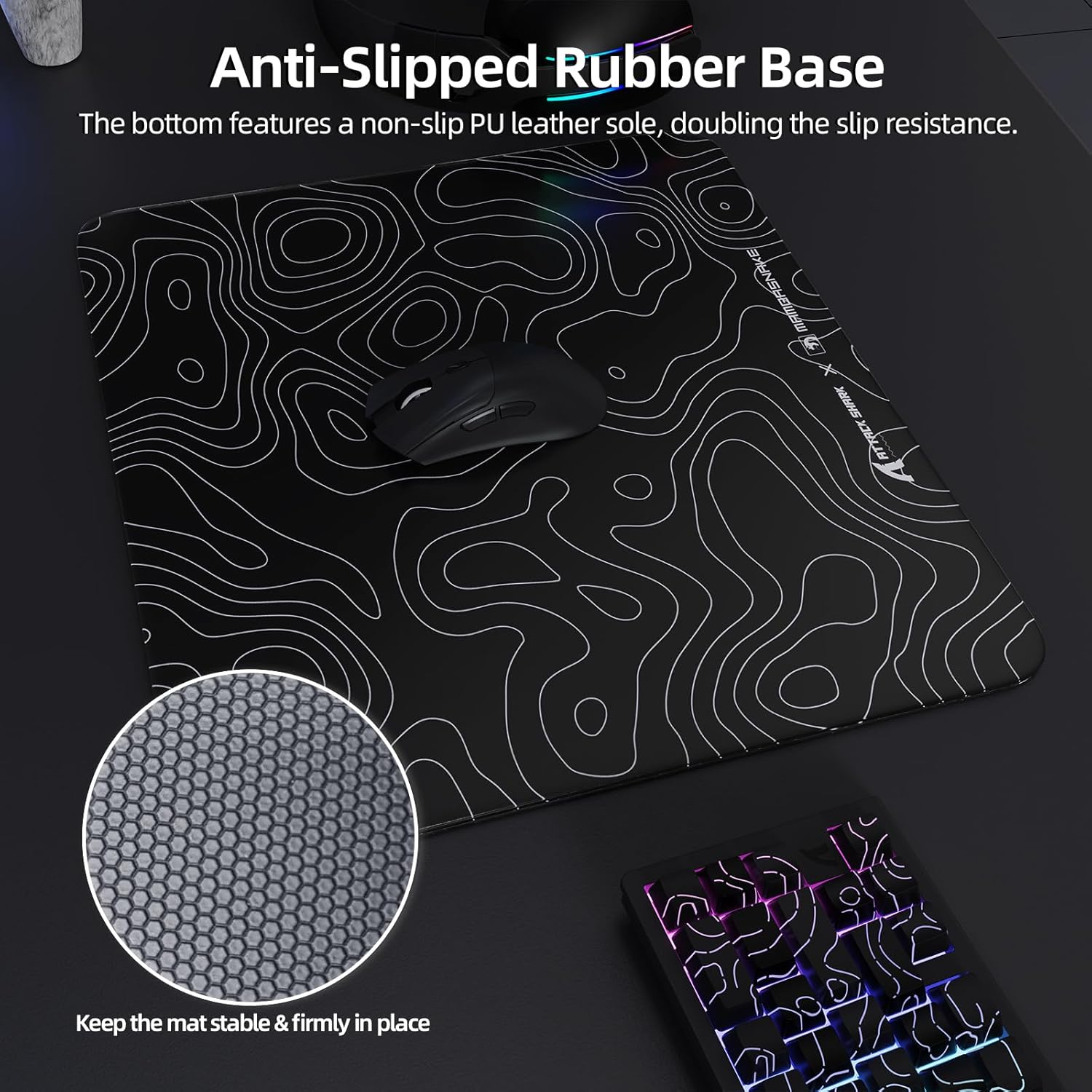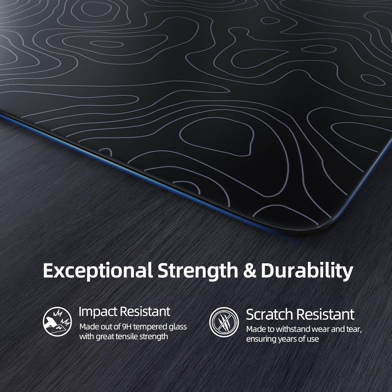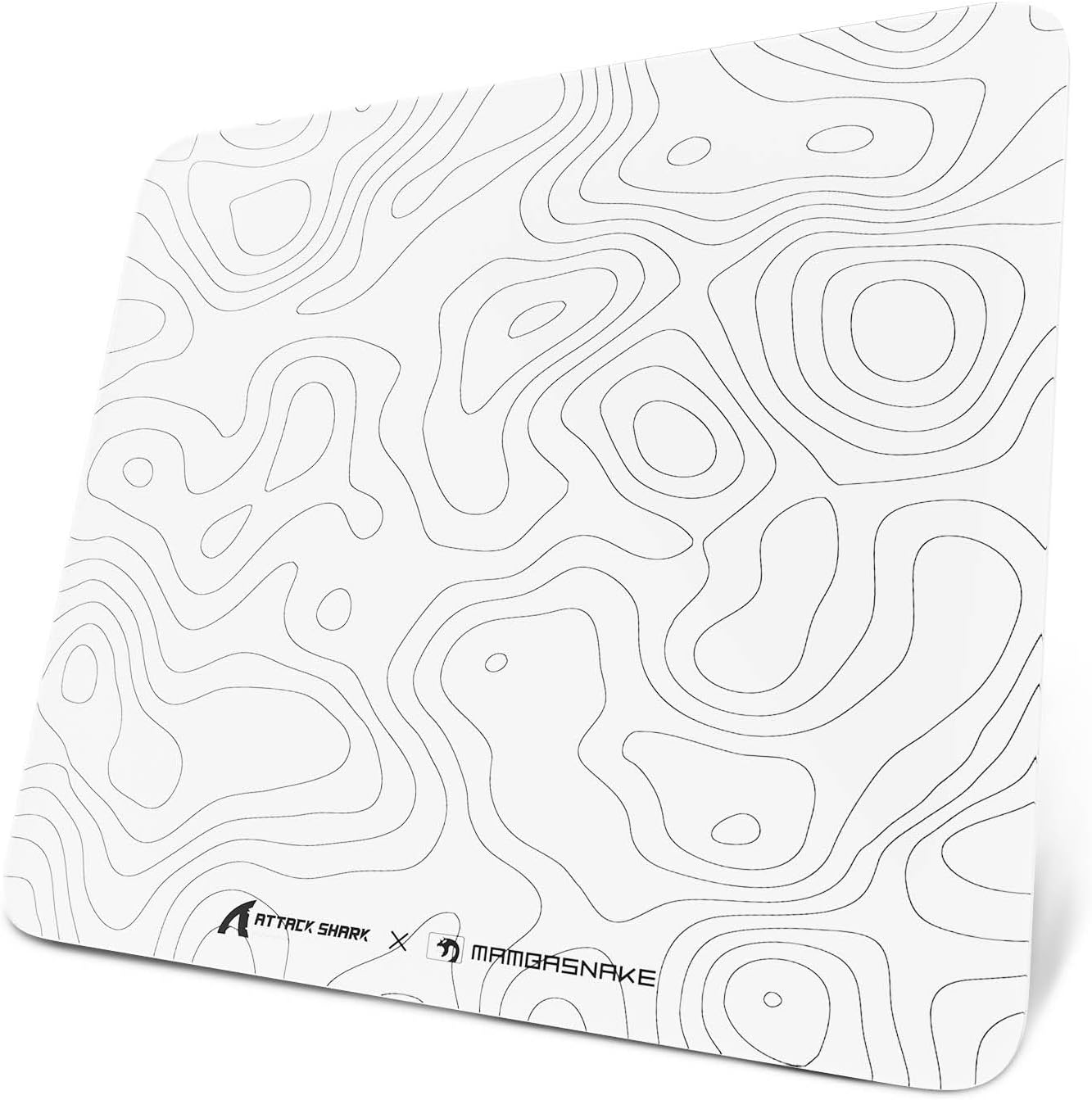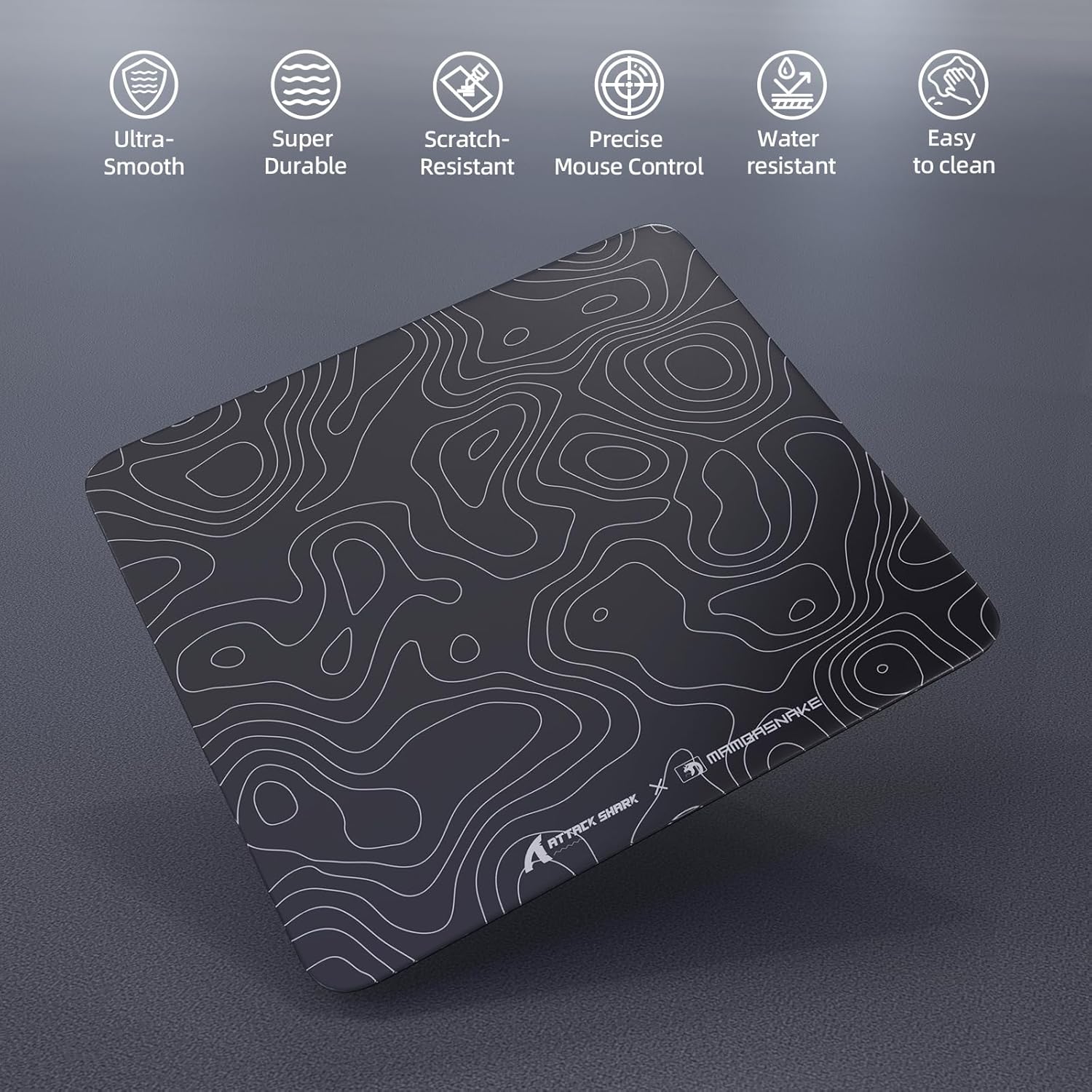 Геймърска подложка за мишка ATTACK SHARK CM05, изработена от закалено стъкло, ултра гладка повърхност, 9H закалено стъкло, 17.72 x 15.75 x 0.2 инча, топографски контур, удароустойчива, неплъзгаща се подложка за мишка, черна