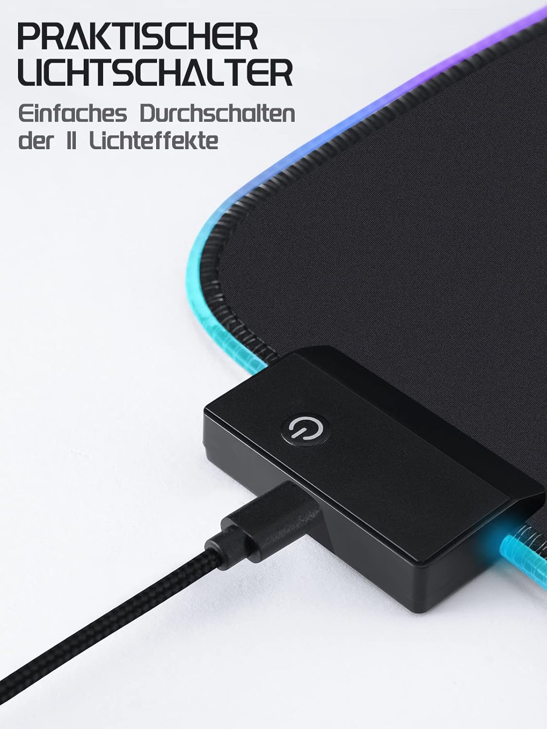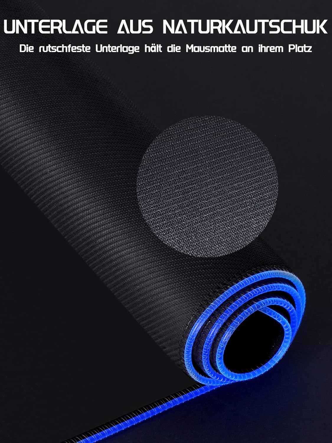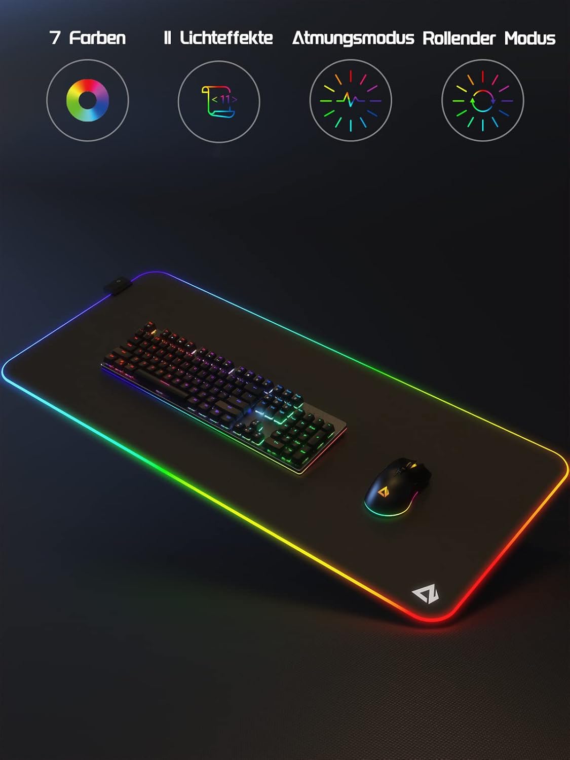 Геймърска подложка за мишка EASEMO, RGB, XXL голяма (900 x 400 x 4 мм) със 7 LED цвята, 11 режима на осветление и водоустойчива текстилна повърхност, неплъзгаща се гумена основа за компютър, лаптоп, клавиатура